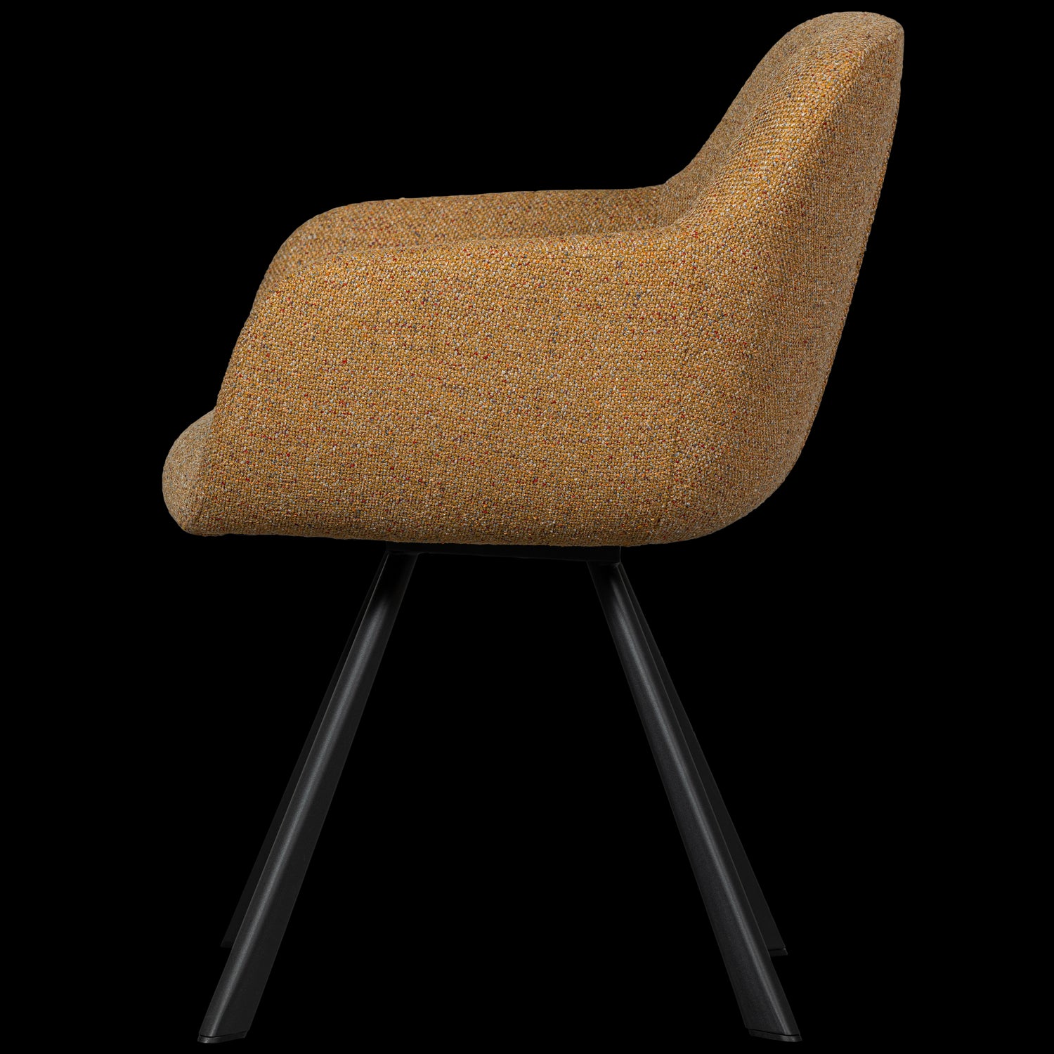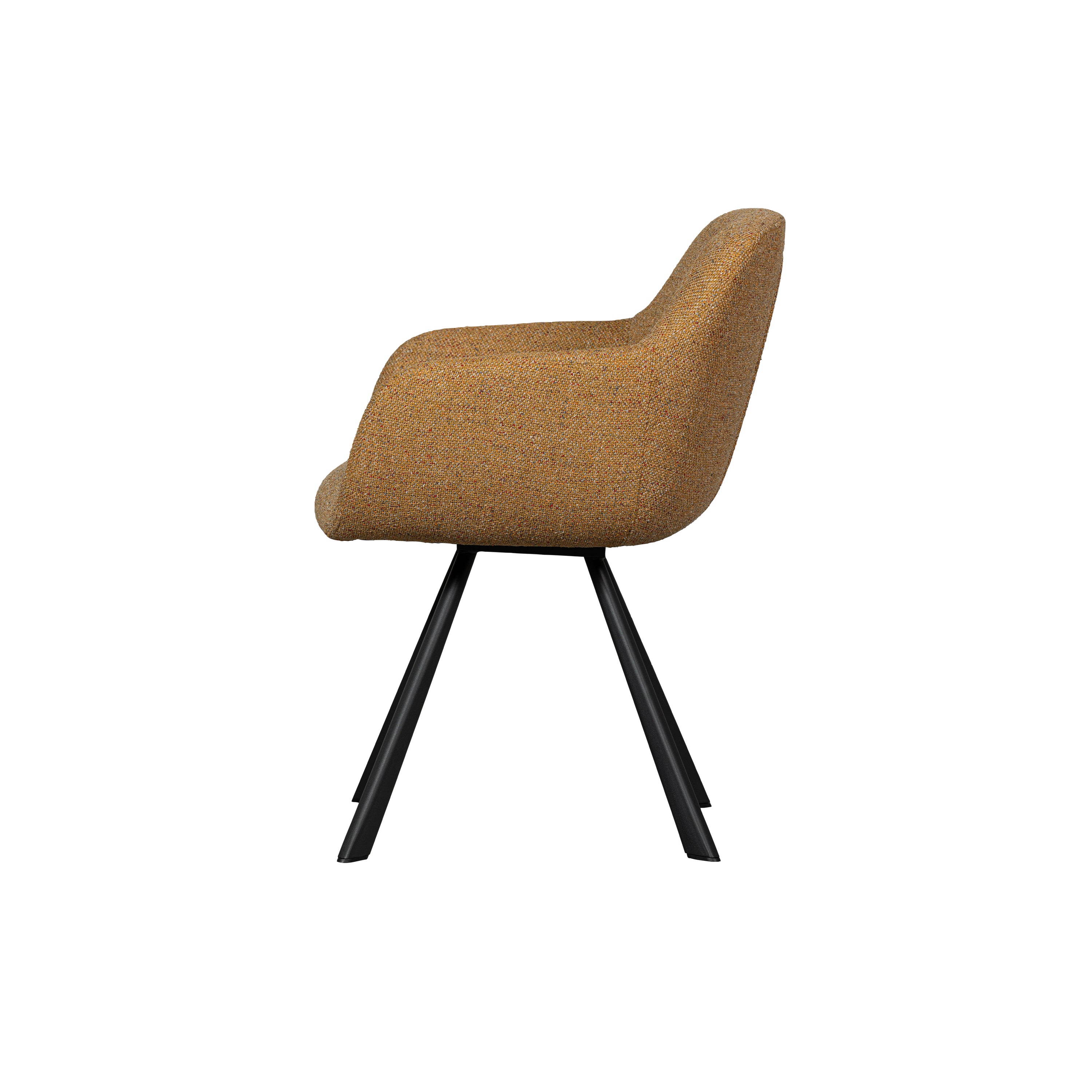 De Juno eetkamerstoel heeft metalen poten met een matzwarte poedercoating. De zitting is gevormd uit een stalen frame en multiplex, bedekt met een polyurethaan schuim. De zitting is bekleed met een geweven stof. De Helen geweven stof is opgebouwd uit 100% polyester, wat de stof een zachte grip geeft. De dicht geweven stof krijgt een extra dimensie door de opvallende kleurnuances. Deze kleurschakeringen zorgen voor een unieke uitstraling. De Helen staat bekend om zijn functionaliteit, stevigheid en samenstelling uit vezels van verschillende kleuren.