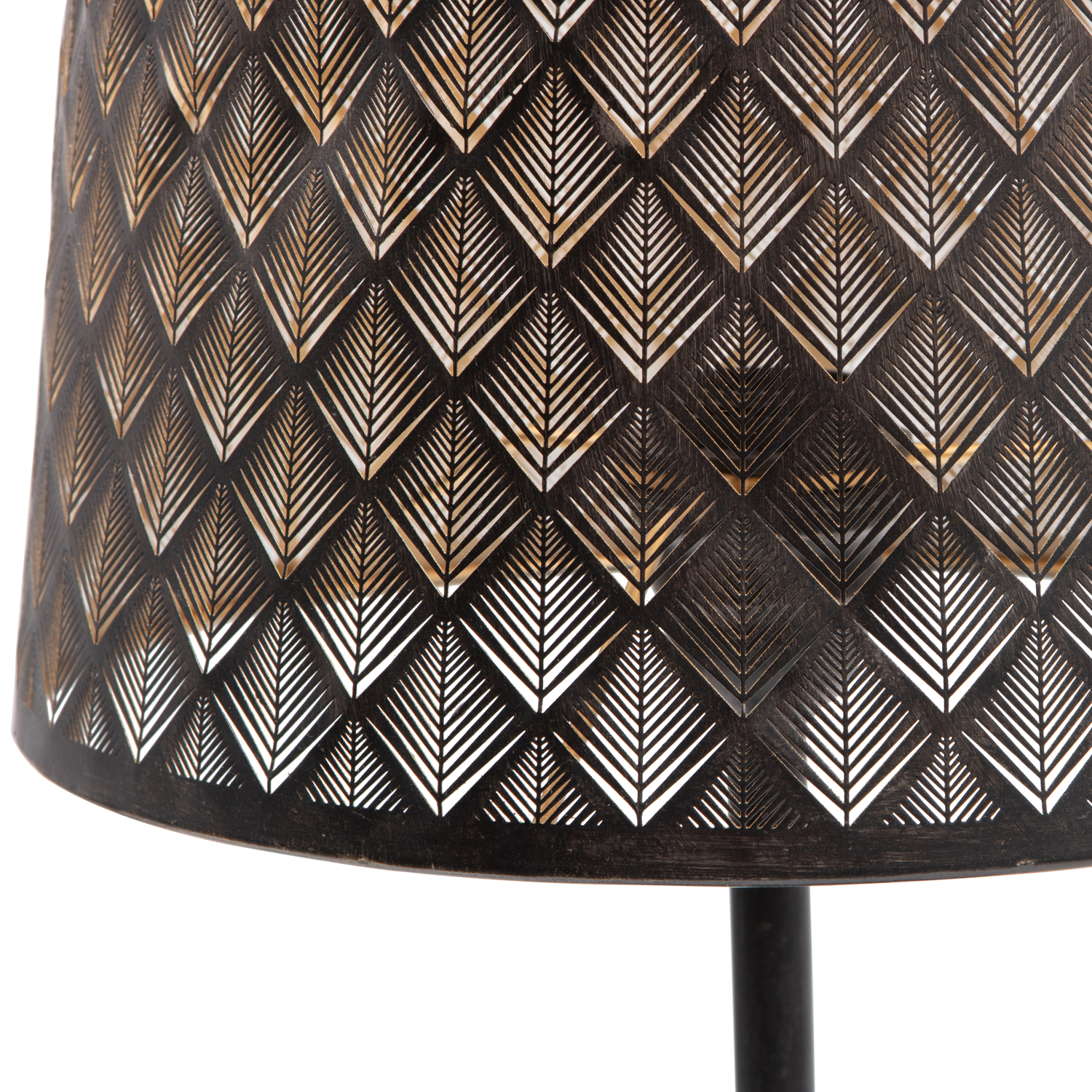 Een bijzonder lichtpunt haal je in huis met deze slanke tafellamp Kars. Kars komt uit de collectie van het Nederlandse merk WOOOD. Zowel de voet als de lampenkap zijn vervaardigd uit metaal met een matzwarte coating. Echter is de binnenzijde van de lampenkap een ware verrassing, de antique brass afwerking zorgt voor een luxe schittering. De art deco cut-outs zorgen voor een speelse verspreiding van het licht, wat mooi toont op je wand of in een hoek.