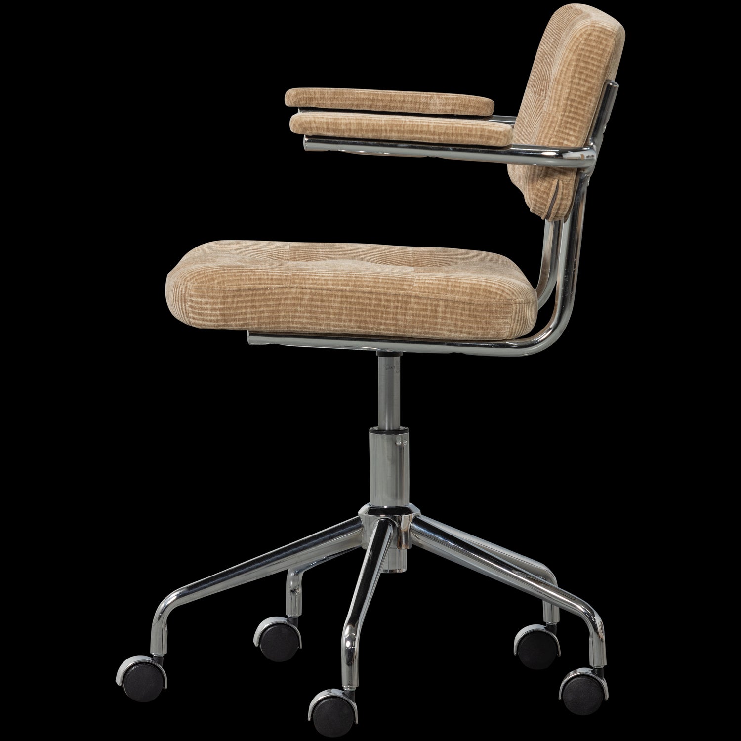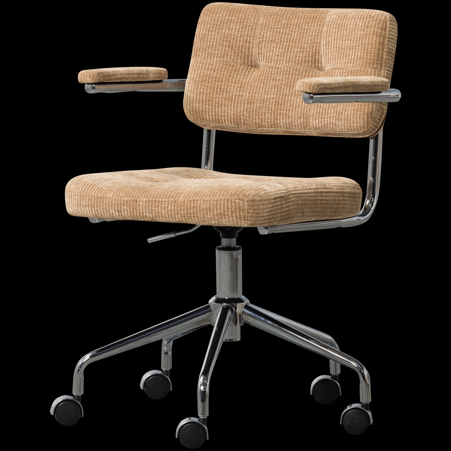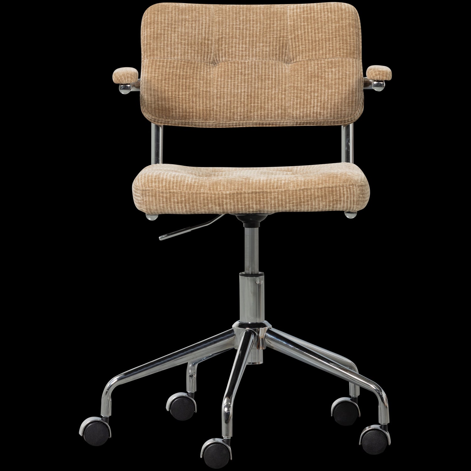 Studeren of werken in stijl, met onze Kova bureaustoel zit jij comfortabel en stijlvol aan jouw bureau. De Kova komt uit de collectie van het Nederlandse interieurmerk WOOOD. De stoel heeft wieltjes en een hendel om de zithoogte te verstellen. De stoel heeft zowel een gestoffeerde zitting, rugleuning als armleuningen, dit zorgt ervoor dat de stoel een hoog zitcomfort heeft. Zoek niet verder en haal de Kova bureaustoel snel in huis.