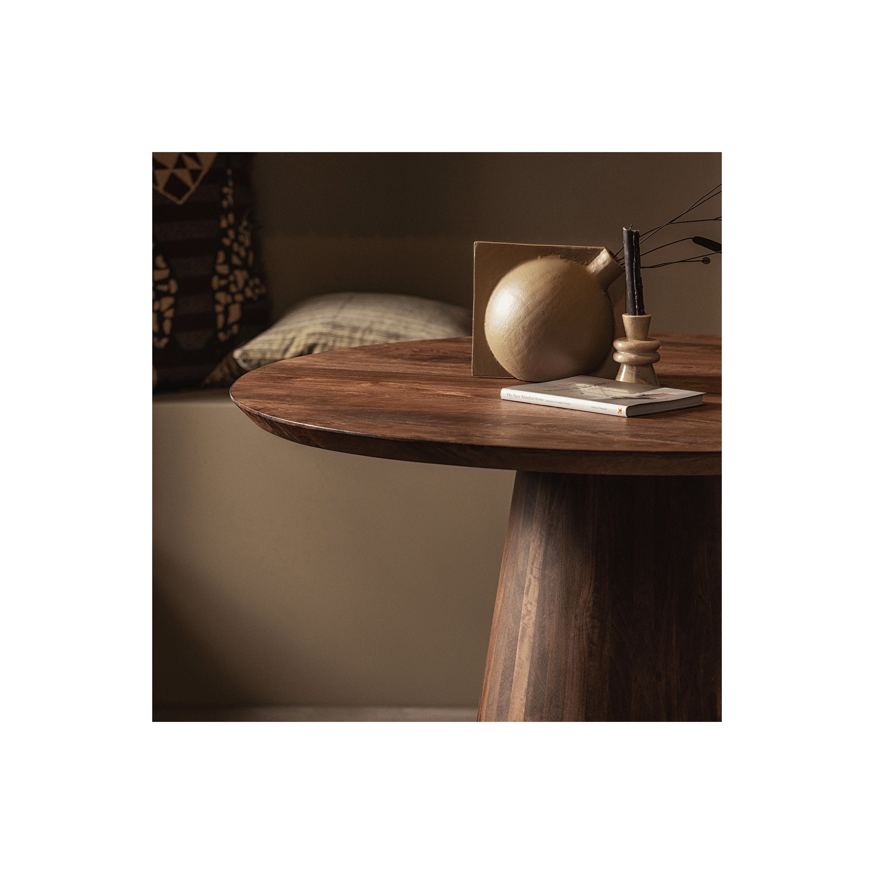 De Limit eetkamertafel biedt voldoende ruimte om gezellig te tafelen met jouw favoriete gezelschap! De eetkamertafel komt uit de collectie van het Nederlandse interieurmerk WOOOD. Door het mangohout met walnootkleurige finish en de ronde vorm van het tafelblad, ontstaat er direct sfeer in jouw interieur.