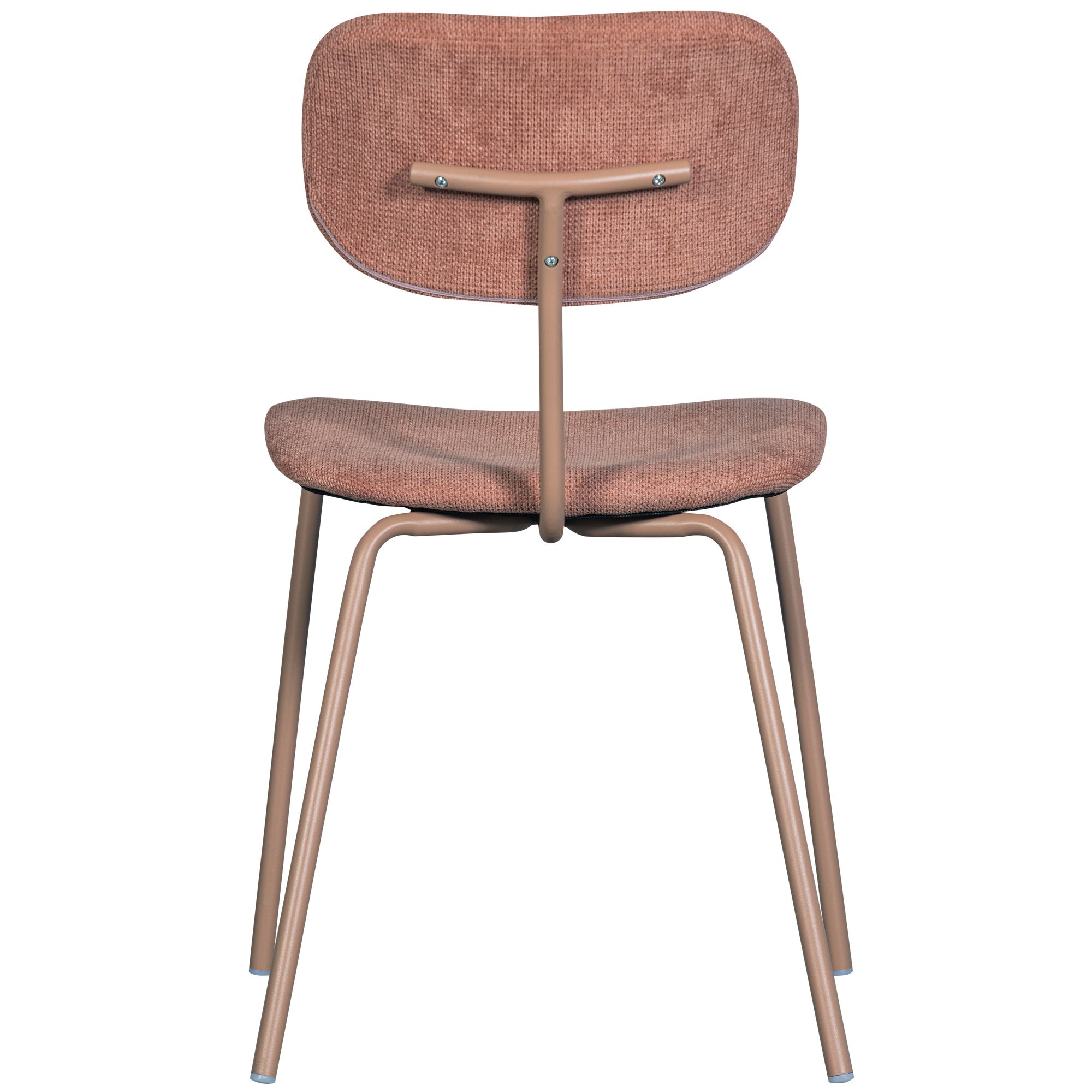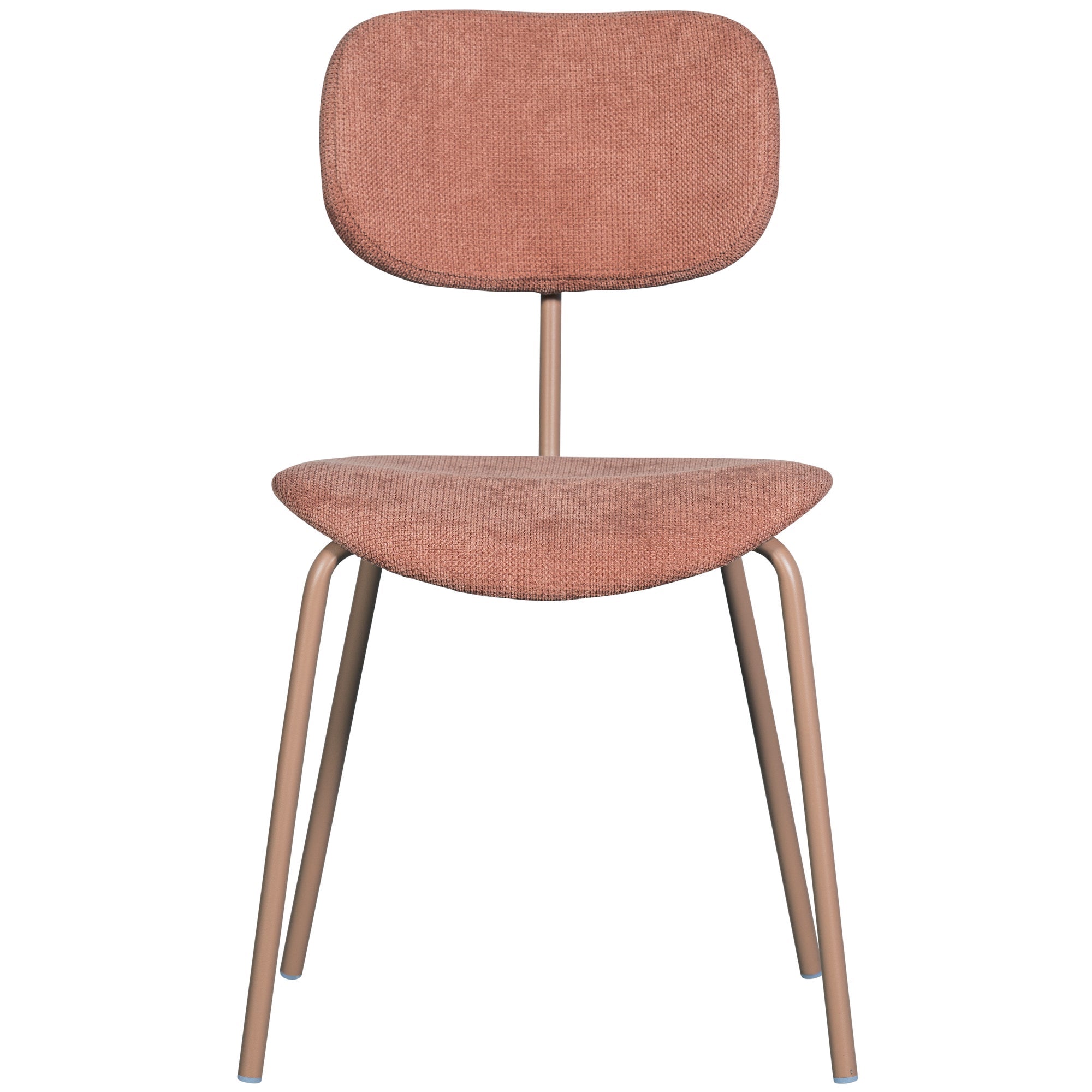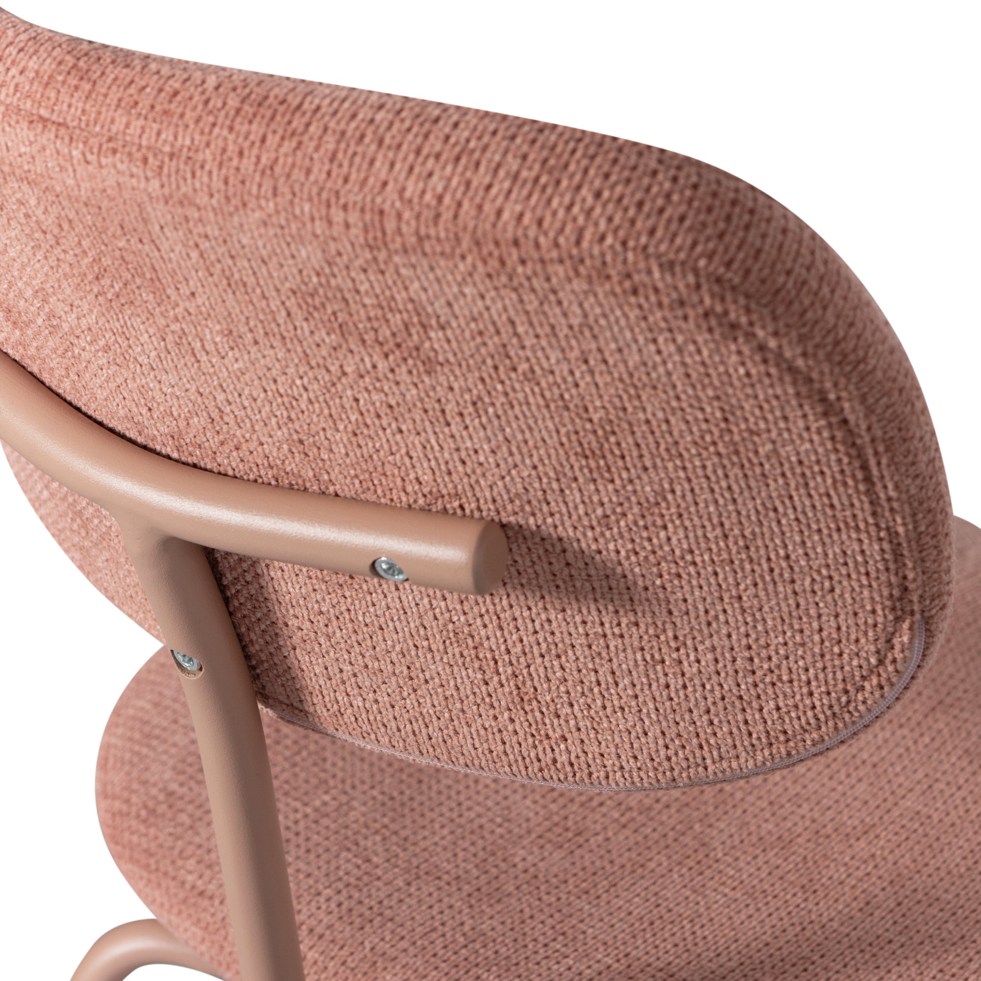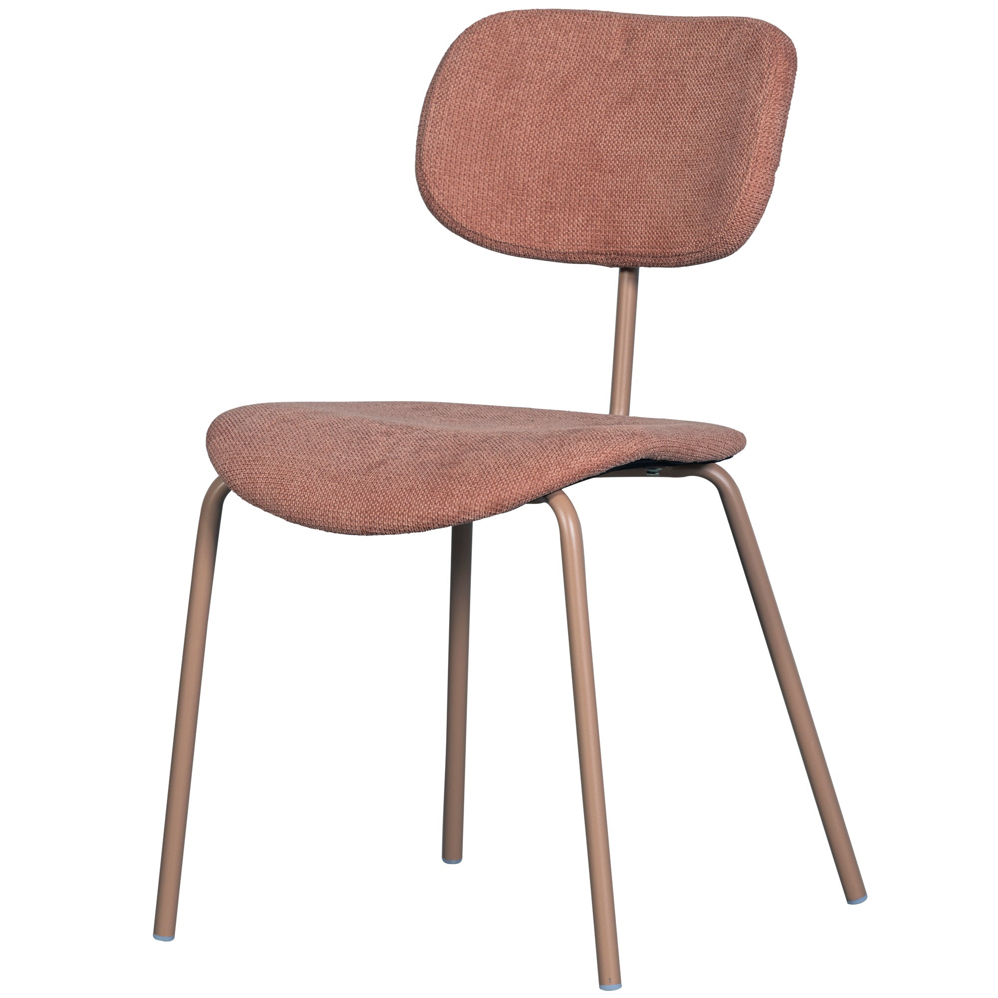 Stijlvol in zijn eenvoud, dat is onze Link eetkamerstoel. De eetkamerstoel uit de Exclusive collectie van het Nederlandse interieurmerk WOOOD heeft een slank metalen onderstel, gecoat in een bruin/grijze kleur. De zitting is bekleed met een matglanzende, zachte ribstof met een opvallend kronkelend banenpatroon. Materiaal