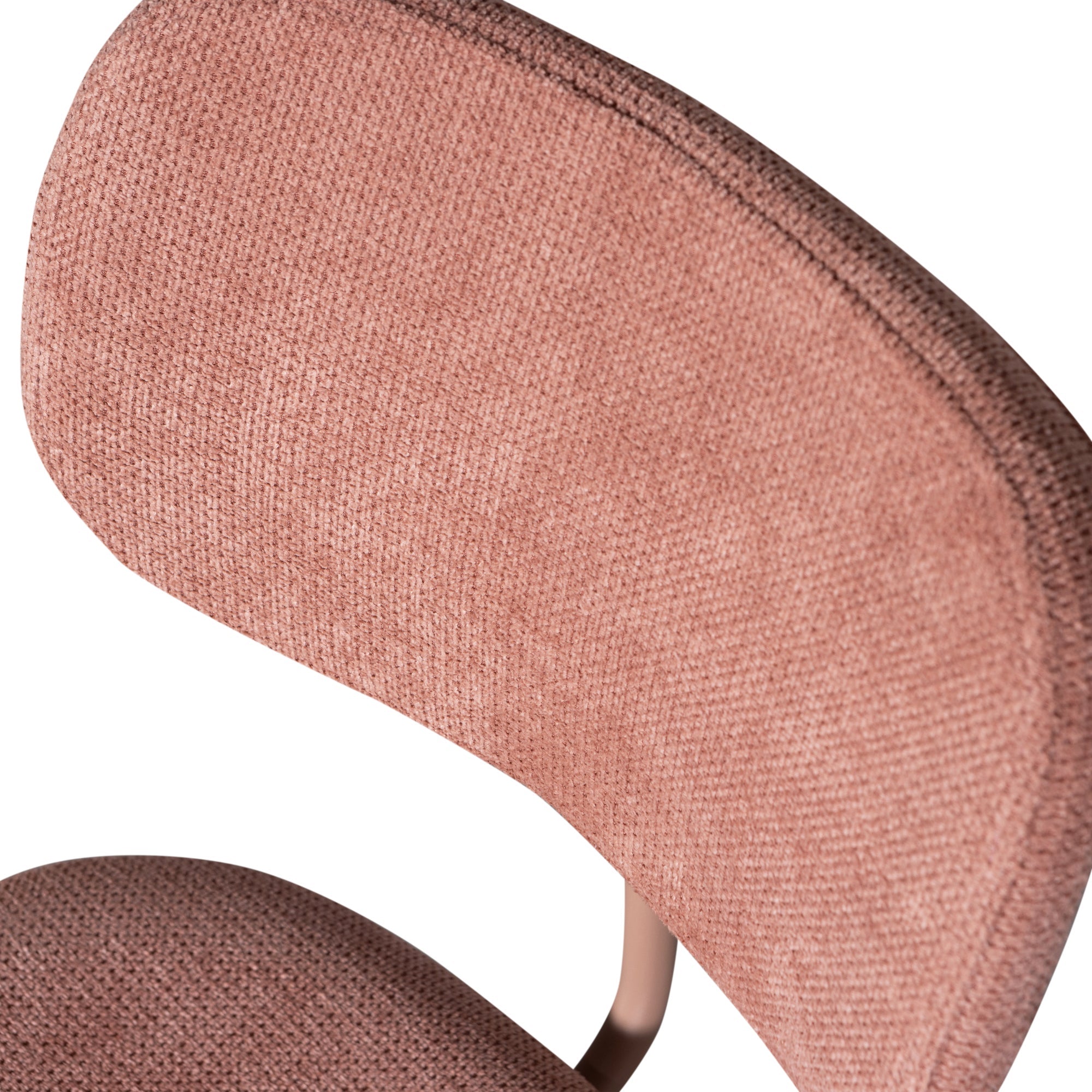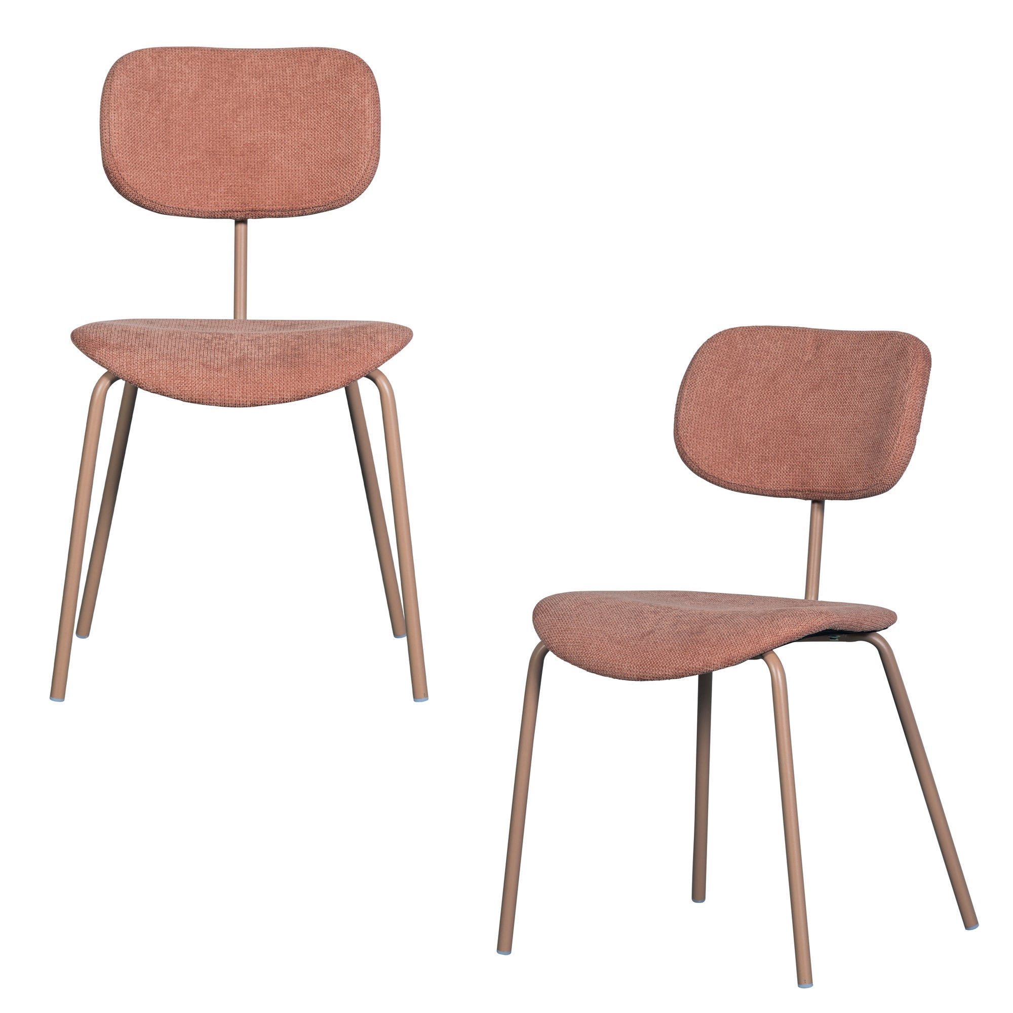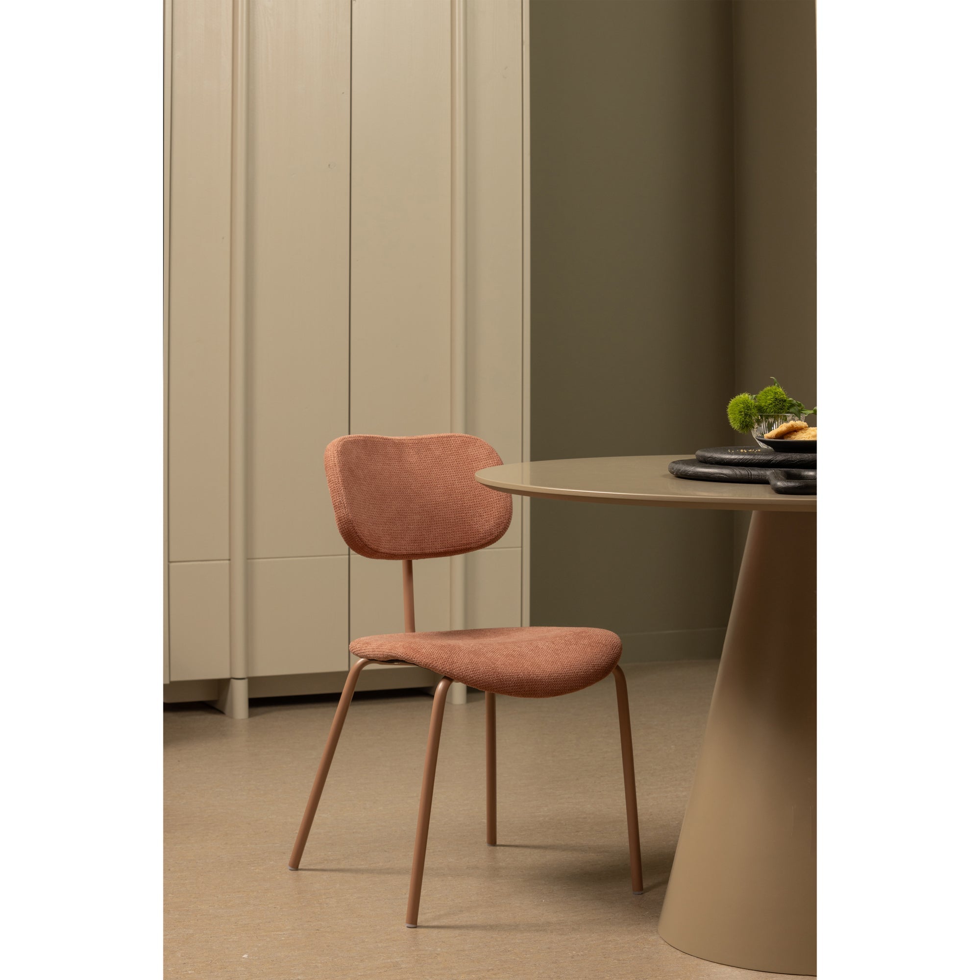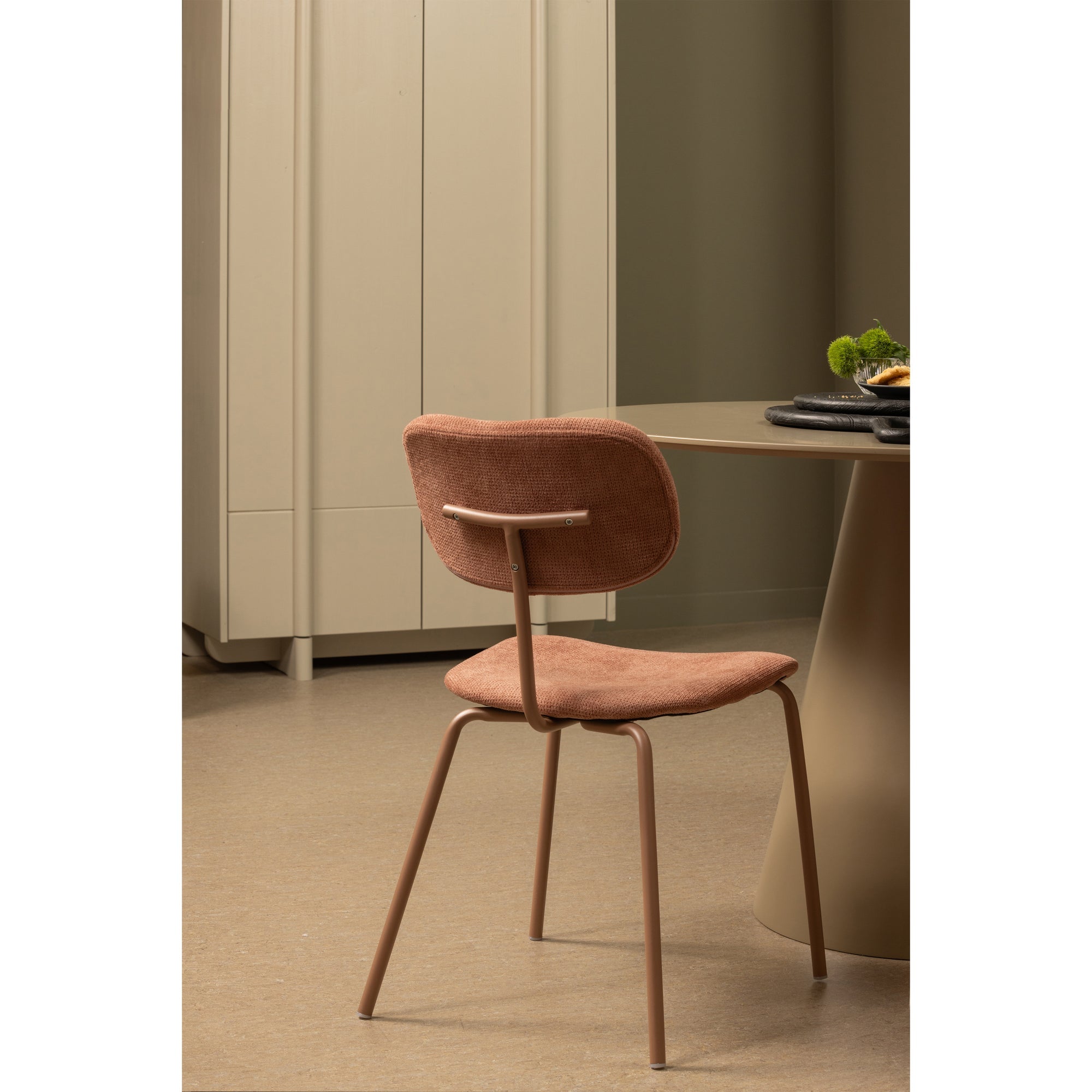 Stijlvol in zijn eenvoud, dat is onze Link eetkamerstoel. De eetkamerstoel uit de Exclusive collectie van het Nederlandse interieurmerk WOOOD heeft een slank metalen onderstel, gecoat in een bruin/grijze kleur. De zitting is bekleed met een matglanzende, zachte ribstof met een opvallend kronkelend banenpatroon. Materiaal