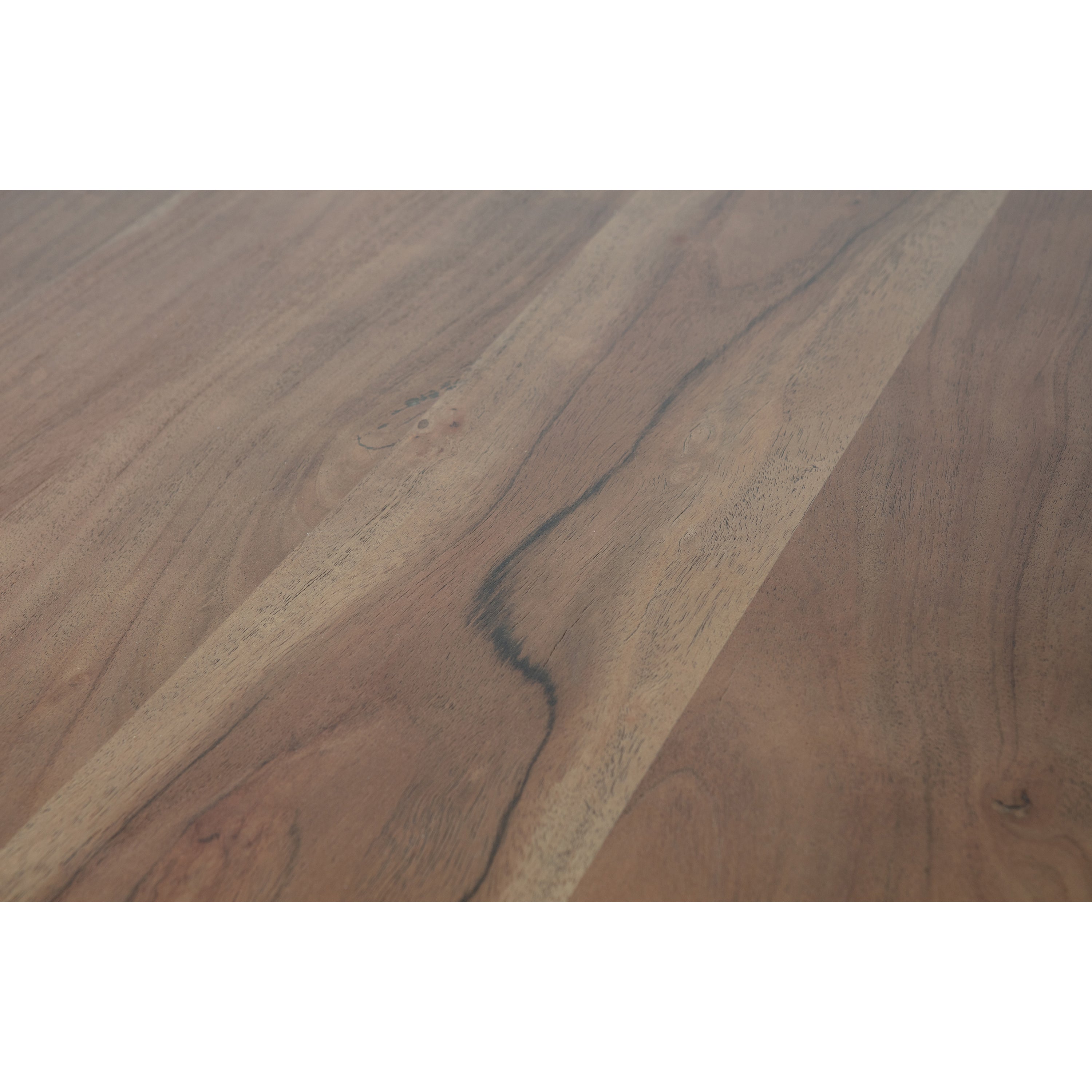 - Ronde eettafel van subtiel formaat- Onderstel van metaal met een antiek zwarte coating en mangohouten tafelblad- Genoeg ruimte voor 4-5 personen- H 76 cm x Ø 120 cmOp zoek naar de ideale eettafel voor gezellig tafelen in jouw favoriete gezelschap? Dan is de Maggie eettafel, uit de Exclusive collectie van het Nederlandse merk WOOOD, jouw match! Maggie neemt weinig ruimte in maar brengt veel gezelligheid met zich mee vanwege haar ronde vorm.MateriaalMaggie is vervaardigd uit een combinatie van twee sterke materialen. De stevige ronde poot is gemaakt van metaal met een antiek zwarte poedercoating, zeer eenvoudig in het onderhoud en biedt veel stabiliteit. Het tafelblad is gemaakt van mangohout met een transparante lak, de nerftekeningen zijn duidelijk zichtbaar wat zorgt voor een warme, natuurlijke uitstraling.Afmetingen- Hoogte: 76 cm- Breedte: 120 cm- Diepte: 120 cm- Bladdikte: 3 cm- Poothoogte: 73 cm- Pootdikte Ø: 19/55 cmOnderhoudMangohouten meubelen zijn gemakkelijk in onderhoud. Je houdt ze eenvoudig stof- en vlekvrij met een lichtvochtige, schone doek. Mangohouten items zijn enkel bestemd voor indoor gebruik. Een extra behandeling of bescherming is mogelijk met een transparante coating, maar wordt de eerste jaren niet nodig geacht. Raadpleeg altijd een verfspeciaalzaak voor advies en informatie betreft het behandelen van het mangohouten item.LeveringDe Maggie eettafel wordt in twee pakketten geleverd. De eettafel is eenvoudig te monteren aan de hand van de duidelijke montagehandleiding. Plaats aan de onderzijde viltglijders ter bescherming van harde vloeren.