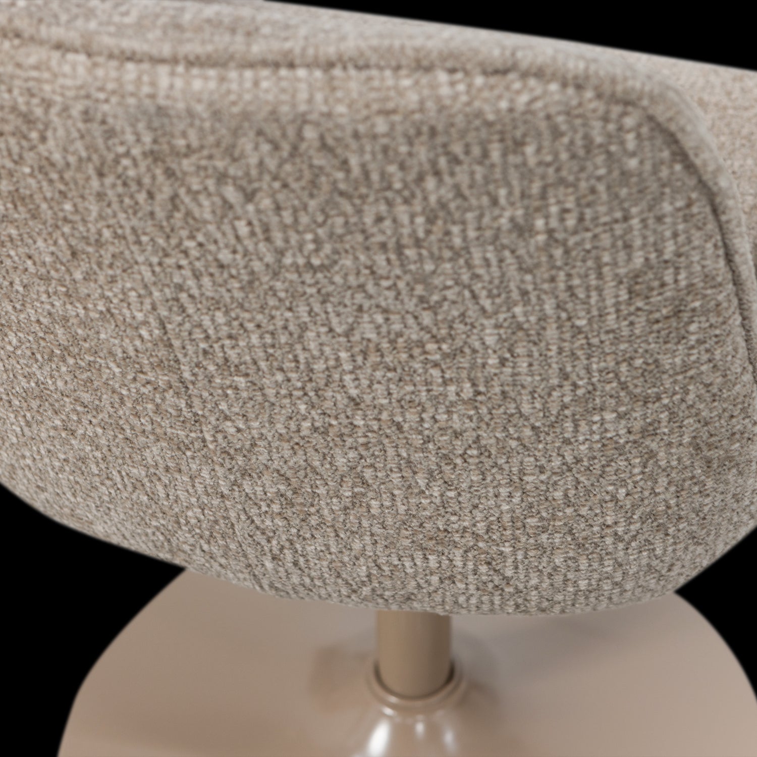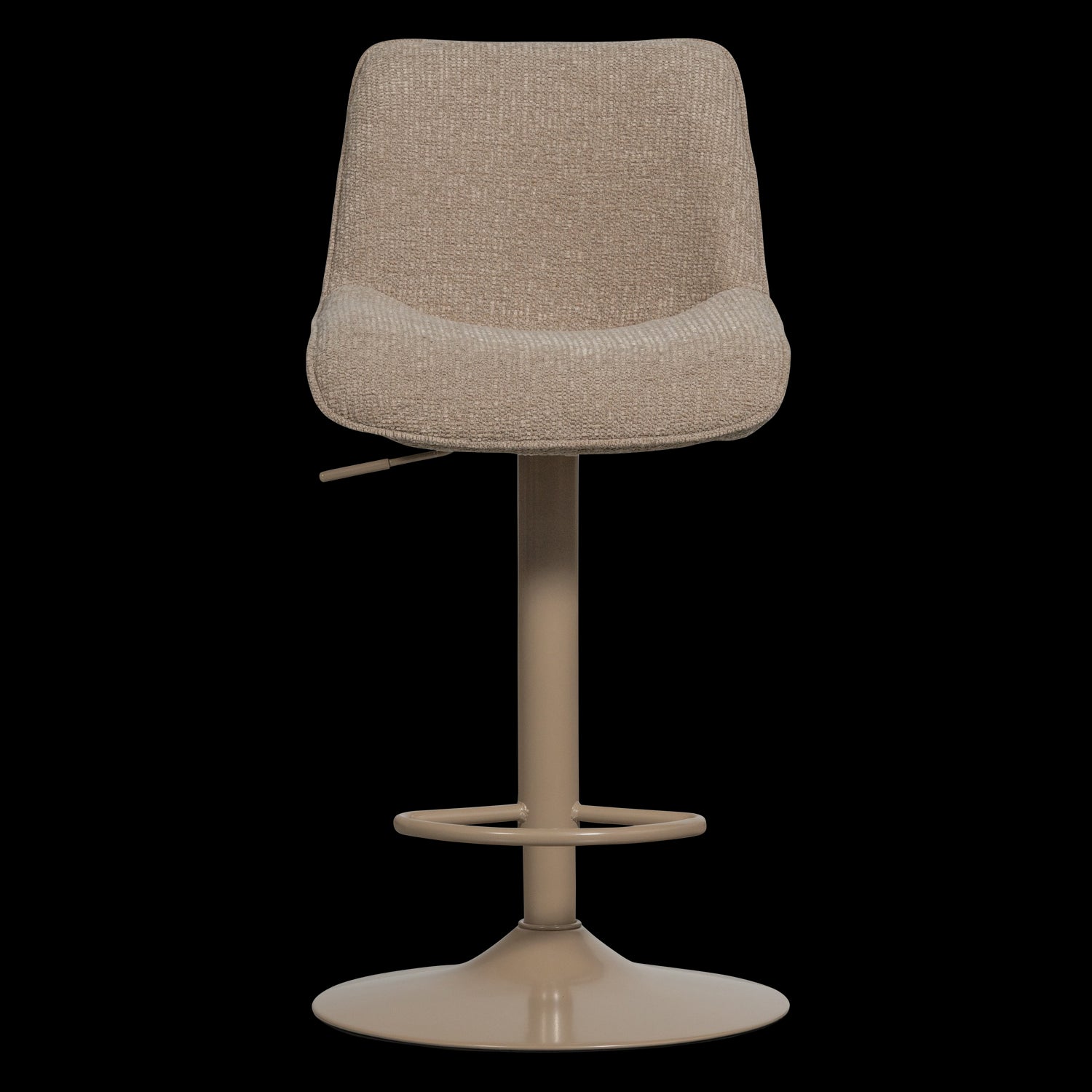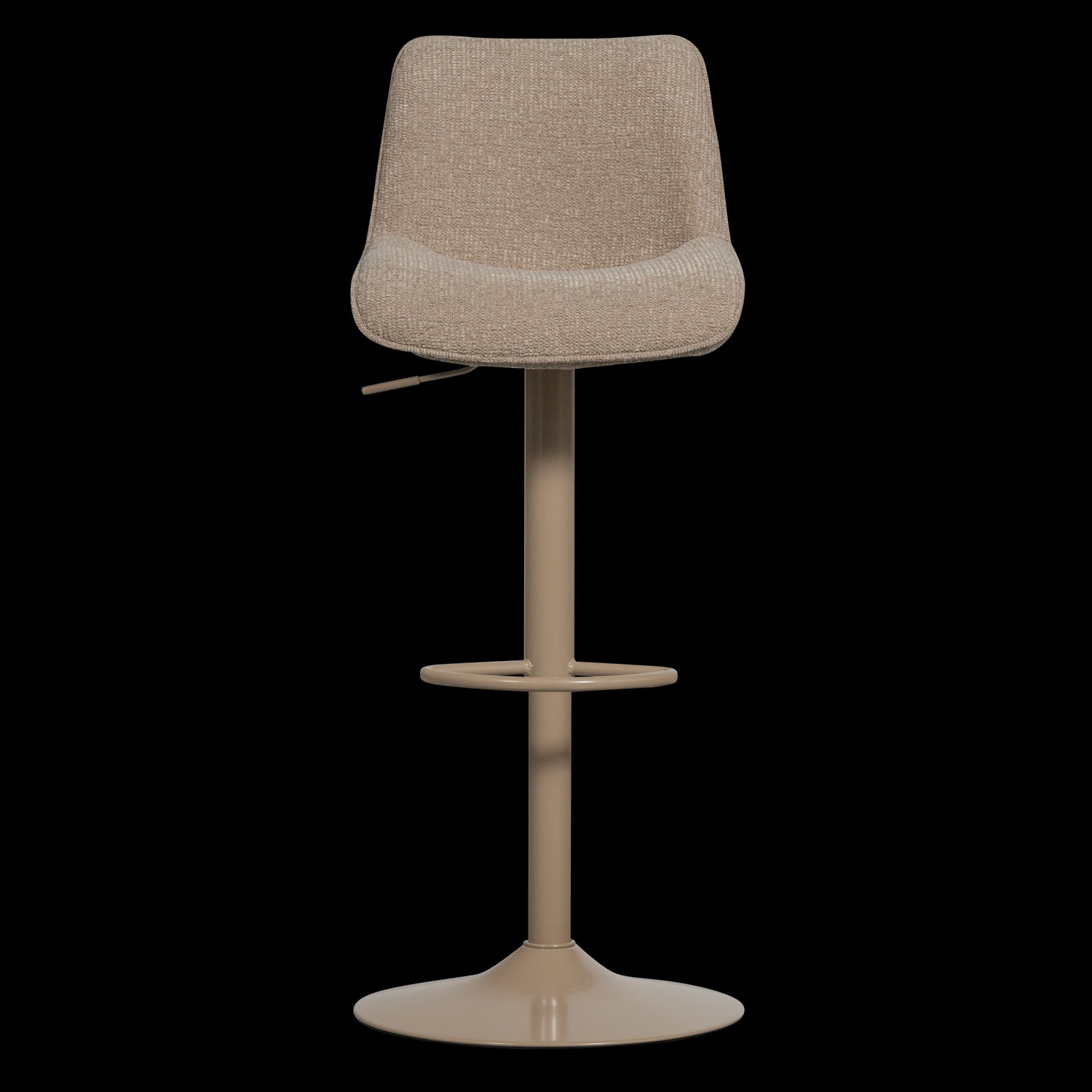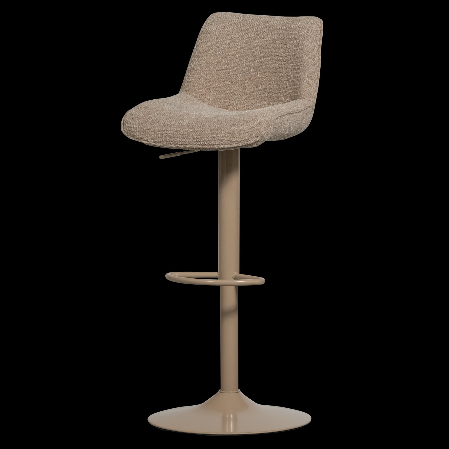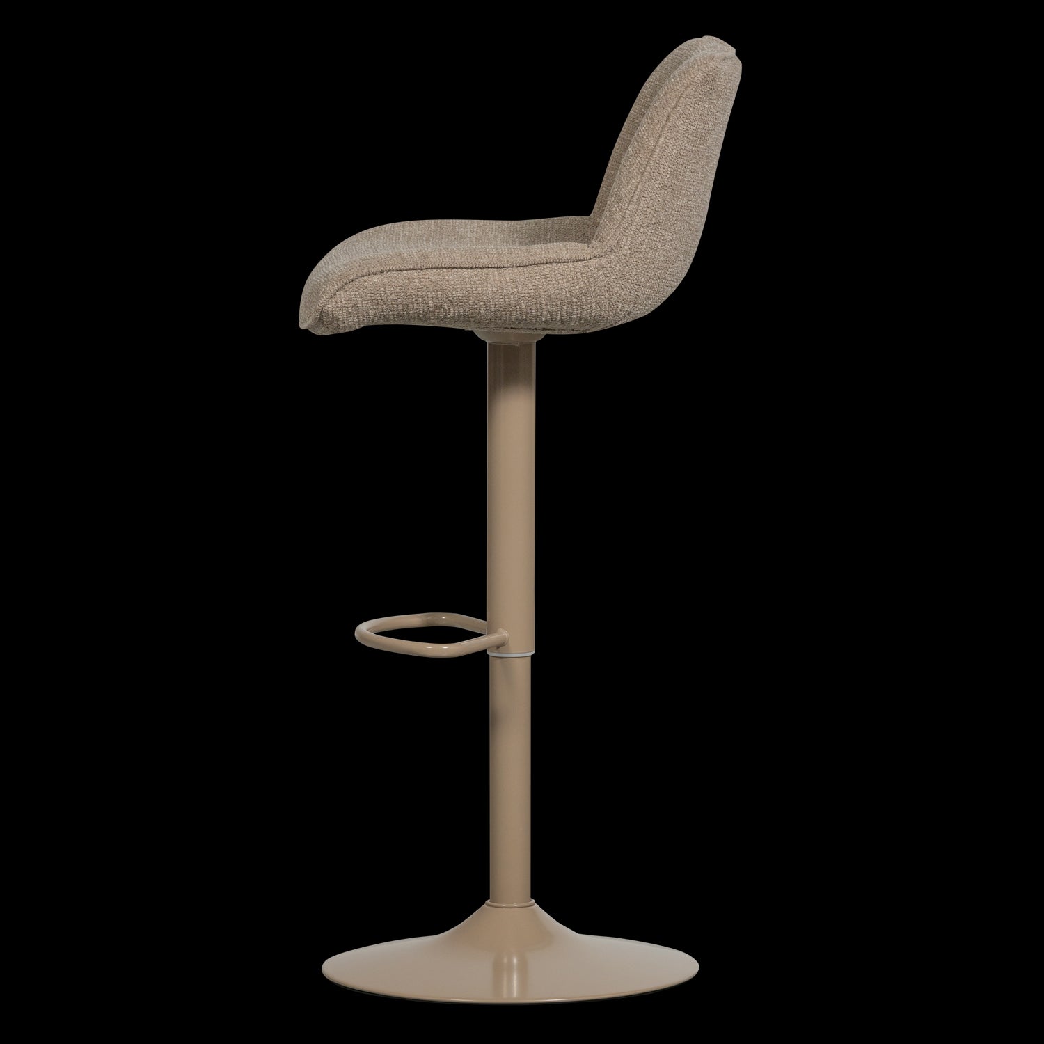 De Marten in hoogte verstelbare barstoel is afkomstig uit de collectie van het Nederlandse merk WOOOD. De stoel heeft een slank metalen onderstel in dezelfde kleur als de bekleding en staat stevig op de grond. De stoel is bekleed met een stevige, geweven stof van 100% polyester. Deze barstoel is niet alleen in hoogte verstelbaar maar ook draaibaar. Perfect voor aan de bar of het keukeneiland. Een stijlvolle en comfortabele zitplek om urenlang te borrelen.