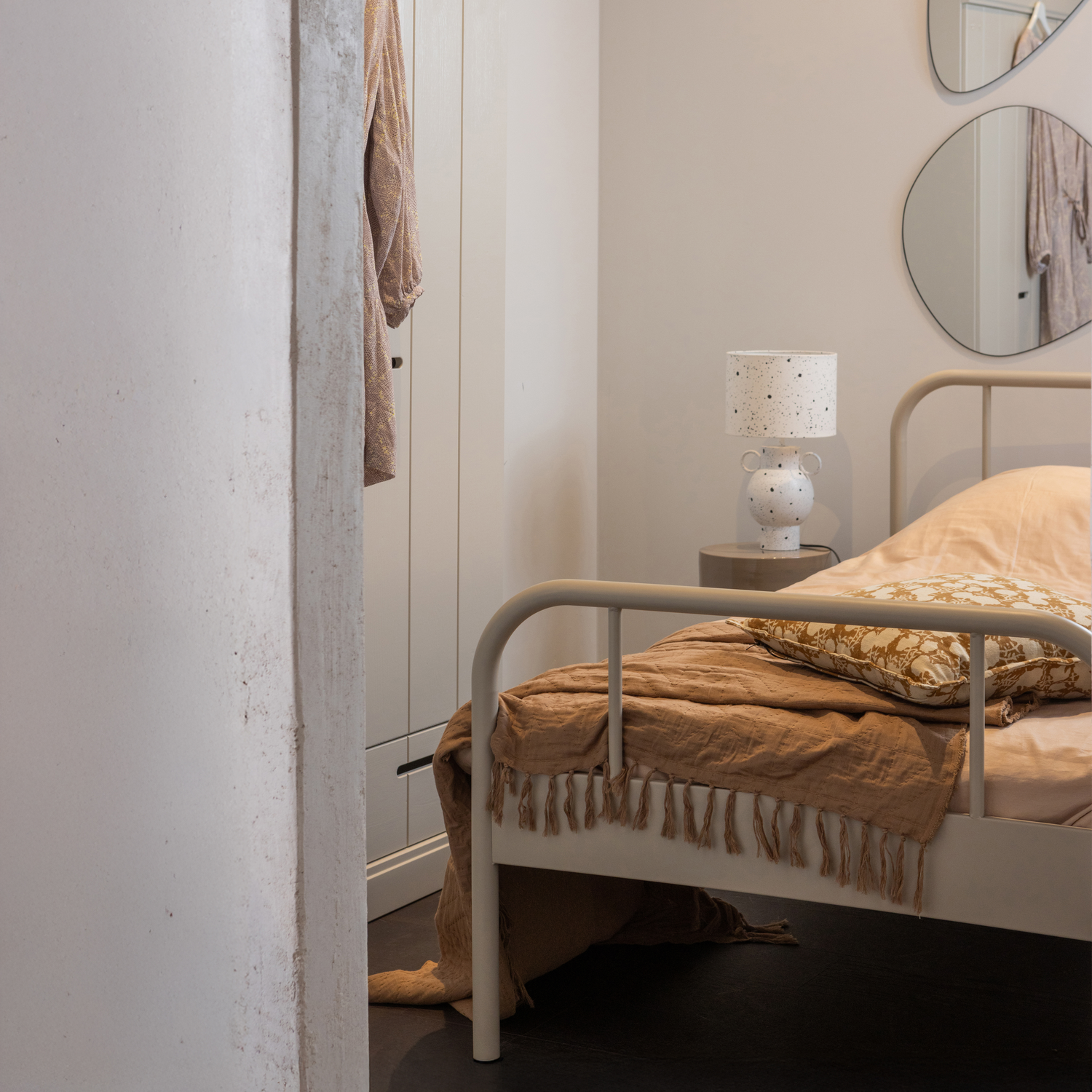 Het Mata 1-persoonsbed is afkomstig uit de collectie van het Nederlandse merk WOOOD en heeft een tijdloze en stijlvolle uitstraling. Het eenpersoonsbed is een echte aanwinst voor elke kinderkamer! Het frame is gemaakt van staal en afgewerkt met een zandkleurige poedercoating. Het bed Mata is geschikt voor een matras van 90x200 cm. Het bed wordt exclusief matras geleverd.