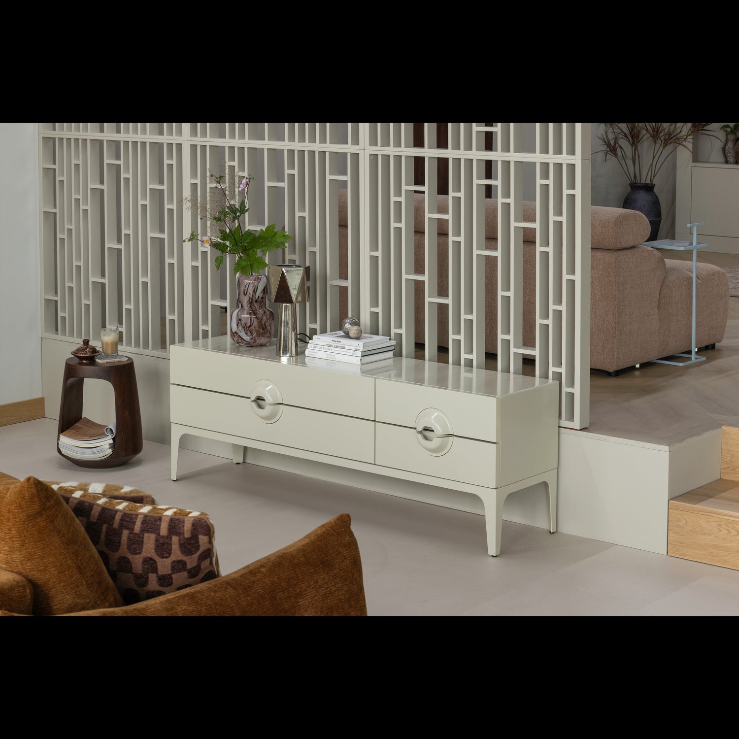 Merge is een tv-meubel met een retro design uit de collectie van het Nederlandse merk WOOOD. De Merge is niet alleen een stijlvol tv-meubel, maar biedt ook volop ruimte om spullen netjes en uit het zicht op te bergen. Zo heeft het vier ruime lades, die elk zijn voorzien van een unieke handgreep. Met zijn creatieve uitstraling en functionele ontwerp is dit tv-meubel een echte must-have!