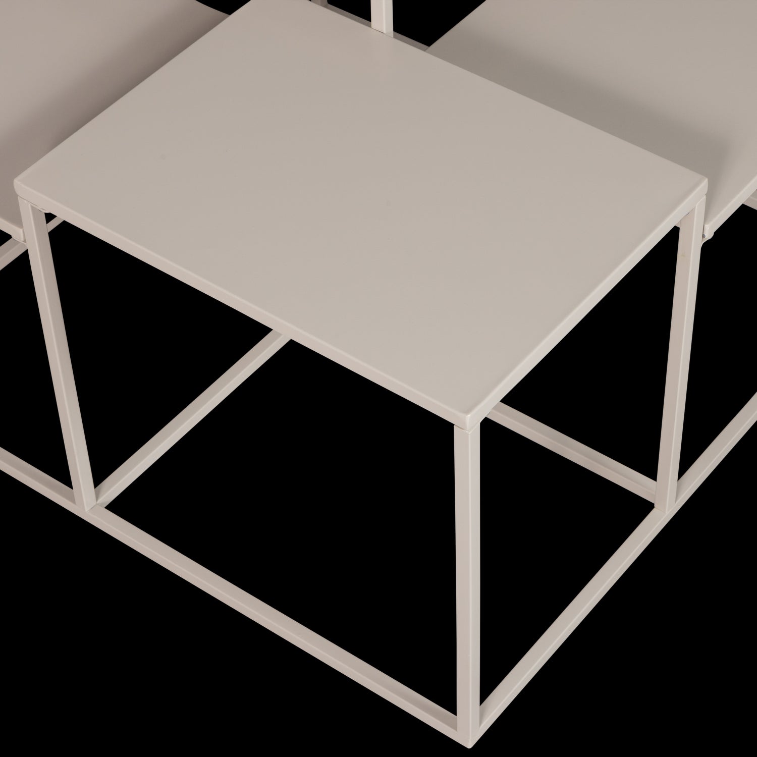 De Mida salontafel komt uit de collectie van het Nederlandse interieurmerk WOOOD en is een speels item. De salontafel bestaat uit vier tafelbladen met verschillende hoogtes en een slank frame. De kleur is een mix van grijs en beige; greige, welke zich gemakkelijk blend met jouw kleurenpallet.