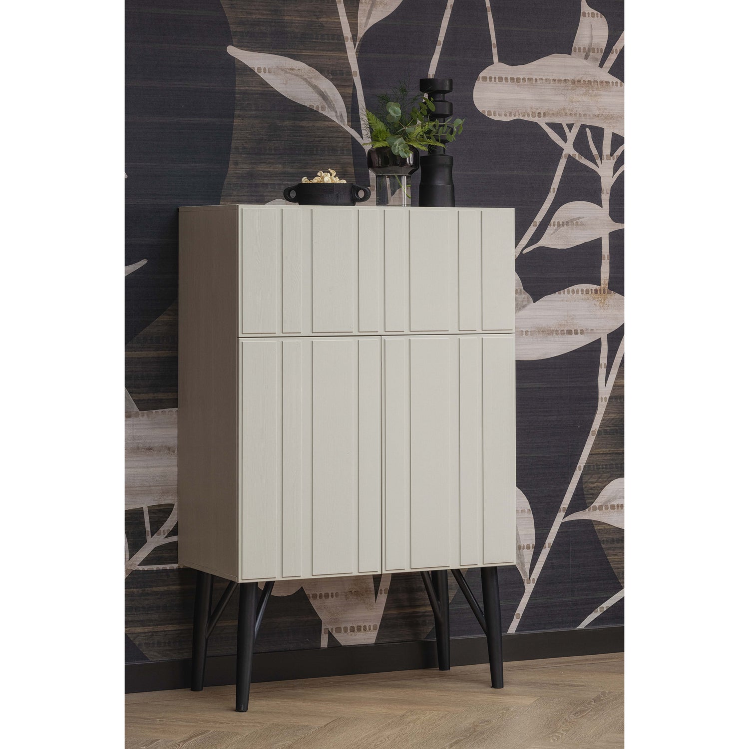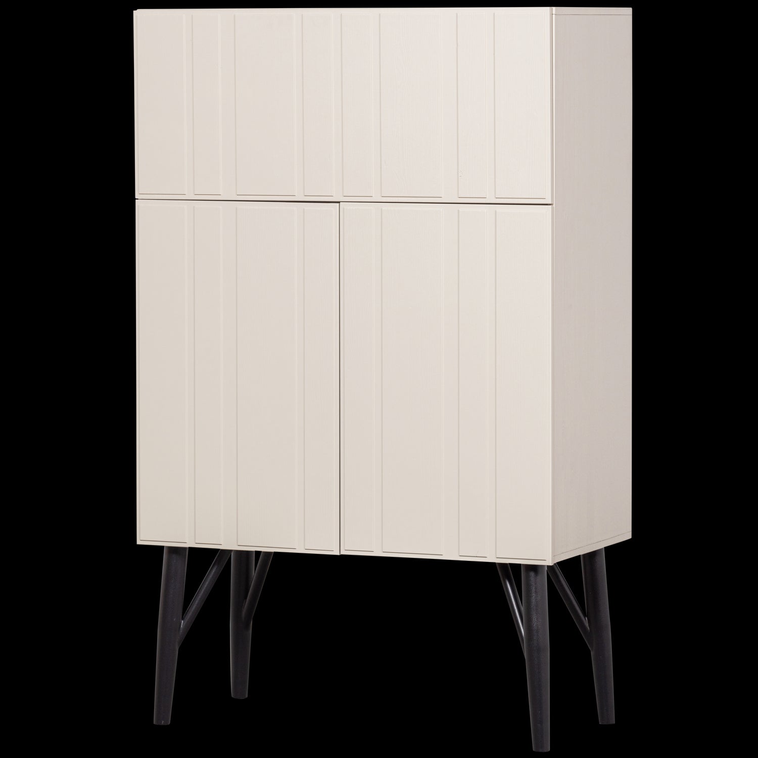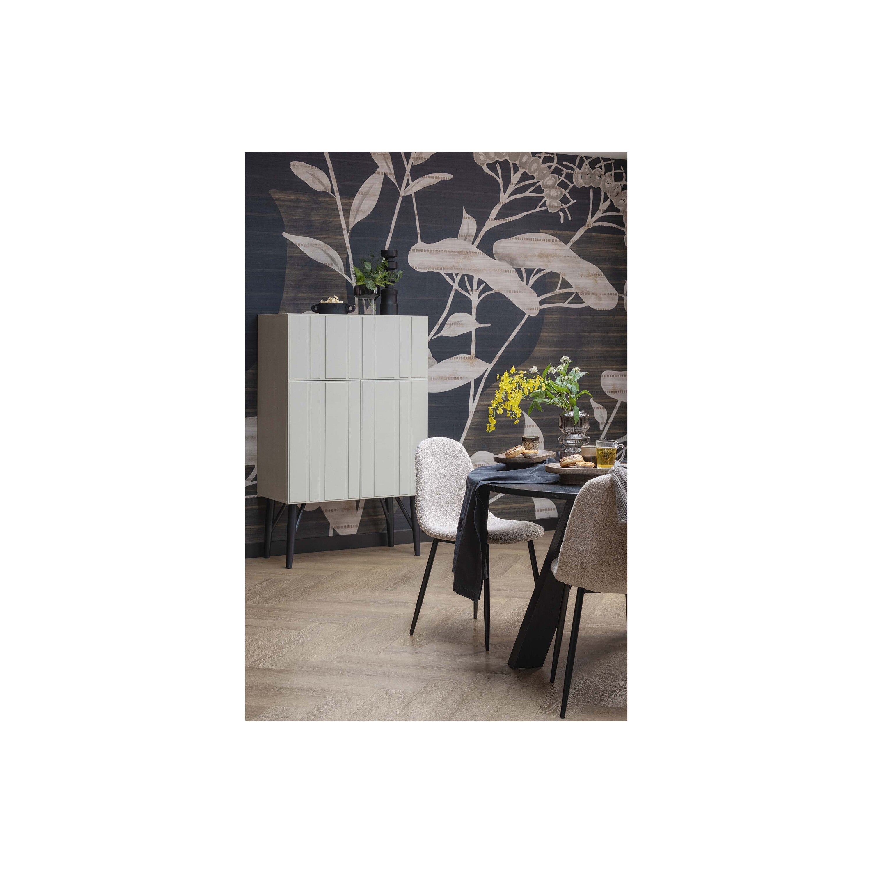 - De mistwitte afwerking houdt het ontwerp modern met als spannende tegenhanger de stoere zwarte poten
