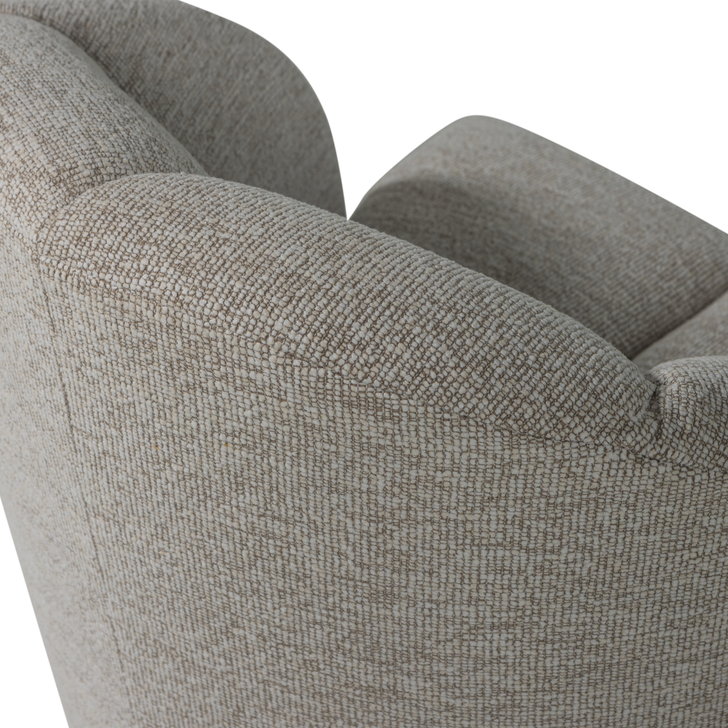 Liora is een verfijnde bouclé stof met een subtiele kleurmelange en een stevige grip. Deze elegante stof, vervaardigd uit 100% polyester, heeft een Martindale van 100.000, wat betekent dat de stof geschikt is voor intensief woongebruik. De stevige bouclé structuur zorgt ervoor dat de stoffering zijn vorm behoudt en lang meegaat, zelfs bij dagelijks gebruik.