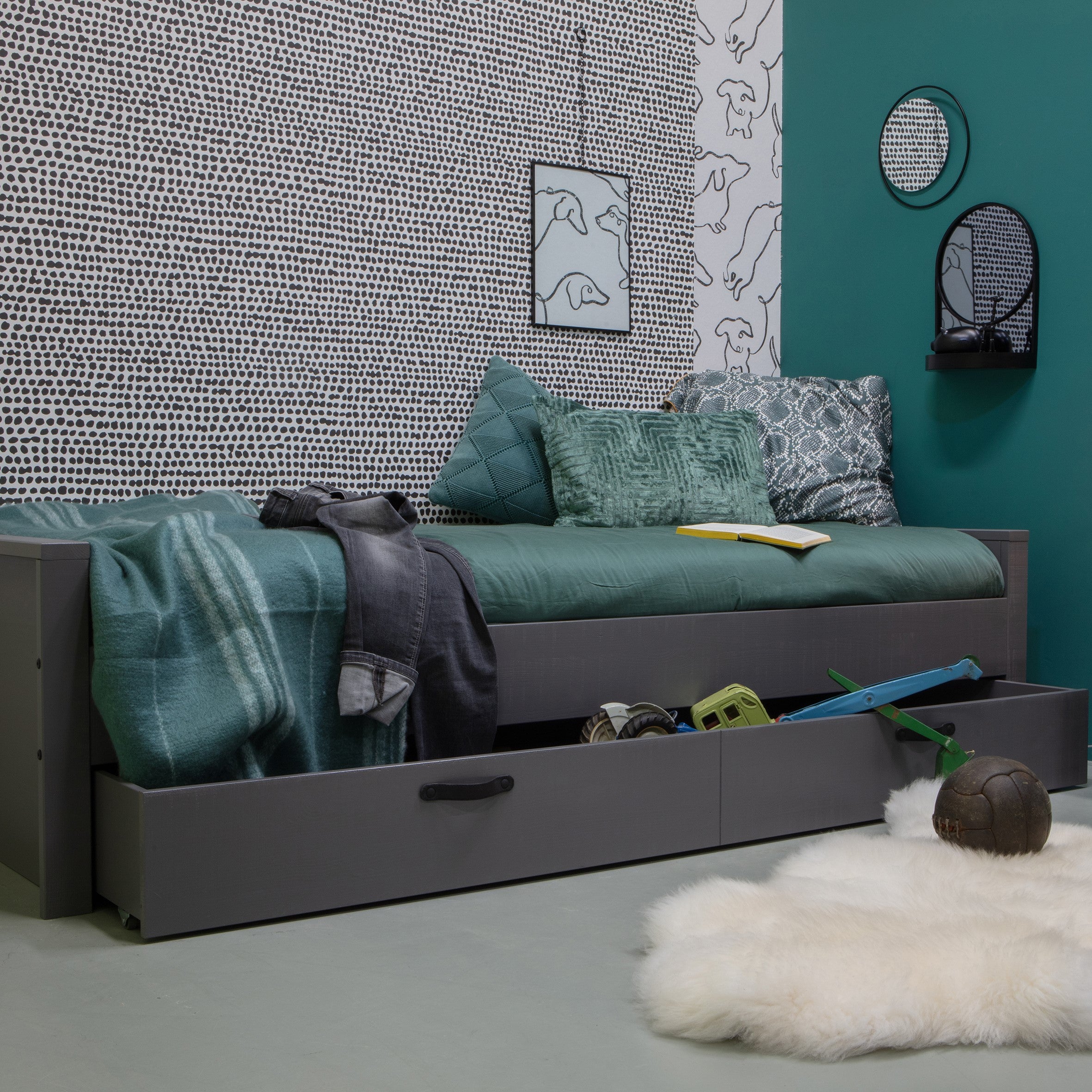 - De matrasmaat is 90 x 200 cm