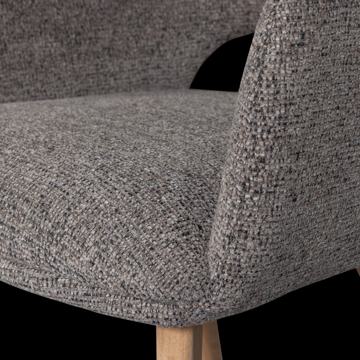 Onze Anil geweven chenille stof met een Martindale van 30.000+ heeft een zachte grip en voelt comfortabel aan. De stof is gemaakt van 100% polyester. Bovendien is de stof voorzien van een luxe matte glans wat zorgt voor een hoogwaardige uitstraling. Het onderstel is gemaakt van eikenhout.