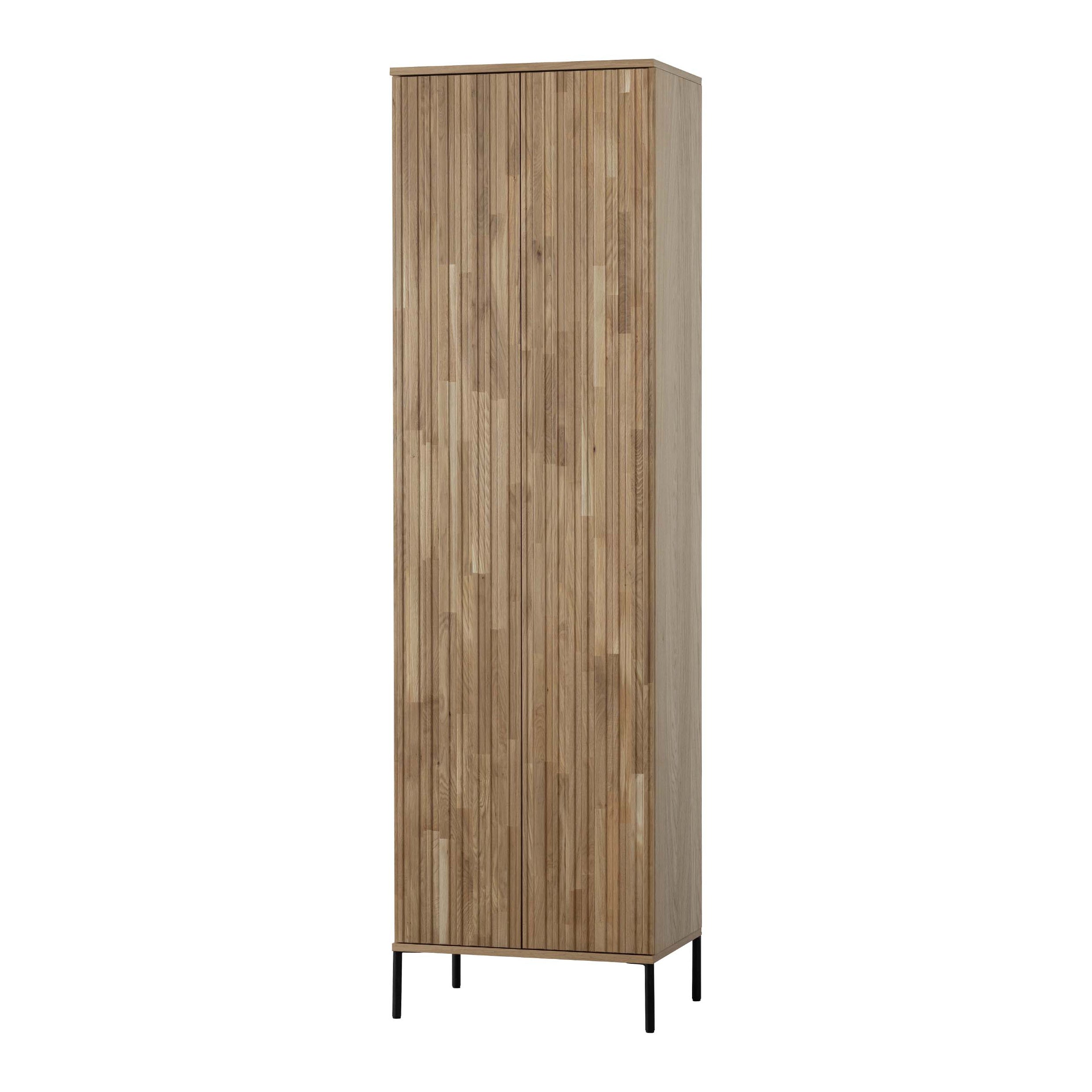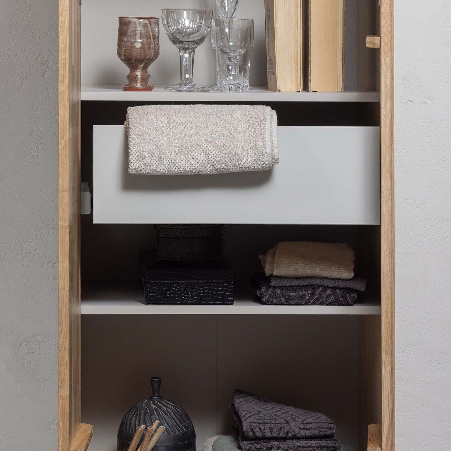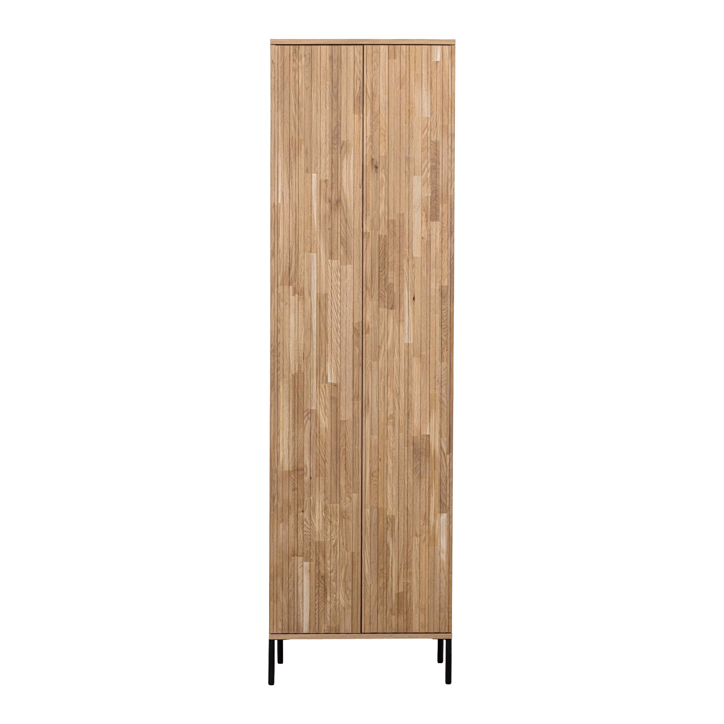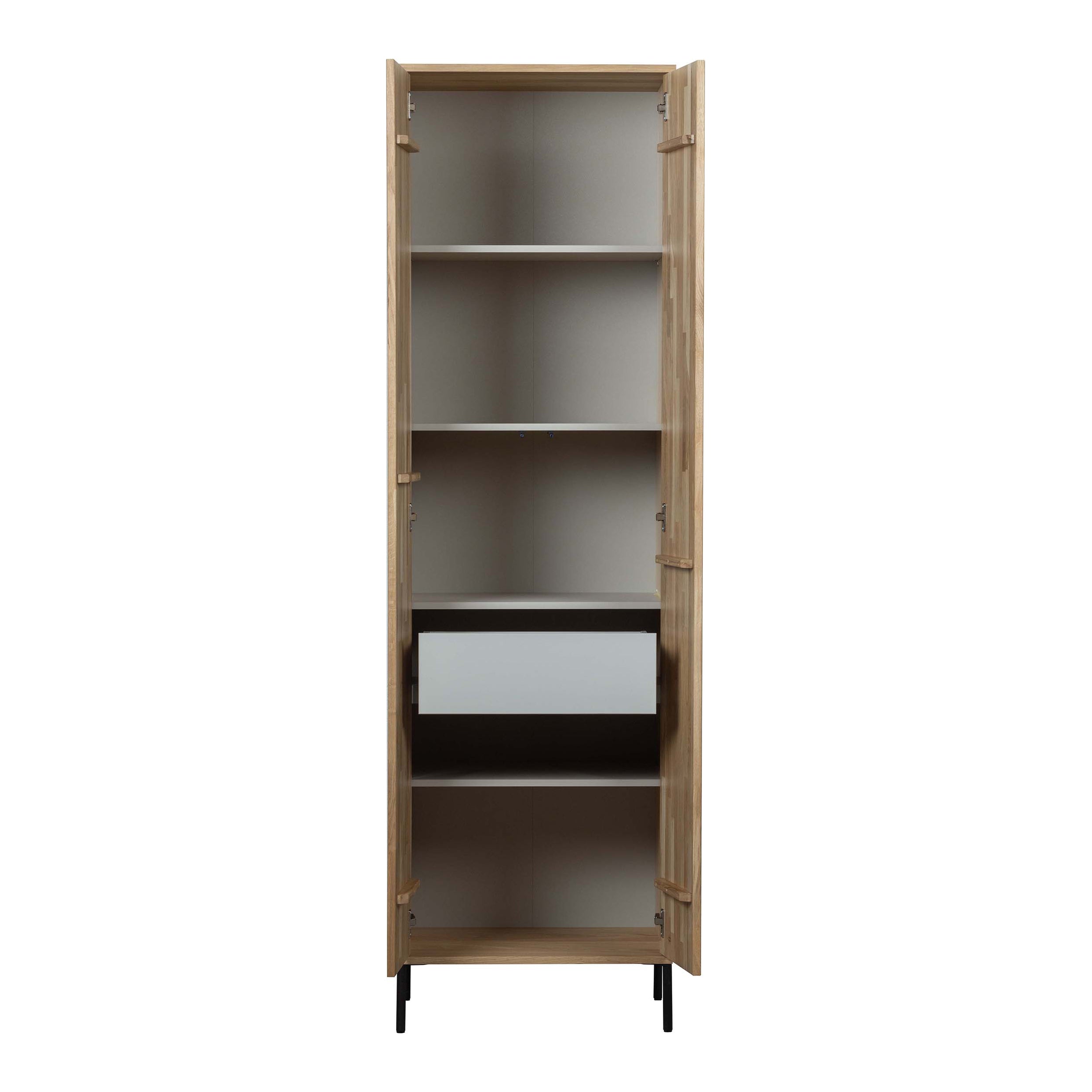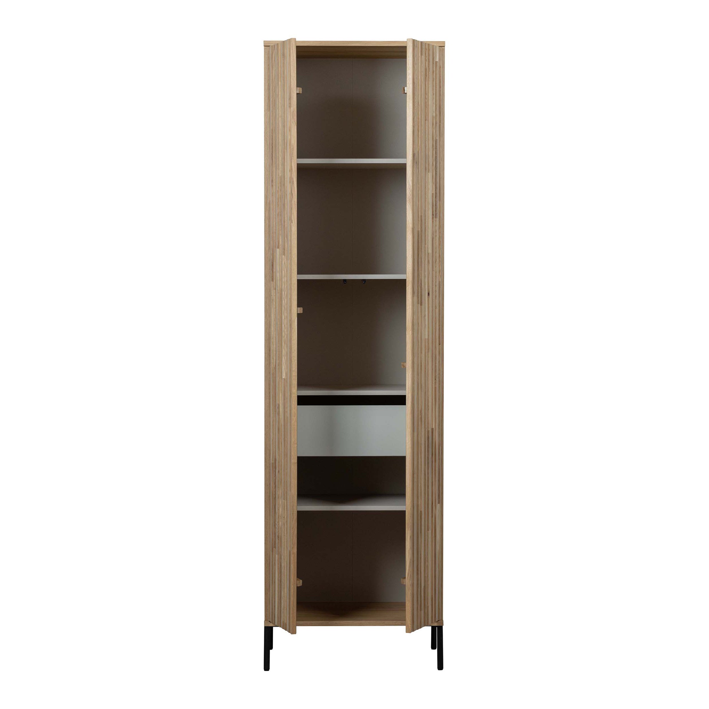 De populaire Gravure-serie van WOOOD is vernieuwd! Deze Gravure New hoge kast combineert strak design met praktische opbergruimte. Gemaakt van eikenhout in een warme natuurlijke kleur, met een zwart interieur en stoere metalen poten. Een stijlvol statement in elk interieur!