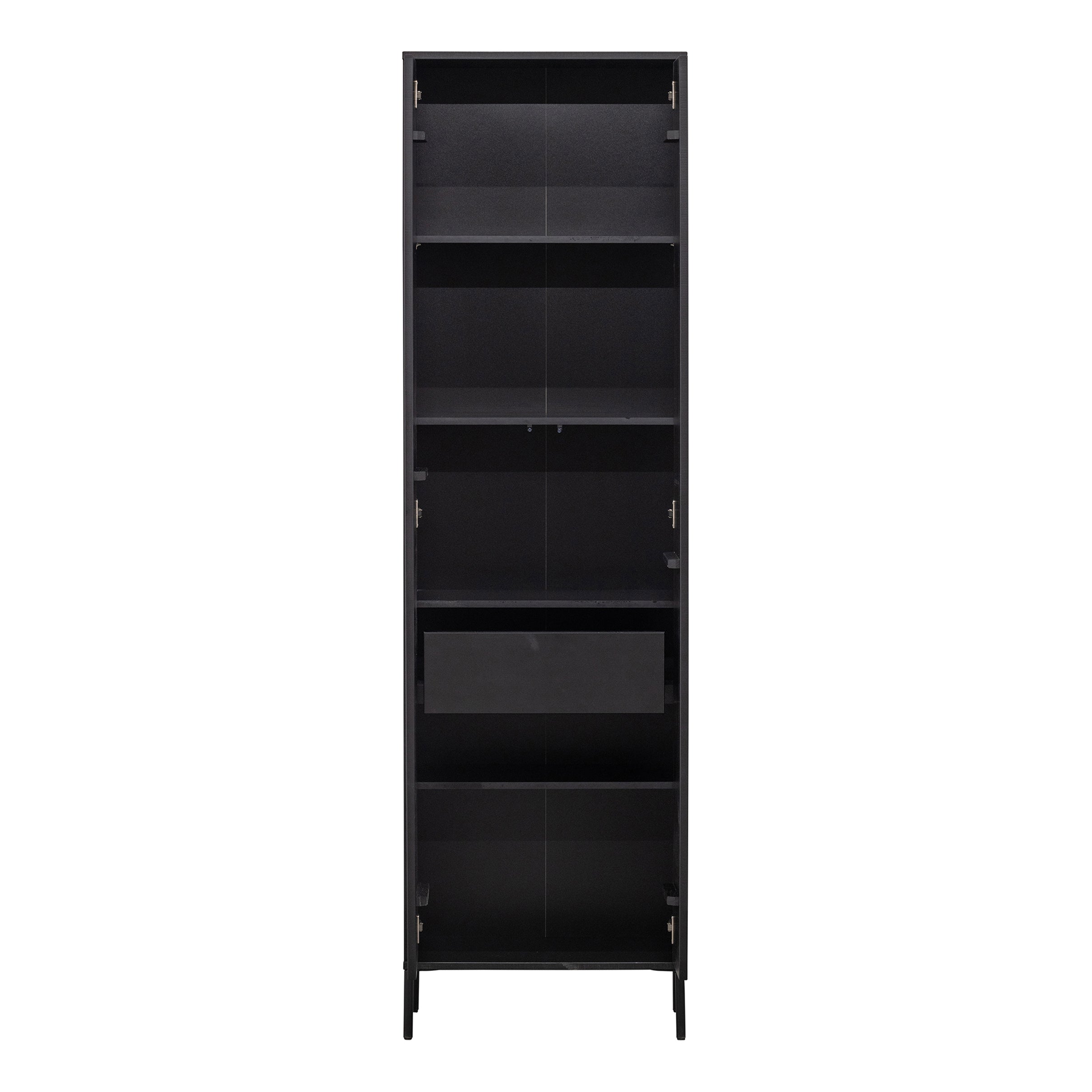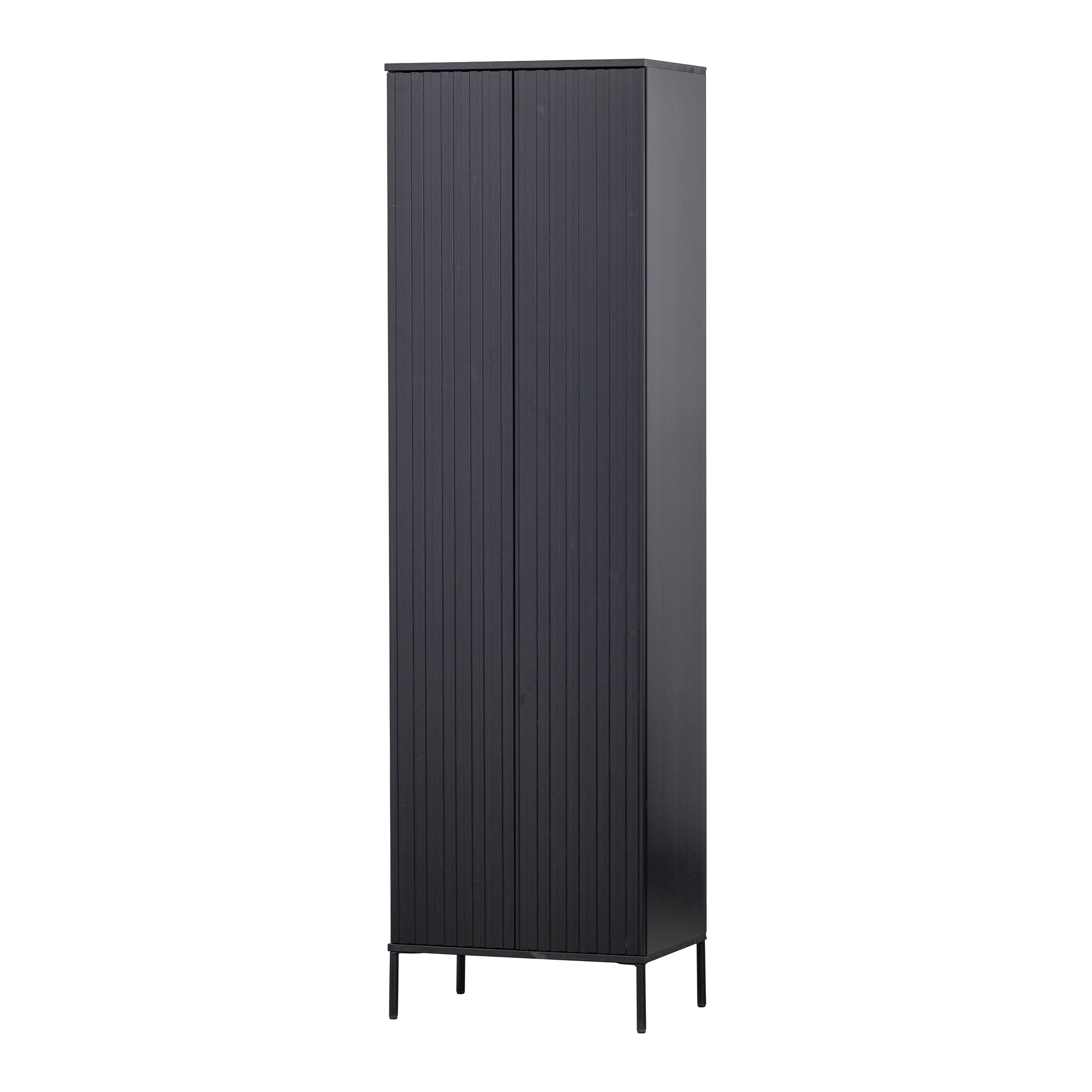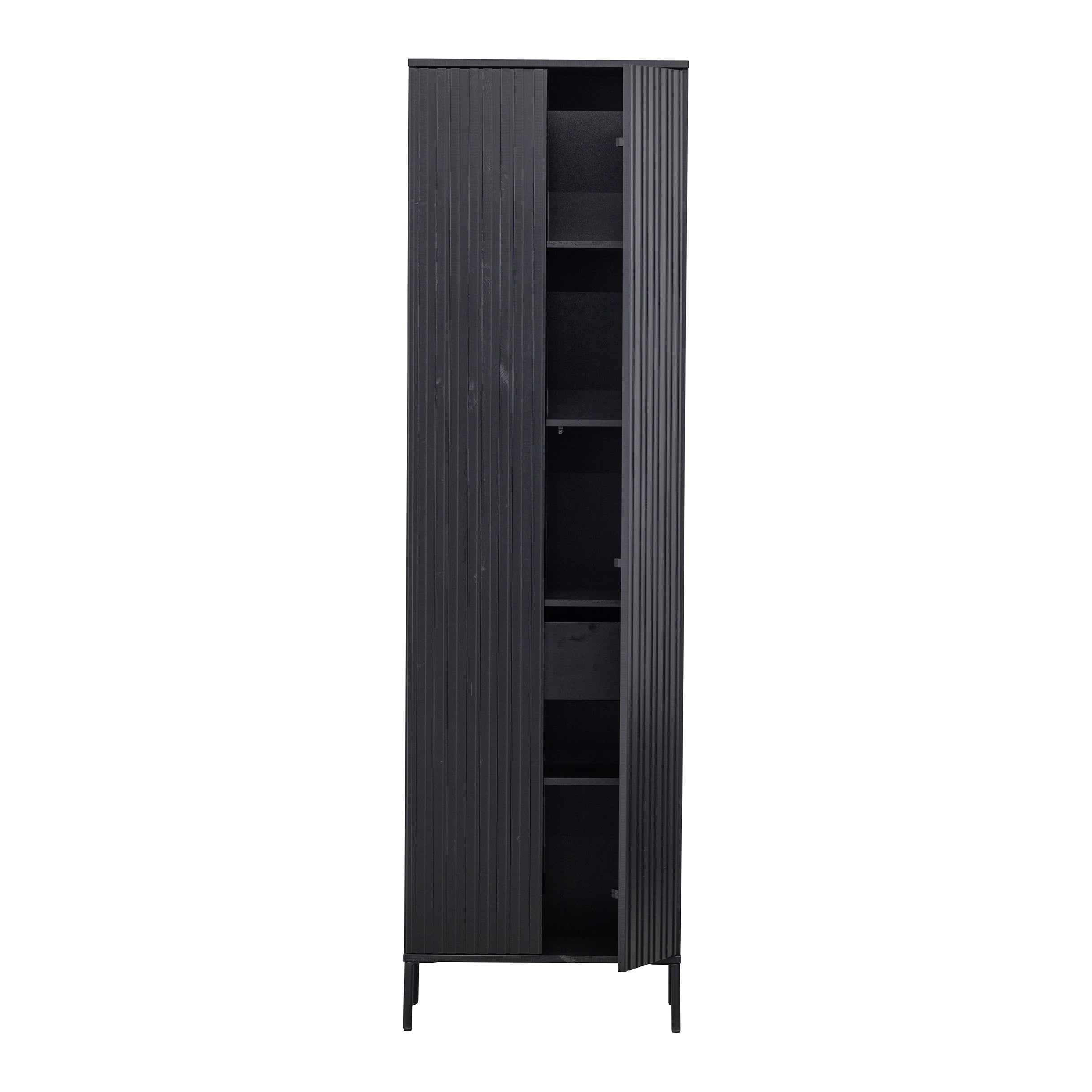 De populaire Gravure-serie van WOOOD is vernieuwd! Deze Gravure New hoge kast combineert strak design met praktische opbergruimte. Gemaakt van massief grenenhout in een warme zwarte kleur, met een zwart interieur en stoere metalen poten. Een stijlvol statement in elk interieur!