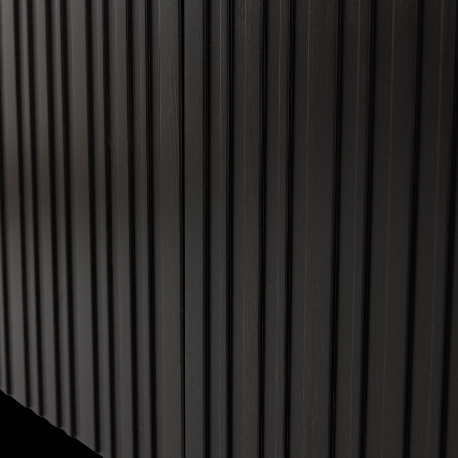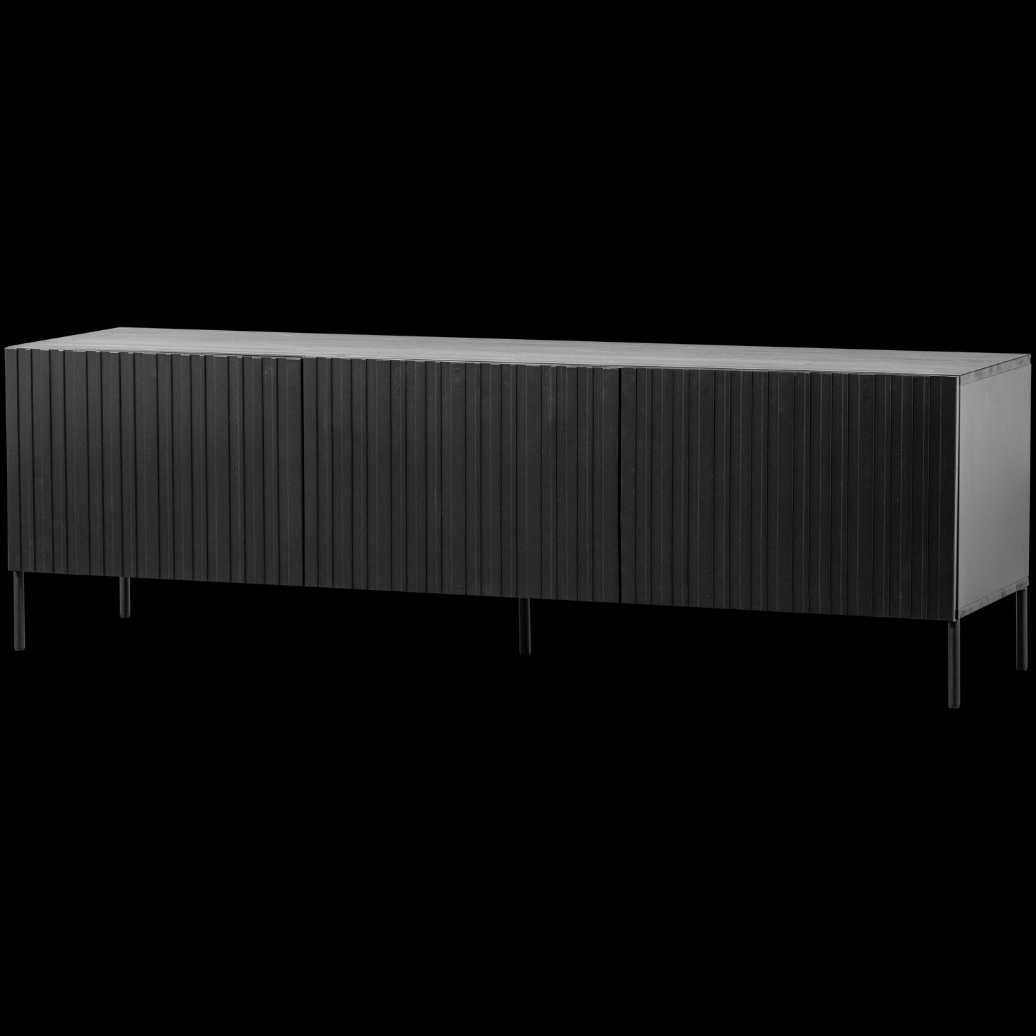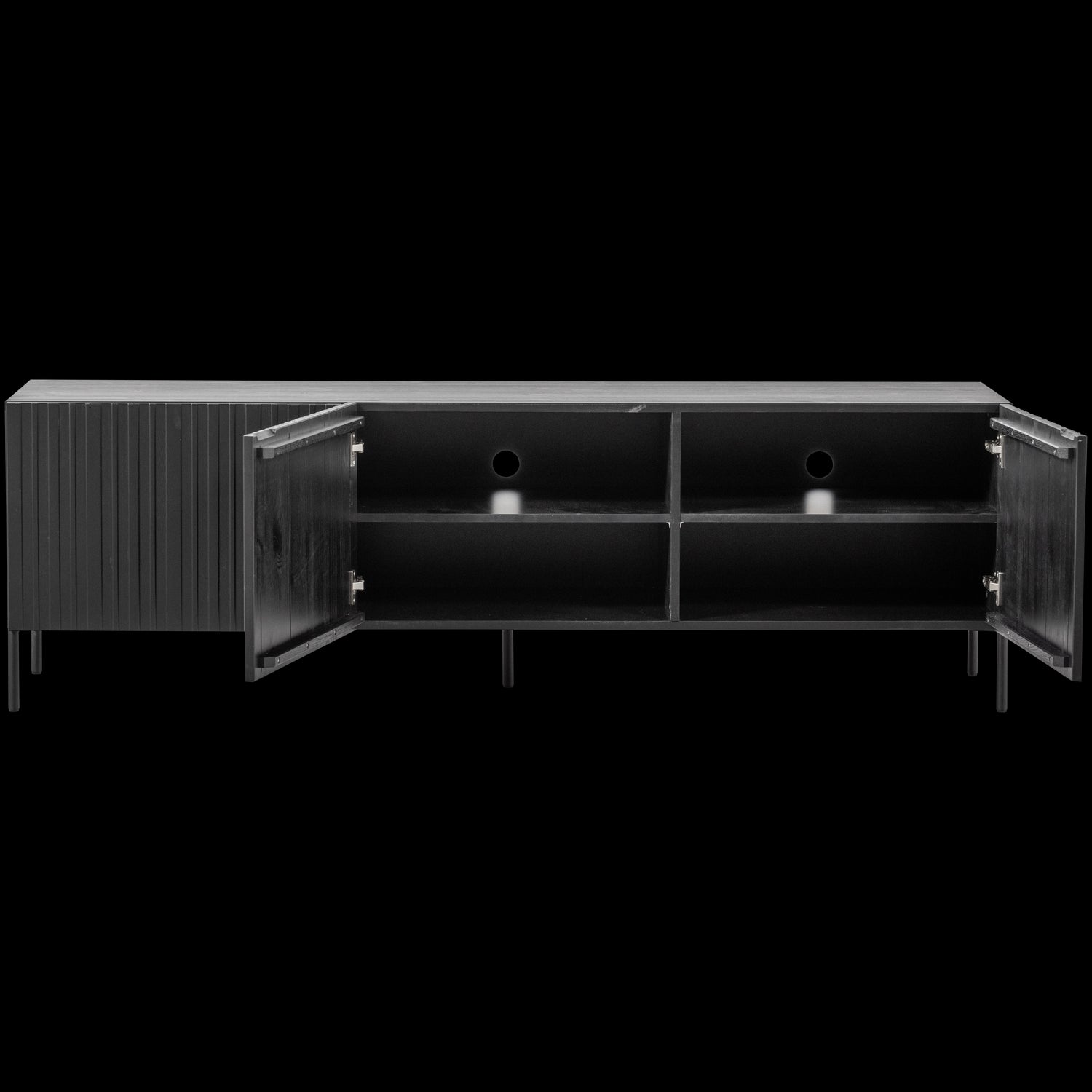 Het tv-meubel Gravure zwart grenen hout van het Nederlandse merk WOOOD is onderdeel van de Gravure-serie. Deze solide kastenserie heeft een basic modern design en een warme uitstraling. Achter iedere deur zitten bedradingsgaten om draden netjes weg te werken. Het interieur is gelamineerd spaanplaat. De deuren hebben een ruimtelijk lijnenspel en beschikken over een soft-close systeem voor een rustige en veilige sluiting.