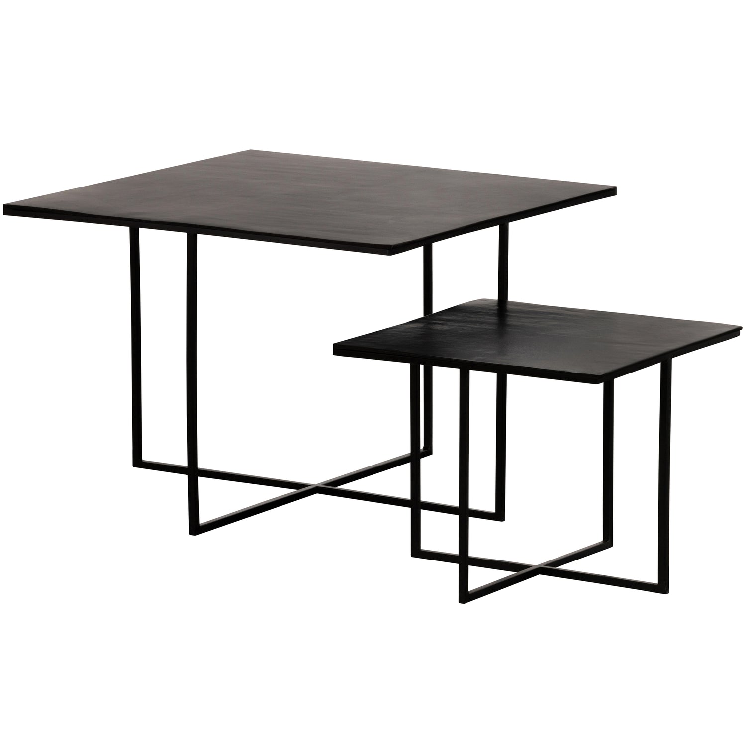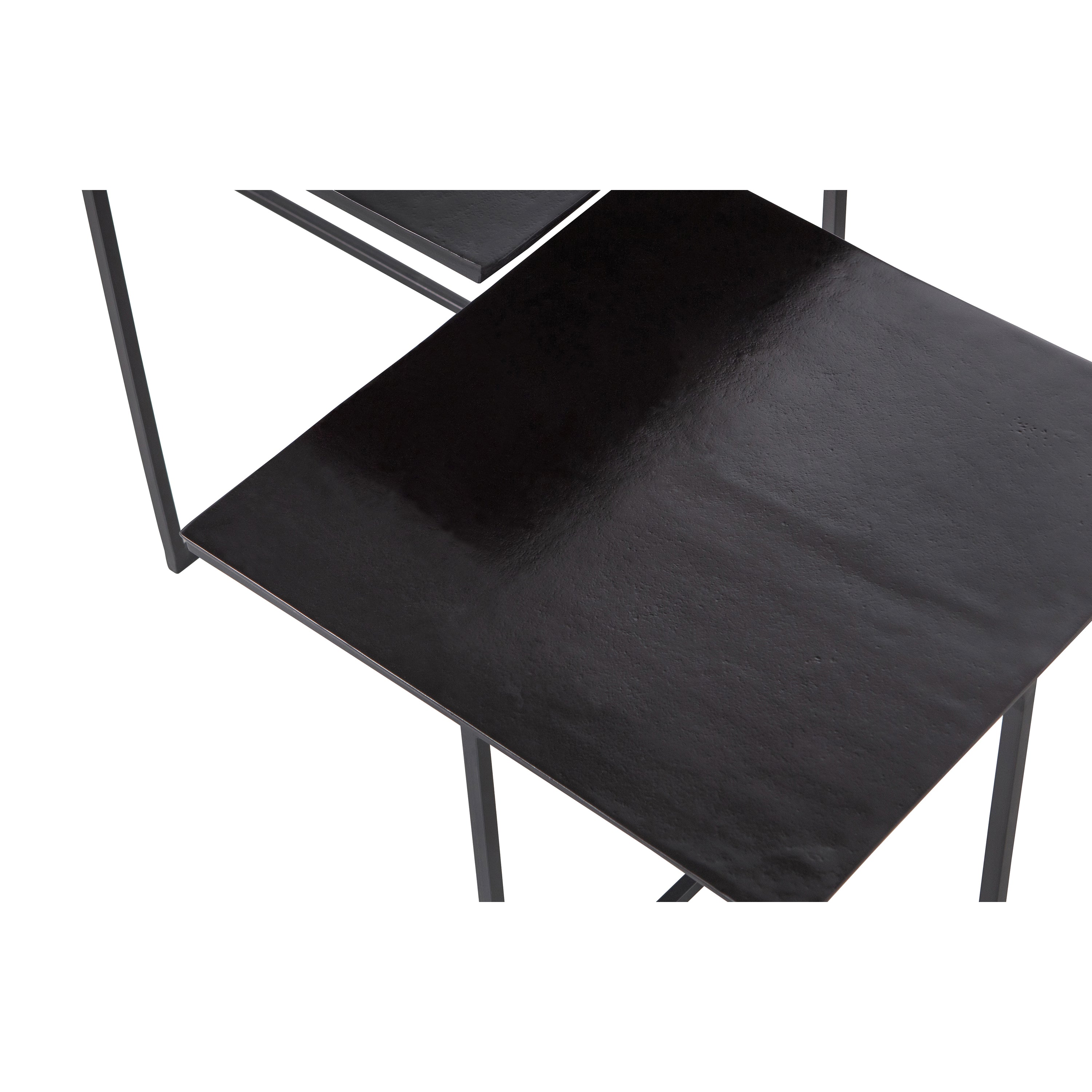 Het tafelblad heeft een dikte van 0,5 cm, en de metalen kruispoten hebben een dikte van 1 cm. De tafels kunnen deels onder elkaar geschoven worden met een tussenruimte van 5 cm, wat zorgt voor een speels en veelzijdig gebruik.
