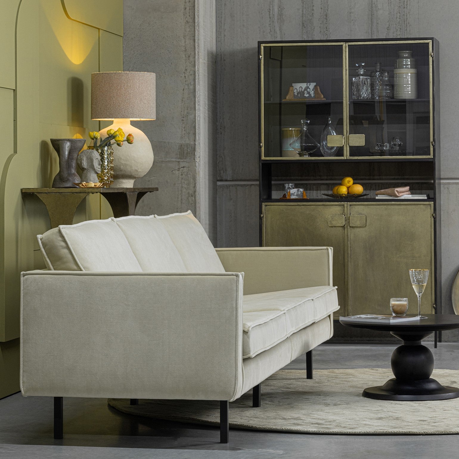 Het metaal uit onze collecties kent diverse afwerkingen, zoals: een poedercoating en messing/antique brass. De antique brass finishes uit onze collecties worden met een mix van koper en zink aangebracht op het metaal, dit kan vervolgens worden afgewerkt in een geborstelde uitstraling, mat of glanzend. Antique brass geeft een verweerde gouden uitstraling aan het meubel.