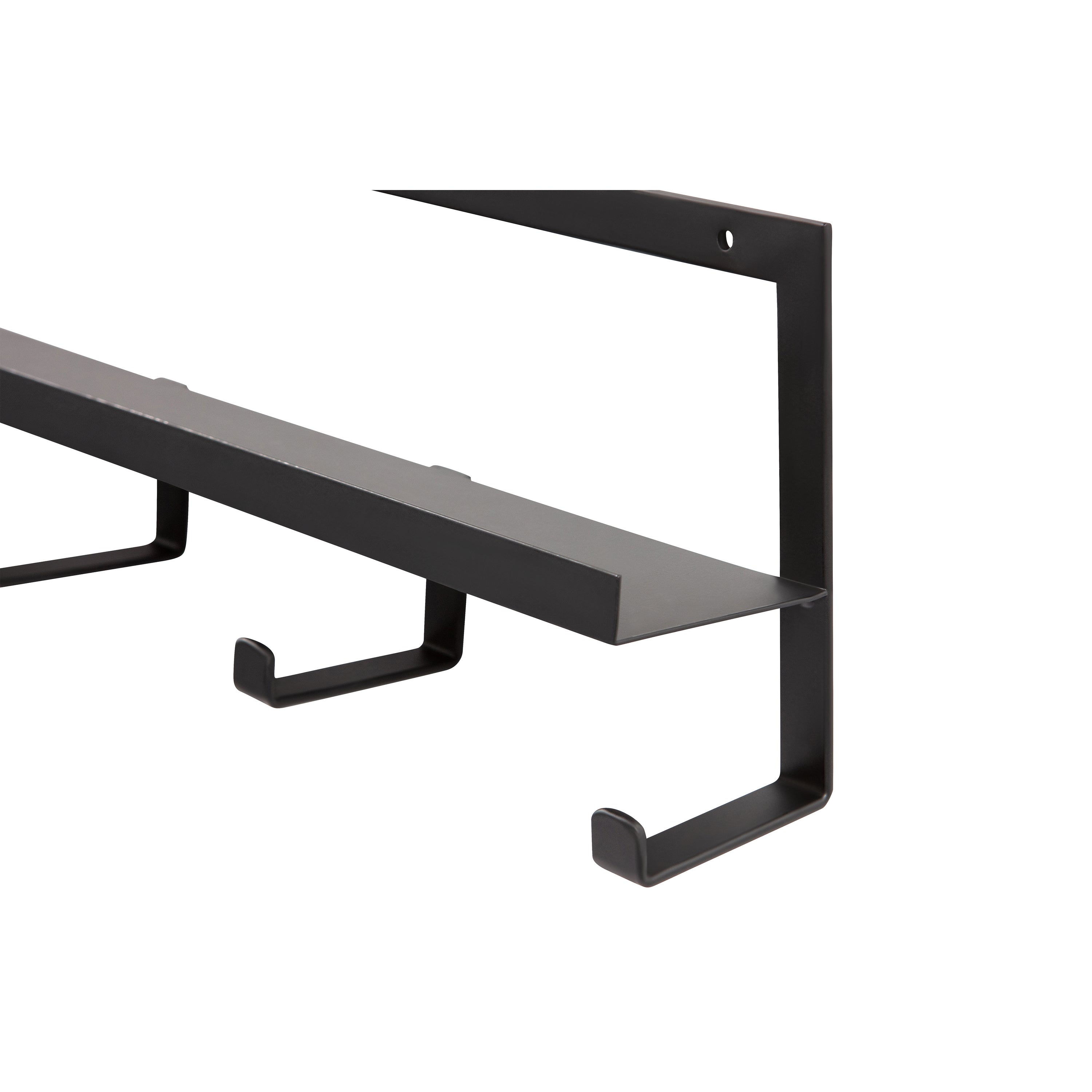 Stijlvolle wandplank met ophangmogelijkheid Kapstok met een eenvoudig design Gemaakt van metaal met een matzwarte poedercoating H 13 cm x B 50 cm x D 6,5 cm