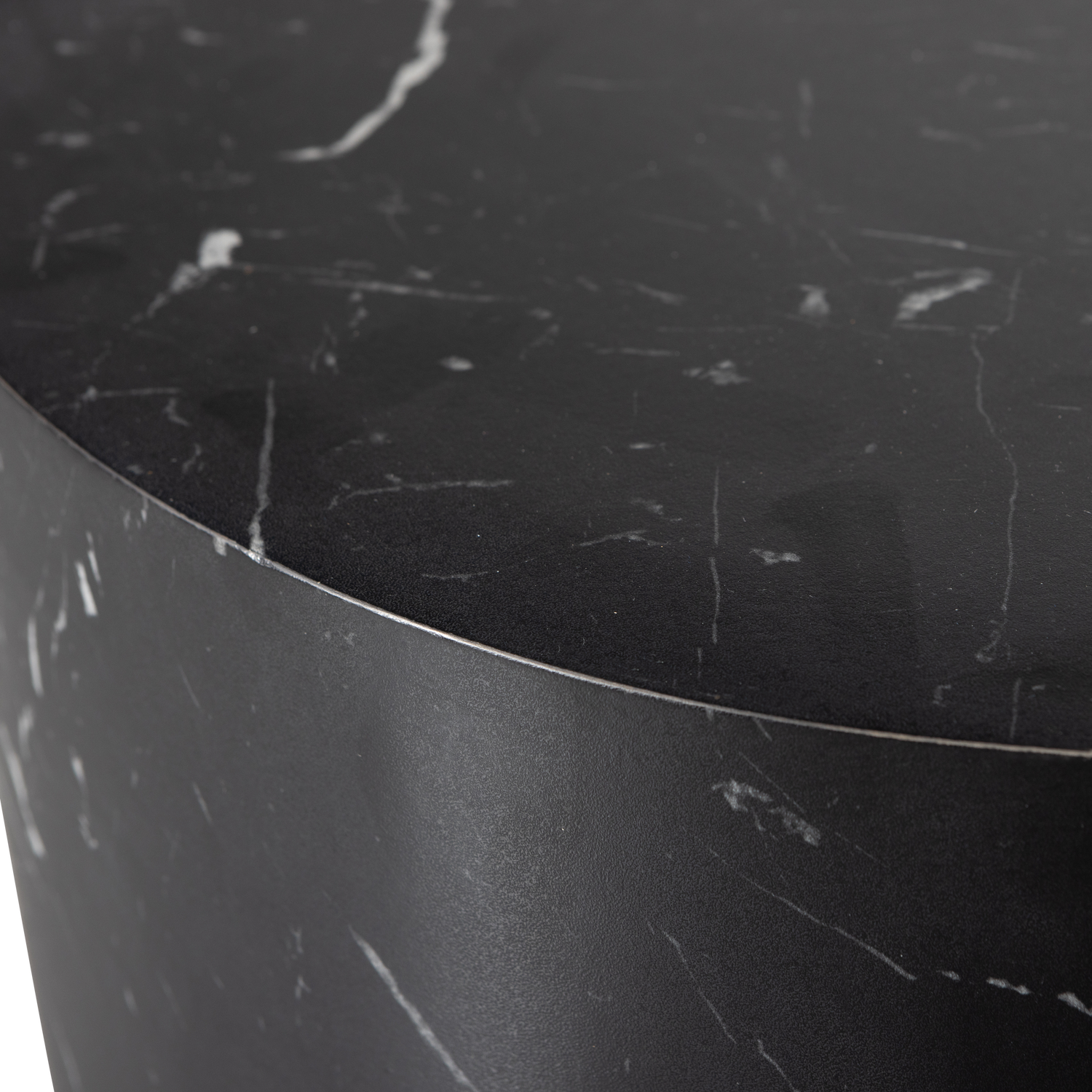 De Quint bijzettafel, uit de collectie van het Nederlandse interieurmerk WOOOD, is een subtiel chique exemplaar. Het lichtgewicht tafeltje heeft een elegante afwerking door de 3D-effect cover in subtiele marmerprint.