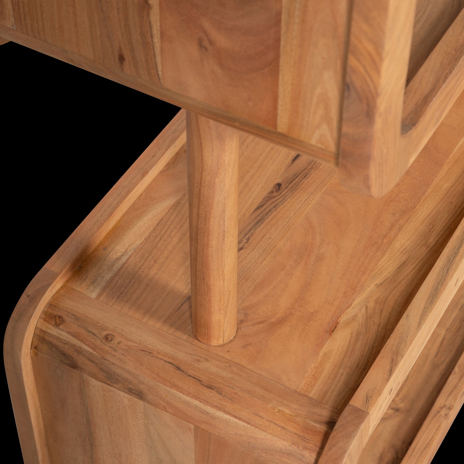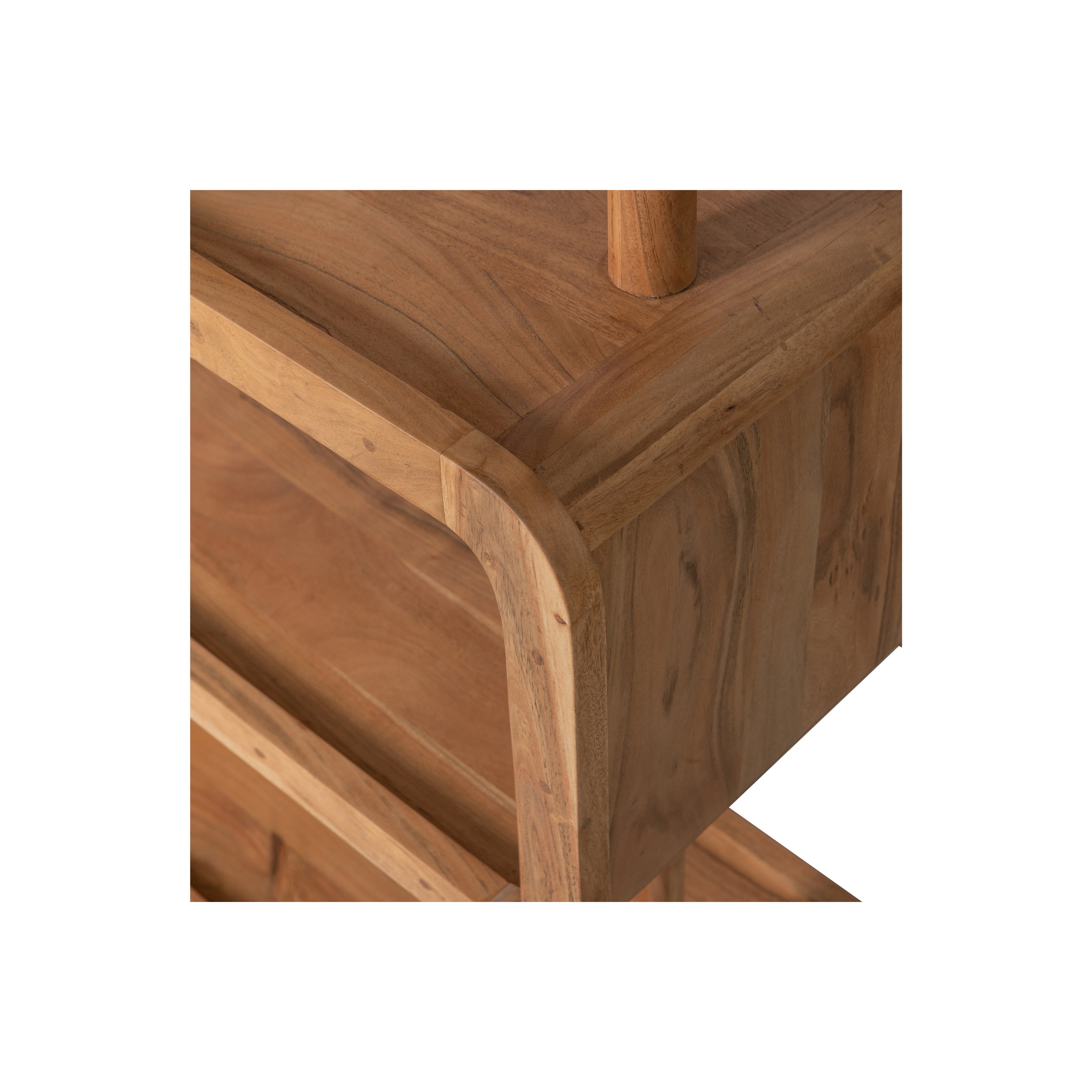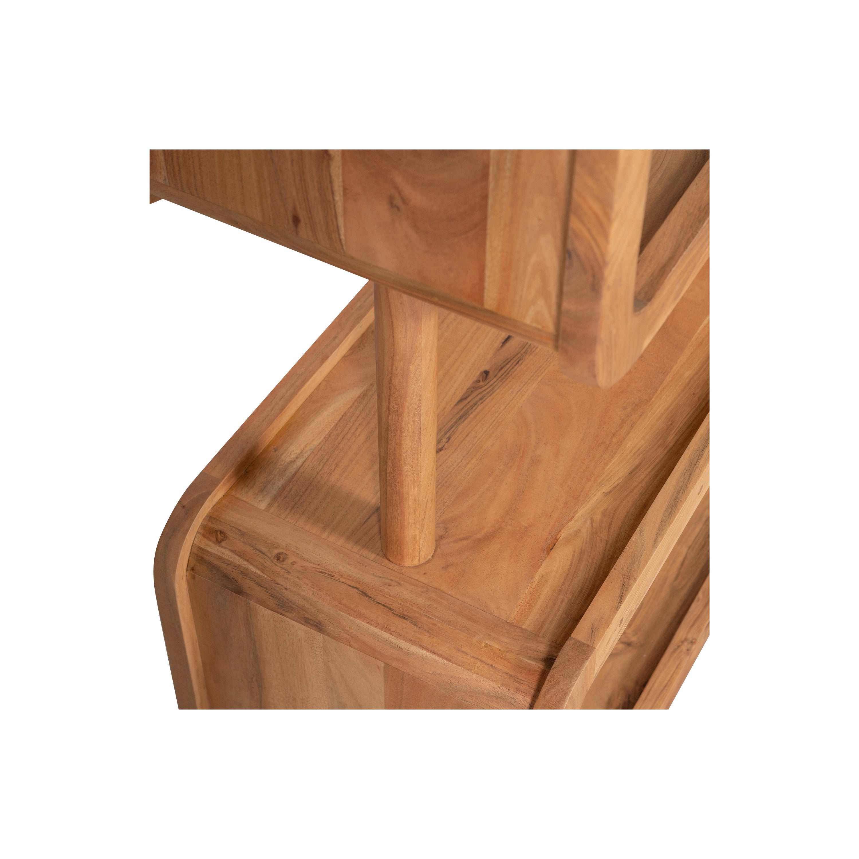 Acaciahout is gekenmerkt door haar warme, rode gloed. Deze kleur zal naar mate het gebruik en blootstelling aan licht iets zachter worden. De duidelijke nerf- en vlamtekeningen geven veel karakter aan deze duurzame houtsoort. Kleurnuances, oneffenheden en barsten geven extra diepte en kenbaarheid aan dit natuurproduct. Afmetingen