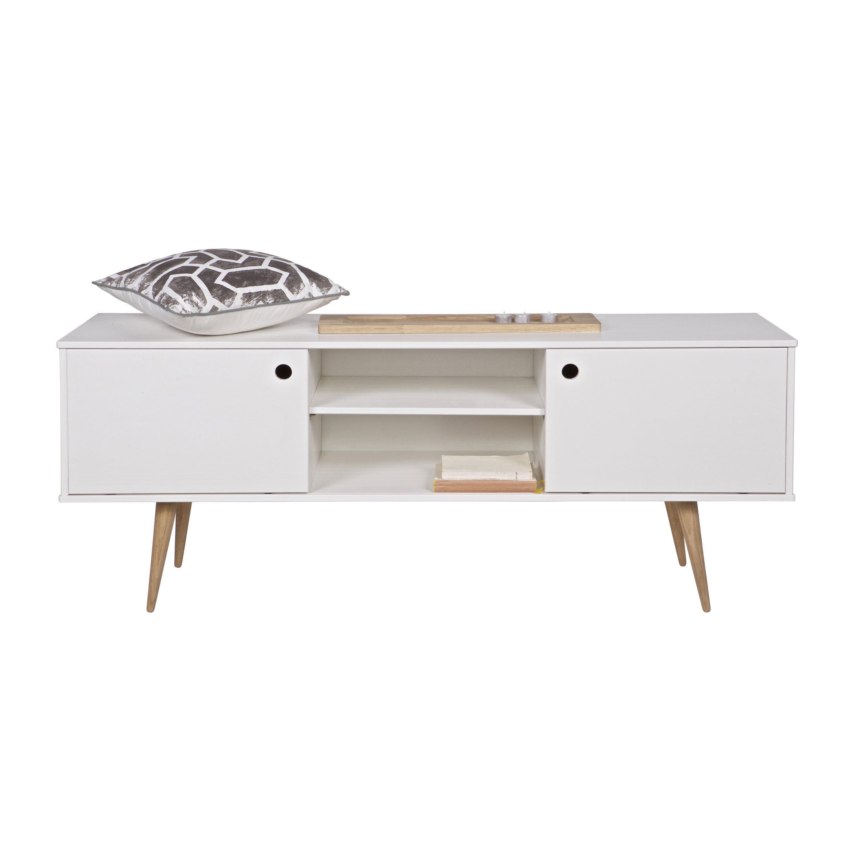 - Voorzien van stijlvolle houten poten