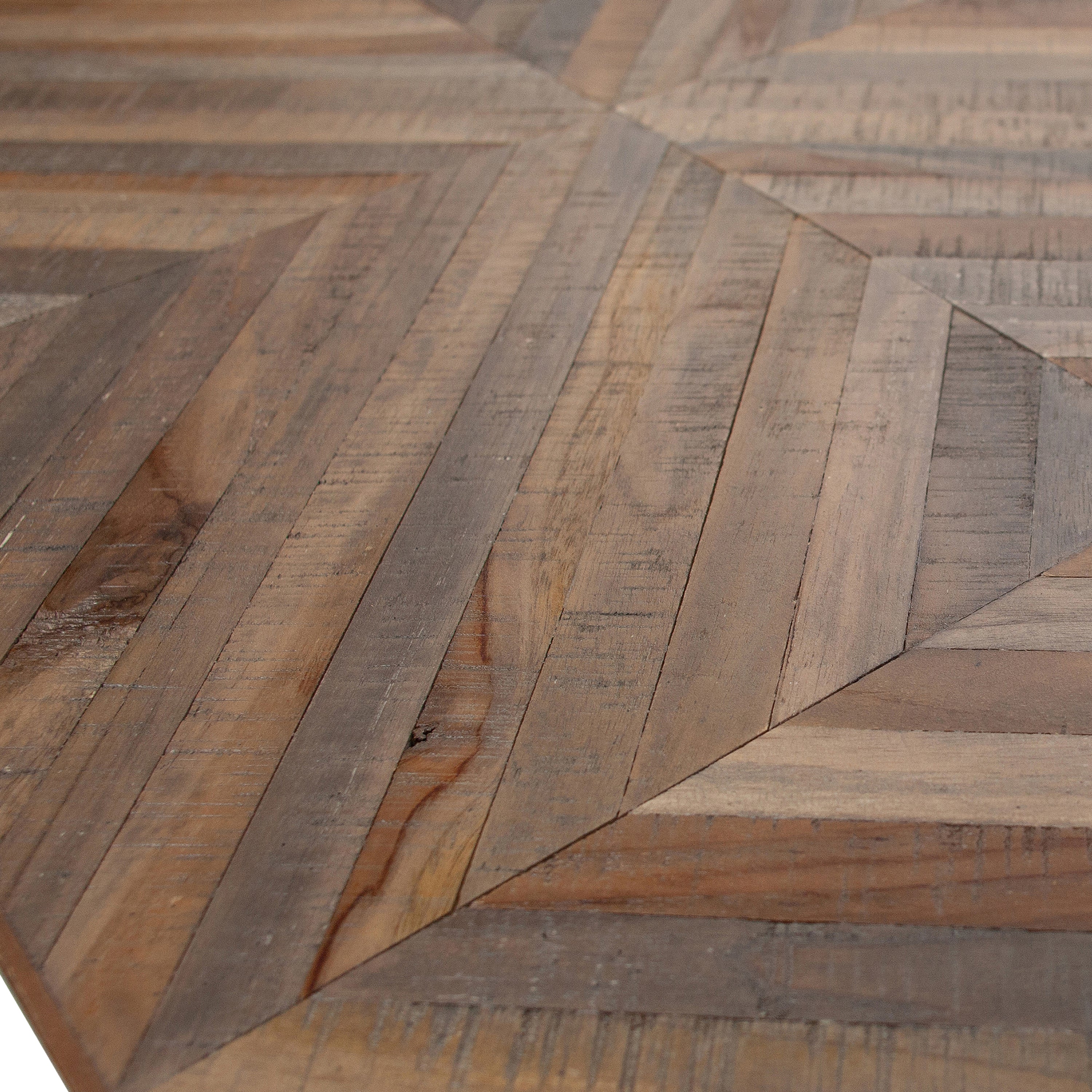 Eettafel Rhombic is van het Nederlandse merk WOOOD. De tafel is gemaakt van 100% gerecycled teakhout. In gerecycled teakhout is er geen FSC-certificaat afgegeven omdat het hout afkomstig is van oude teakhouten stammen. Het topblad is gemaakt van kleine latjes gerecycled teakhout. Deze latjes zijn bevestigd op een MDF - Multiplex plaat.