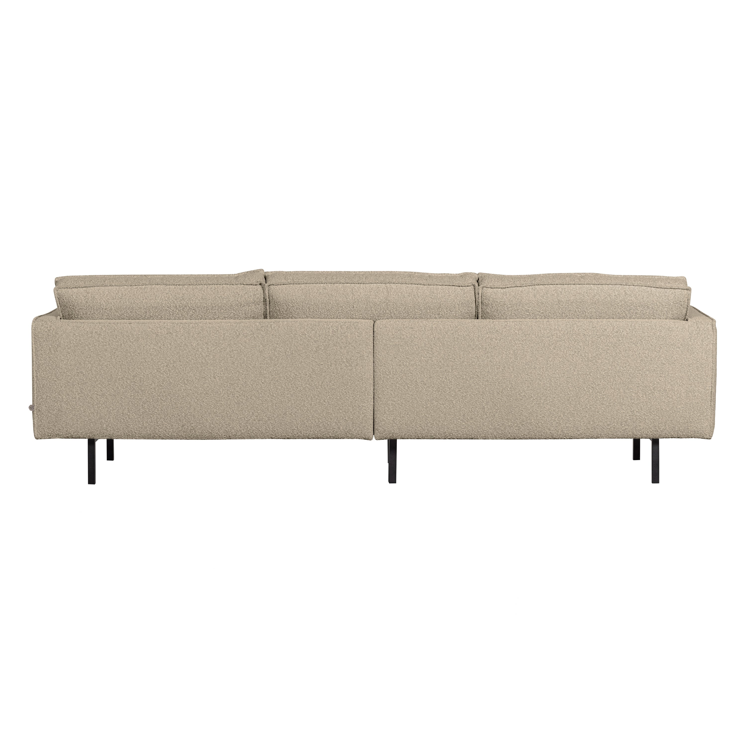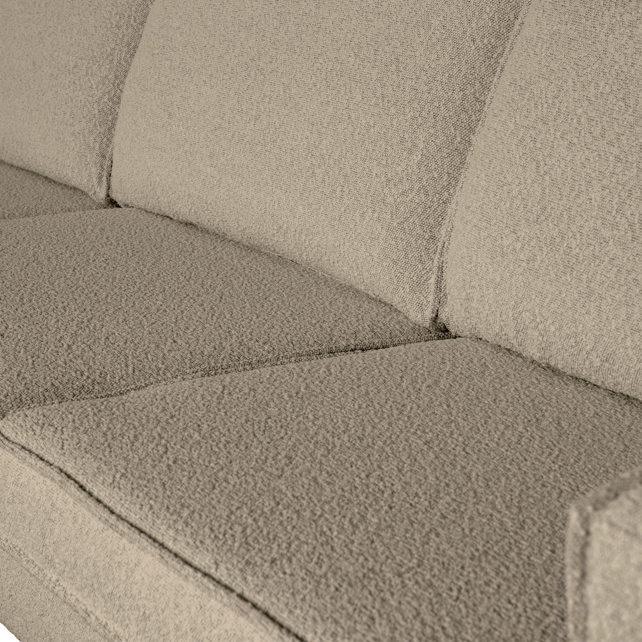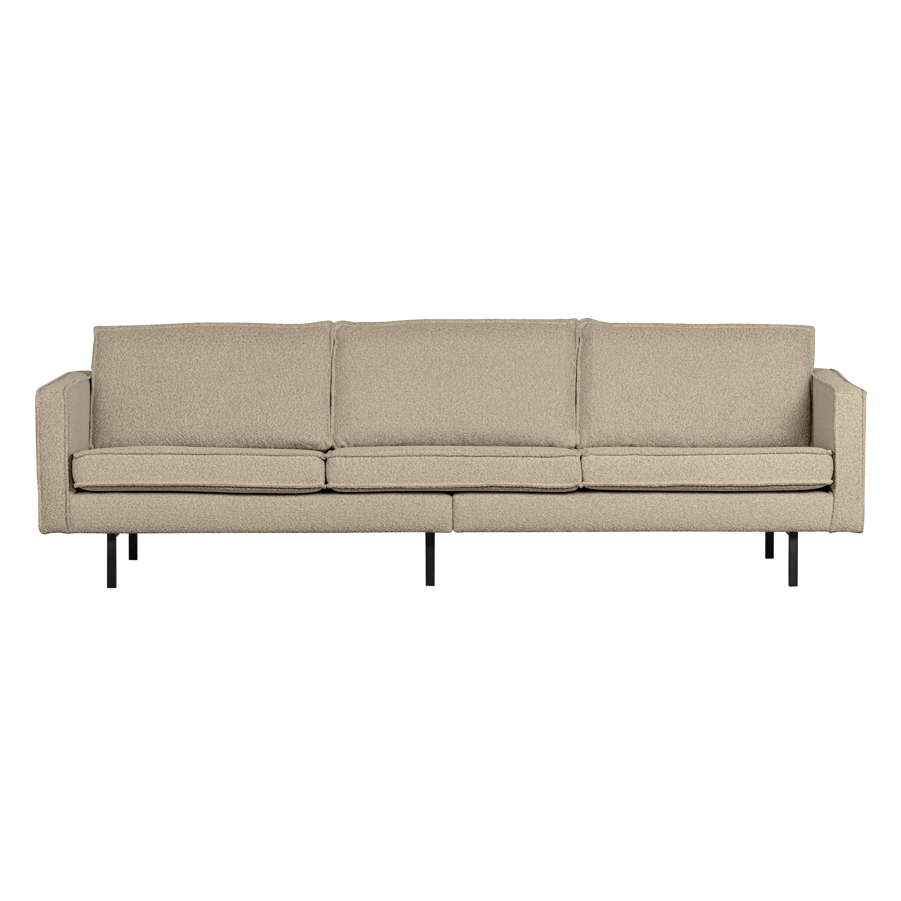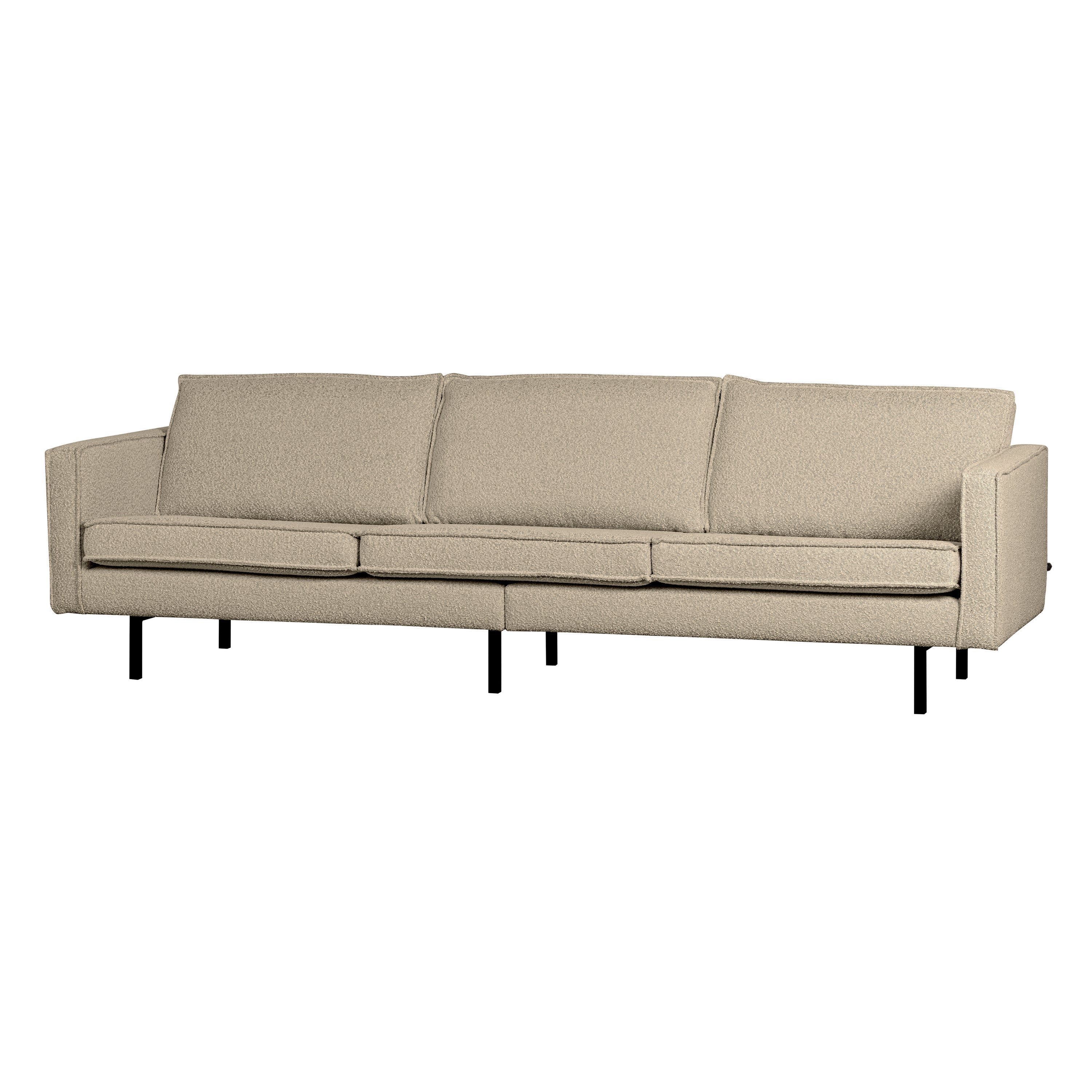 Materiaal De Rodeo bank is opgebouwd uit een combinatie van massief hout, spaanplaat, polyurethaan schuim met een dichtheid van 25 kg/m3 en een zigzag vering. De zitting bevat een polyurethaan schuim met een dichtheid van 30 kg/m3 (T3037). De rugleuning bestaat uit een combinatie van 70% gesneden schuim en 30% siliconen. Deze Rodeo is bekleed met zachte bouclé. Het materiaal van de Colmar bouclé stof speelt in op de laatste trend: zachte materialen. De stof is zacht en heeft een elegante textuur die meteen warmte in huis brengt. Onze Colmar bouclé stof heeft een Martindale van 100.000, dat betekent dat de stof geschikt is voor intensief gebruik. De dichte weeftechniek zorgt voor de sterkte van de stof, dit maakt dat de bouclé niet snel zal slijten of scheuren. Ook heeft elke kleur een hoge kleurvastheid, maar het is aangeraden om direct zonlicht te vermijden om kleurnuances te voorkomen.