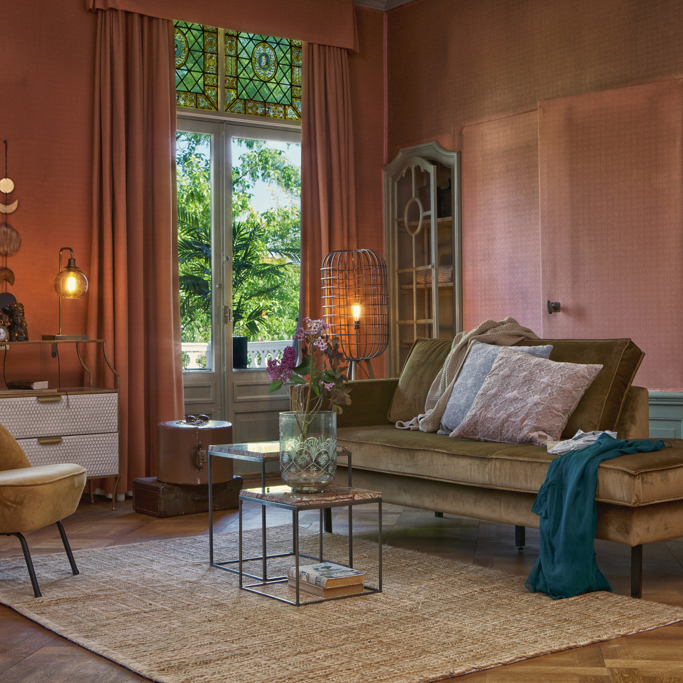 Fluweel is opgebouwd uit rechtopstaande poolpluizen. De stof heeft een mooie glans en kent een donkerdere en lichtere kleur. Dit geeft deze sofa een chique uitstraling. De donkere of lichtere kleurtint van de stof is afhankelijk van de lichtinval en richting waarop de stof staat.