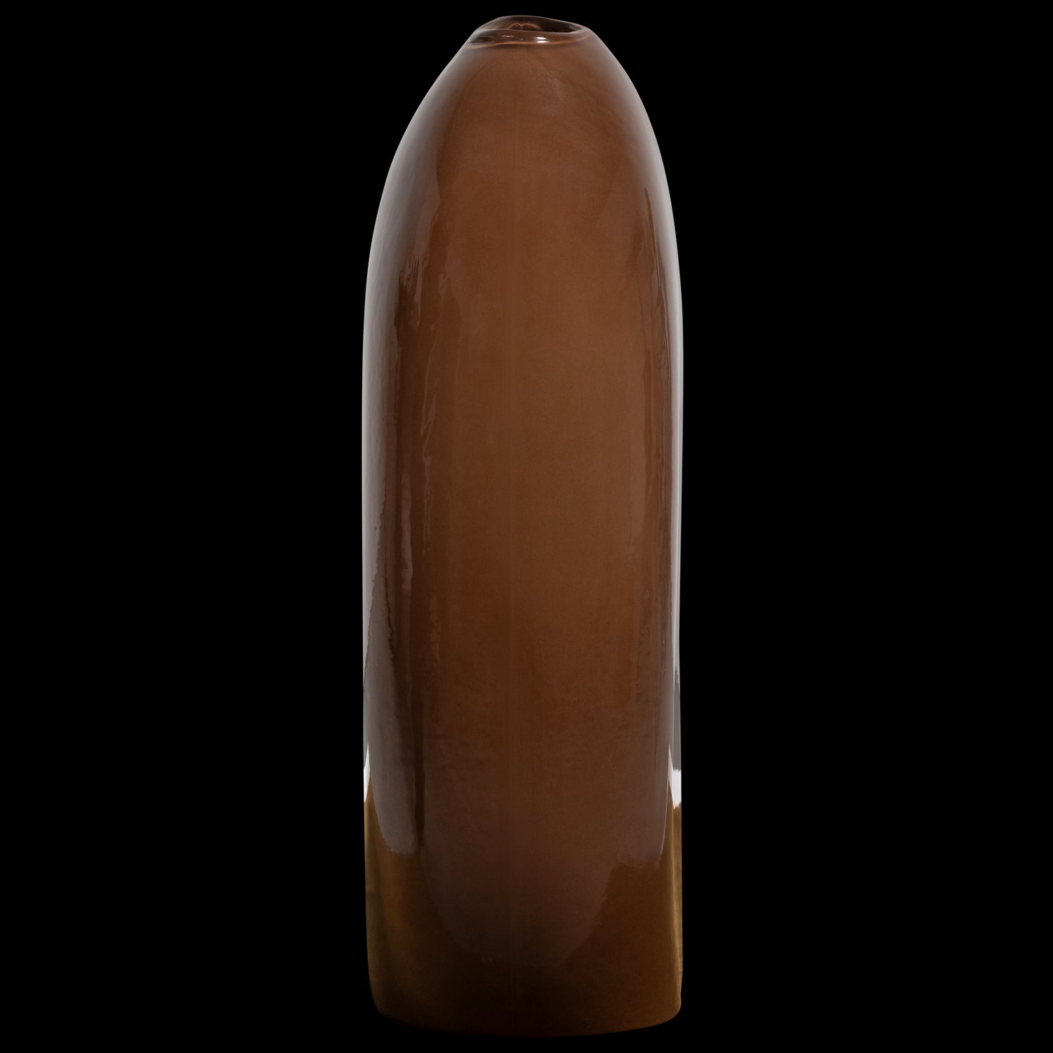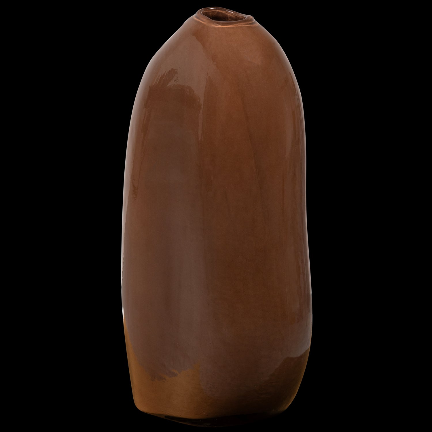 Deze glazen Sahil vaas komt uit de collectie van het Nederlandse merk WOOOD en is een waar pronkstuk voor ieder interieur. De bruin glazen vaas heeft een smalle opening aan de bovenzijde waardoor hij de perfecte vorm heeft voor een kunst- of droogboeket. Maar ook zonder boeket is deze glazen vaas een stijlvolle toevoeging aan elke ruimte.