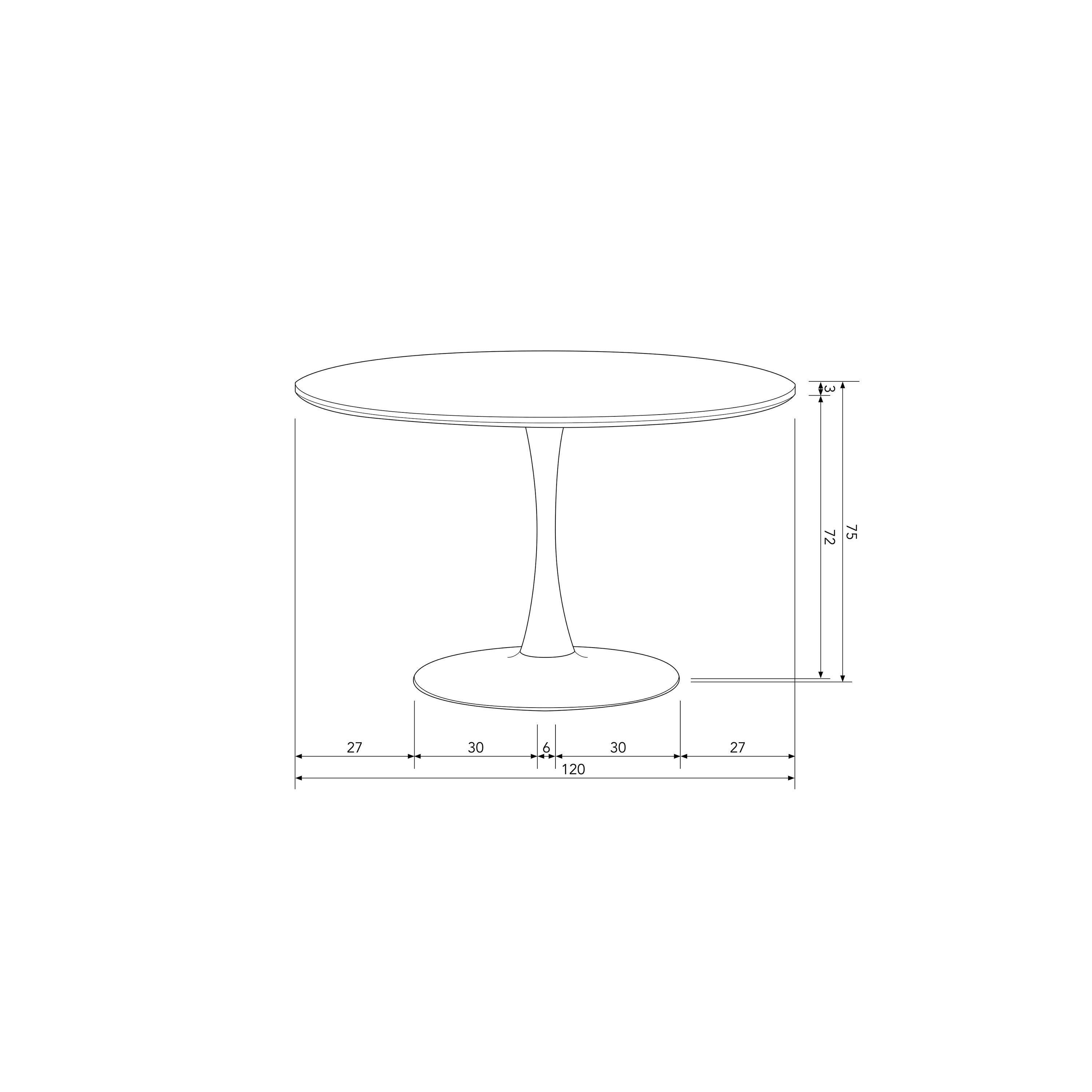 - Subtiele eettafel in ronde vorm- Tafelblad vervaardigd uit MDF- Ruimte voor 4-6 personen- H 75 cm x Ø 120 cmDe Sammy eettafel maakt optimaal gebruik van de beschikbare ruimte, de metalen trompetvoet zorgt voor royale beenruimte. Sammy komt uit de Exclusive collectie van het Nederlandse interieurlabel WOOOD en is afgewerkt in een diepzwarte tint. Een ronde eettafel biedt een podium voor gezellige etentjes en avondenlang natafelen. Wie nodig jij uit?MateriaalMDF wordt gevormd uit geperste houtvezels welke onder hoge druk worden verkleefd met behulp van hars. Hierdoor heeft MDF een zeer glad oppervlakte. Het MDF uit onze collecties worden altijd behandeld met een sterke grondlaag en afgewerkt in een kleur. Hierdoor is het artikel goed beschermd en klaar voor gebruik.Afmetingen- Hoogte: 75 cm- Diameter: 120 cm- Tafelbladdikte: 3 cm- Poothoogte: 72 cm- Pootdiameter: Ø66 cm onderaan / Ø5 cm bovenaanOnderhoudHet voordeel van MDF is dat het niet zal versplinteren of kromtrekken. Wel is onbehandeld MDF door de sterk zuigende werking zeer gevoelig voor vocht en hitte. Hierdoor zal het MDF uitzetten en kan niet meer terugvormen naar zijn oorspronkelijke staat. Behandeld MDF is zeer geschikt voor veelgebruikte meubelen als tafels en kasten.LeveringHet artikel wordt in twee pakketten geleverd. Sammy is eenvoudig te monteren aan de hand van de bijgeleverde montagehandleiding. Plaats voor het beschermen van harde vloeren viltglijders onder de poot.