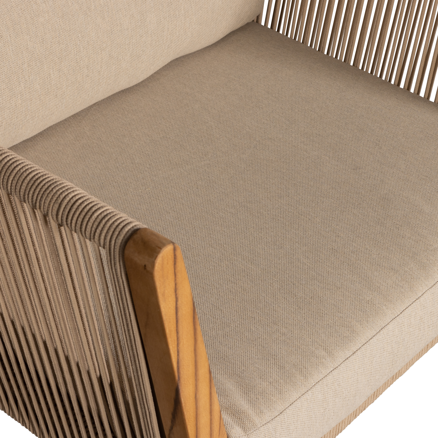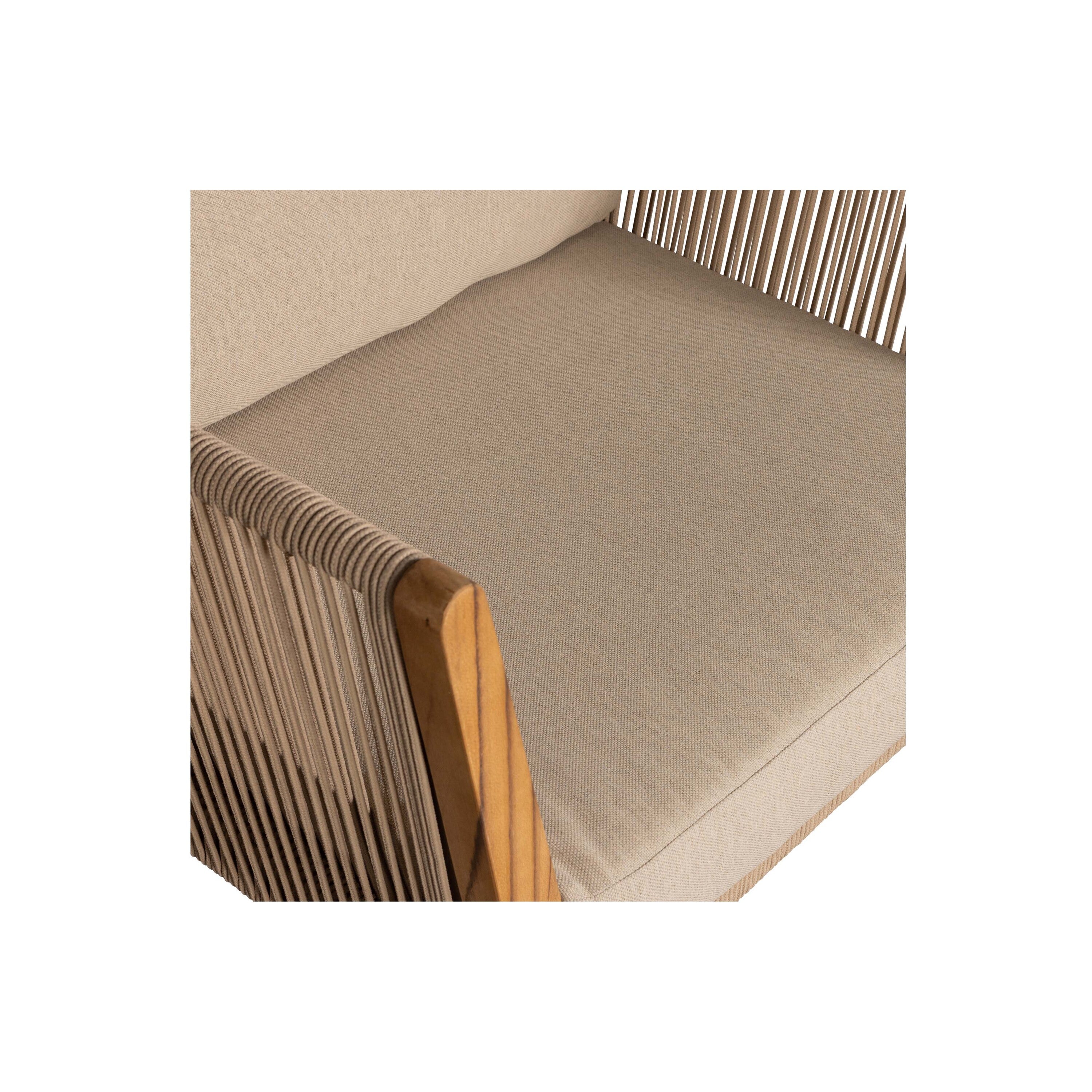 - Vervaardigd uit teakhout met mooie afgewerkte stoffen arm- en rugleuning