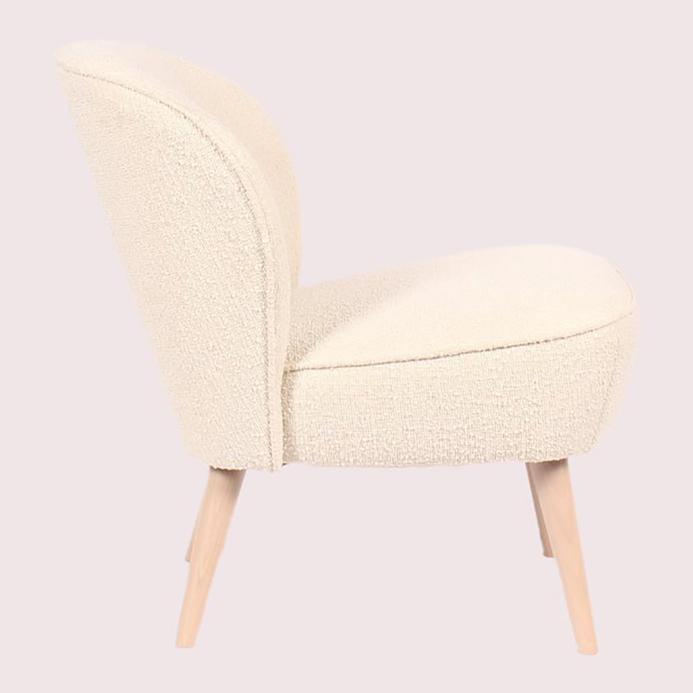Superzachte fauteuil in exclusieve uitvoering Crèmekleurige bouclé stof (100% polyester) Comfortabele fauteuil met berkenhouten poten H 71 x B 59 x D 70 cm Met deze Sara fauteuil haal je zichtbaar én voelbaar comfort in huis. De Sara Bouclé komt uit de collectie van het Nederlandse merk WOOOD en past helemaal in de trends van nu. Deze fauteuil is bekleed met een superzachte bouclé stof (100% polyester) in een warme crème kleur. Met een Martindale van 60.000 is de stof verrassend sterk. De berkenhouten poten hebben een bruine kleur, wat de fauteuil een tijdloze uitstraling geeft. De Sara Bouclé heeft een hoogte van 71 cm, breedte van 59 cm en diepte van 70 cm. De zithoogte is 44 cm, zitbreedte 56 cm en poothoogte is 25 cm. De Sara fauteuil heeft een maximale draagkracht van 90 kg. Onderhoud Gebruik geen agressieve schoonmaakmiddelen. Verwijder vlekken met een zachte katoenen doek met een ronddraaiende beweging, van buiten naar binnen. Plaats bij harde vloeren viltglijders onder de poten. Dit voorkomt beschadigingen aan de vloer.