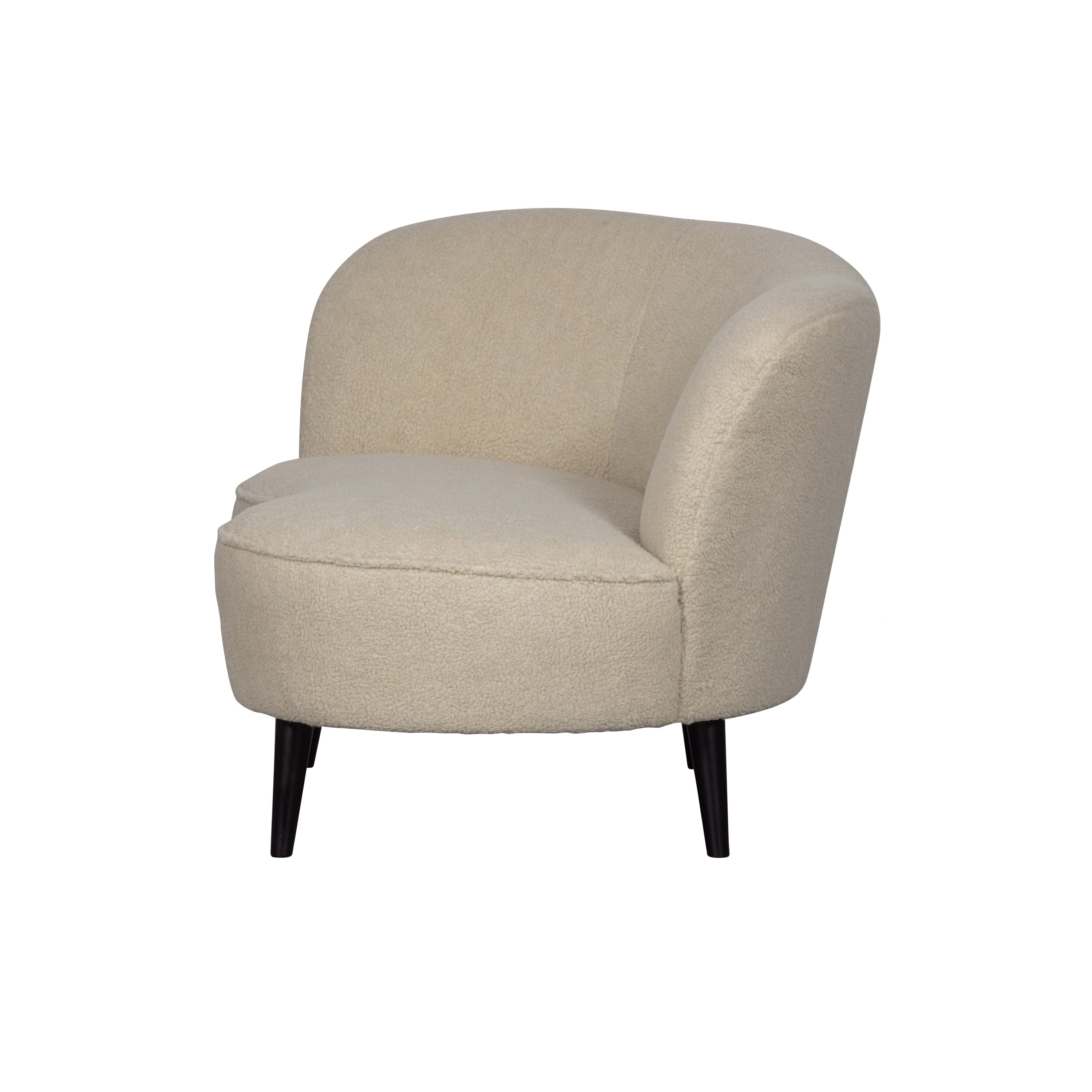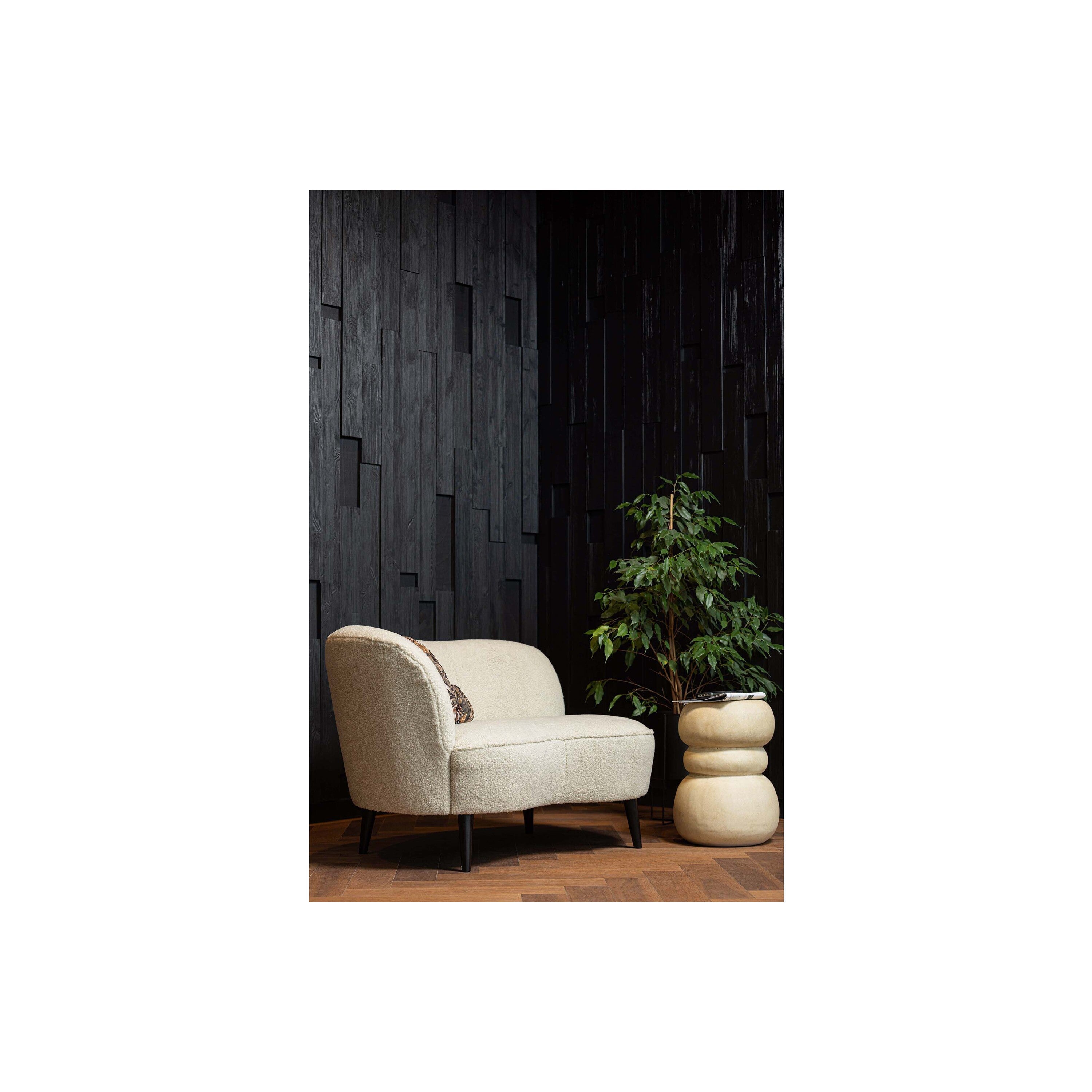 Sara is opgebouwd uit een combinatie van hardhout en MDF. De zitting is gevuld met T3538 schuim en de rugleuning bevat T2130 schuim, wat zorgt voor stevig en ondersteunend zitcomfort. De foam zitting wordt in vorm gehouden door sterke elastieken banden. De poten zijn gemaakt van berkenhout. De bekleding bestaat uit een superzachte teddy-stof, die voelt en eruitziet als een comfortabele schapenvacht. Deze gebreide stof is opgebouwd uit 100% polyester en heeft een Martindale van 40.000. De vezels van deze machinegebreide stof hebben een constante dichtheid over het gehele oppervlakte, wat zorgt voor een verrassend sterke stof. Hoewel de stof sterk is, vraagt deze wel om zorgzaam onderhoud. Afmetingen