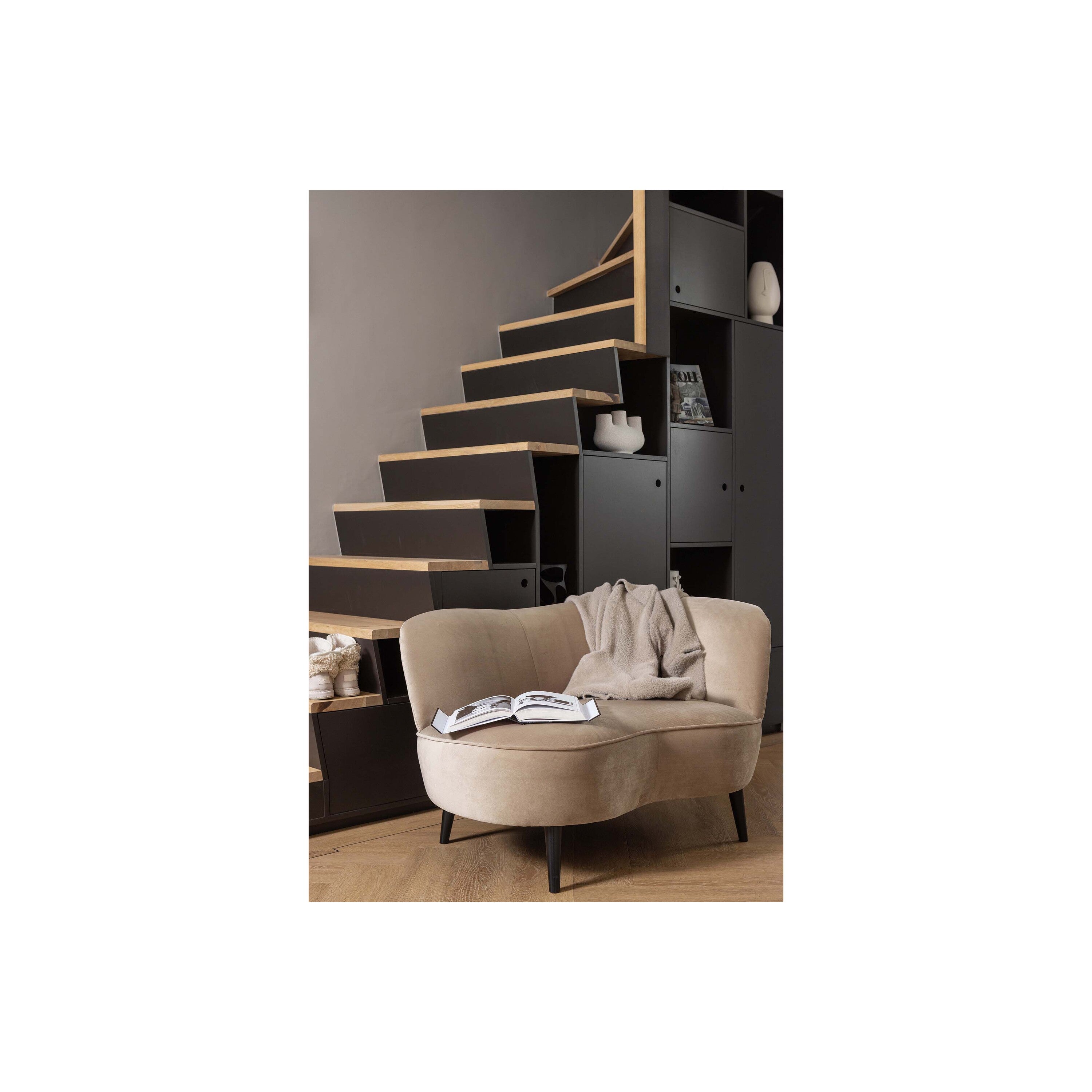 Materiaal Sara is opgebouwd uit een combinatie van FSC-gecertificeerd hardhout en MDF. De zitting is gevuld met een T3538 schuim en de rugleuning bevat een T2130 schuim, wat zorgt voor een stevig, ondersteunend zitcomfort. De foam zitting wordt in vorm gehouden door sterke elastieken banden. De poten zijn gemaakt van berkenhout. Sara is bekleed met een lichtglanzende velvet. Onze Jarra fluwelen stof heeft een luxe uitstraling. De stof voelt fijn aan en heeft een mooie lichte glans. De Jarra velvet bestaat uit 100% polyester en heeft een volle en zware kwaliteit. Het materiaal is daarom geschikt voor intensief gebruik (Martindale 100.000). Naast het stijlvolle design blijft de velvet stof lang mooi. Onze Jarra stof zal niet snel pillen en is kleurvast. De stof is, tot verrassing van velen, een zeer gemakkelijke stof om te onderhouden. Afmetingen - Hoogte: 71 cm - Breedte: 112 cm - Diepte: 81 cm - Zithoogte: 42 cm - Zitbreedte: 86 cm - Zitdiepte: 50 cm - Rugleuning hoogte: 29 cm - Poothoogte: 17 cm - Pootomtrek: Ø 3 cm - Gewicht: 22 kg - Maximale draagkracht: 120 kg Onderhoud Kleine vlekken kunnen gemakkelijk deppend met een absorberende doek worden verwijderd. Grotere vlekken kunnen met een mild schoonmaakmiddel en een microvezel doekje prima verwijderd worden. Gebruik eventueel een föhn om de vlek versneld te drogen. Houd daarbij wel genoeg afstand zodat de stof niet verbrandt. Daarna kan de stof geborsteld worden met een fluweel borstel. Deze borstel is erg goed voor wekelijks onderhoud. Impregneren wordt voor onze velvets ten zeerste afgeraden. Levering Het artikel wordt in één pakket geleverd. De poten zijn eenvoudig te monteren aan de hand van de bijgeleverde montage-instructie. Plaats voor het beschermen van harde vloeren viltglijders aan de onderzijde van de poten. De Sara-collectie is enkel geschikt voor binnenshuis gebruik.