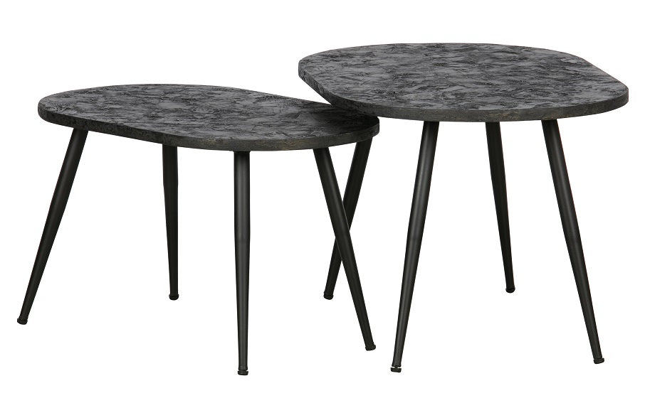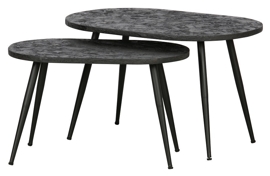 Set van twee elegante bijzettafels Triplex bovenblad met antique goud metalen coating en zwart ijzeren onderstel. Ook geschikt voor buitengebruik H 42 x B 70 x D 48 cm én H 37 x B 60 x D 39 cm Set van 2 bijzettafels Oval komen uit de collectie van het Nederlandse merk WOOOD. De tafels hebben een gerecycled triplex houten tafelblad met een antique gouden metalen coating. De onderstellen zijn gemaakt van ijzer met een antique gouden afwerking. Handig dat door deze afwerking de stoere bijzettafels ook buiten te gebruiken zijn! De grote bijzettafel Oval heeft de afmetingen H 42 x B 70 x D 48 cm met dikte van het tafelblad van 2 cm. De poothoogte is 40 cm. De kleine bijzettafel heeft de afmetingen H 37 x B 60 x D 39 cm met een dikte van het tafelblad van 2 cm en een poothoogte van 35 cm. In gerecycled triplex is er geen FSC-certificaat afgegeven omdat het hout afkomstig is van oud resthout. Het maximale draaggewicht van de bijzettafels per stuk is 20 kg. Dit artikel wordt geleverd als bouwpakket met een duidelijke montage-instructie. Plaats bij harde vloeren viltglijders onder de poten. Dit voorkomt beschadigingen aan de vloer.