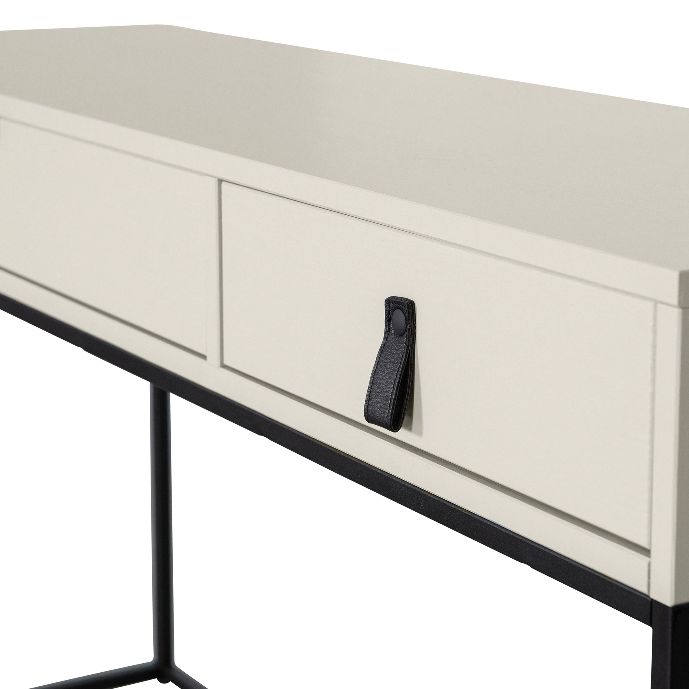 - Leuk detail: het leren handvat aan de kleine lade