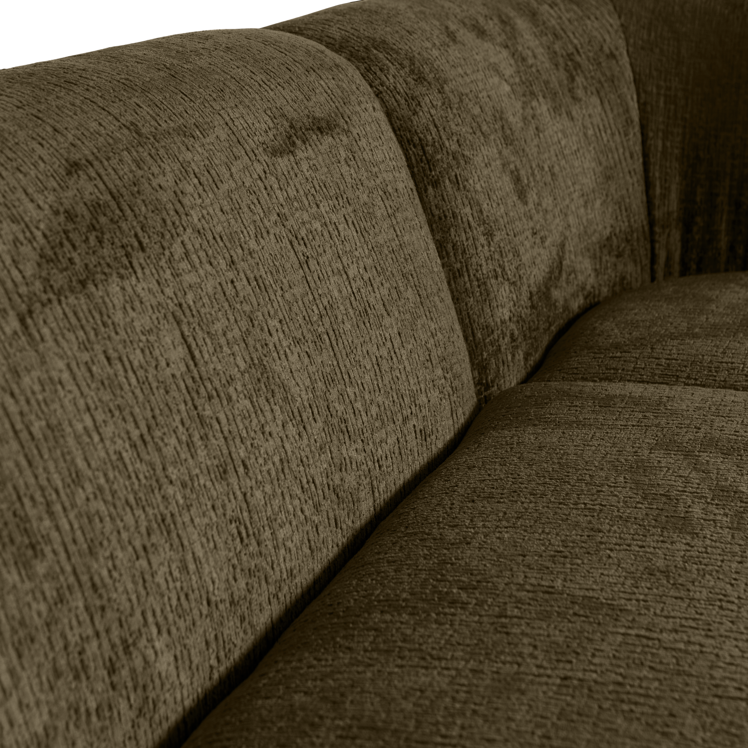Deze uitvoering is bekleed met een grove velvet met opvallende structuur. De Ferra-stof combineert een rijke glans met een zachte touch dankzij de chenille garens. De jacquard weeftechniek geeft de stof extra volume, terwijl het 100% polyester materiaal sterk en onderhoudsvriendelijk is. Met een Martindale van 85.000 blijft de velvet lang mooi – bestand tegen krassen, verkleuring én pillen. Een luxelook die tegen een stootje kan. Afmetingen