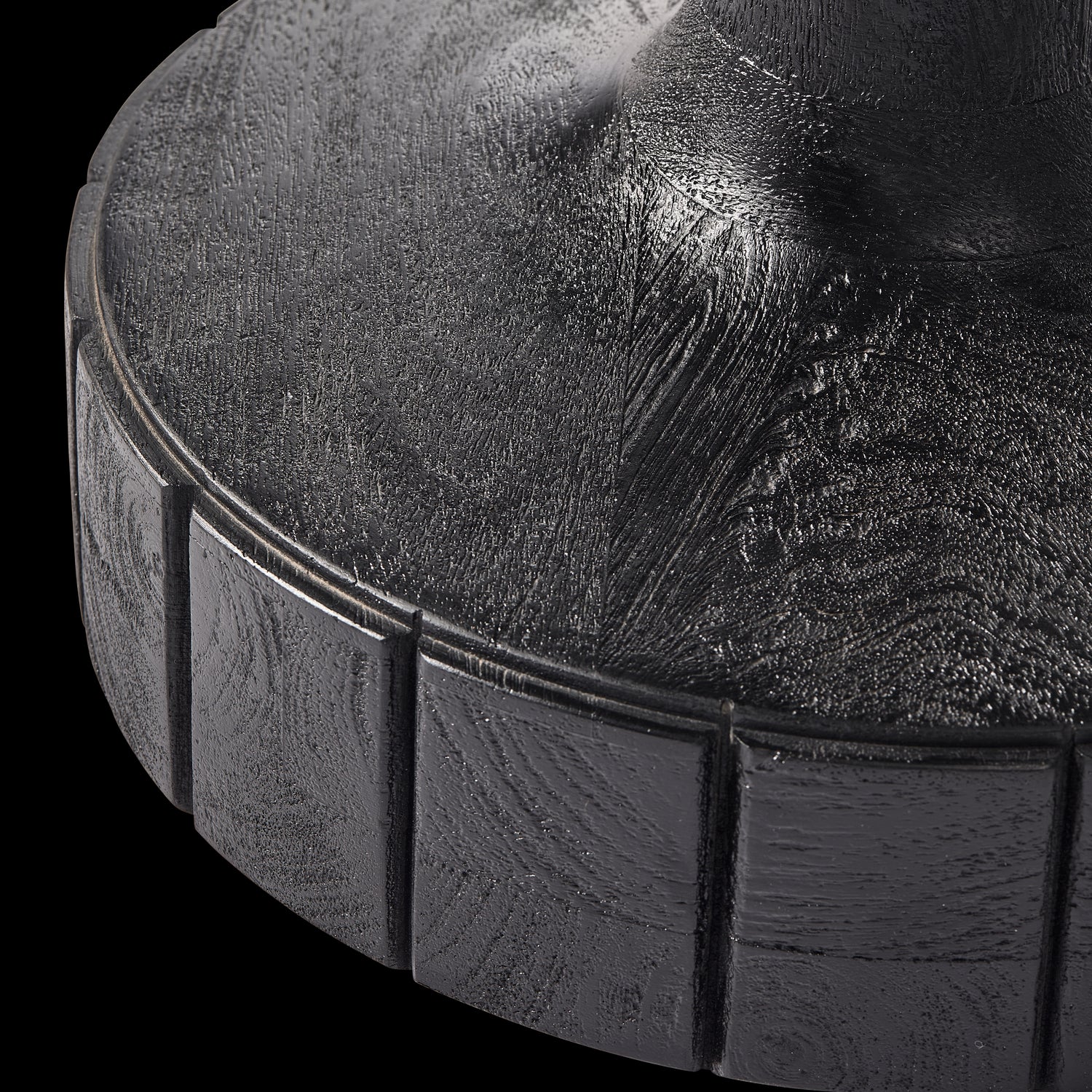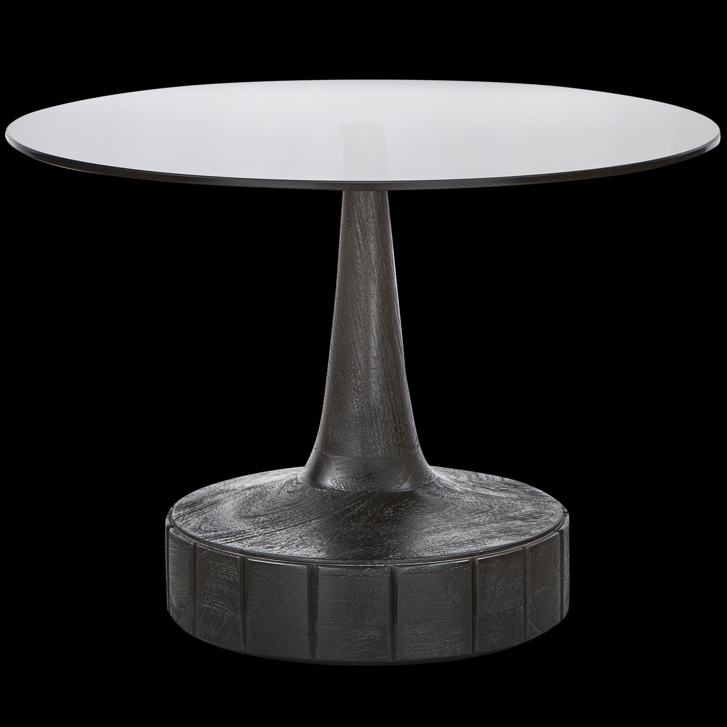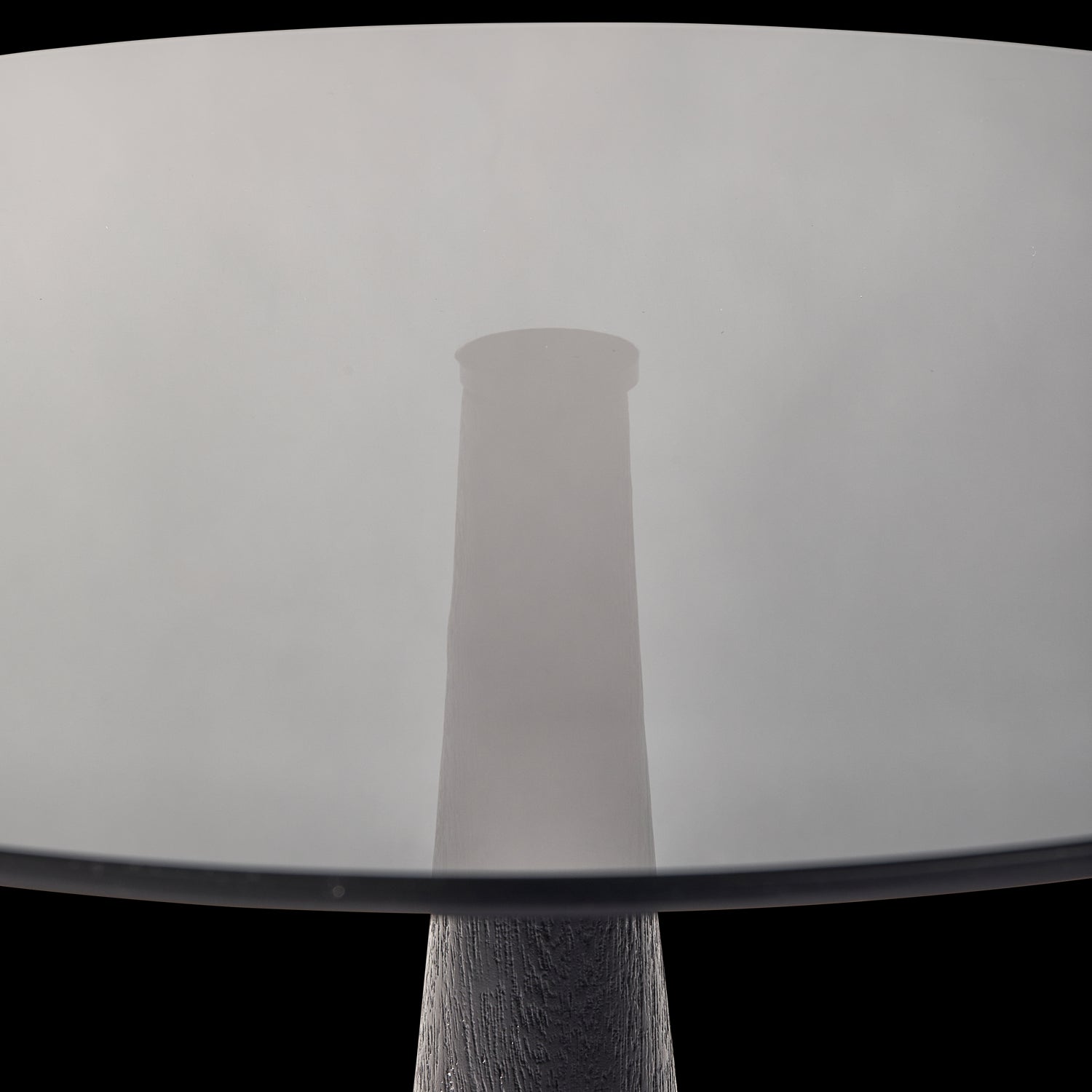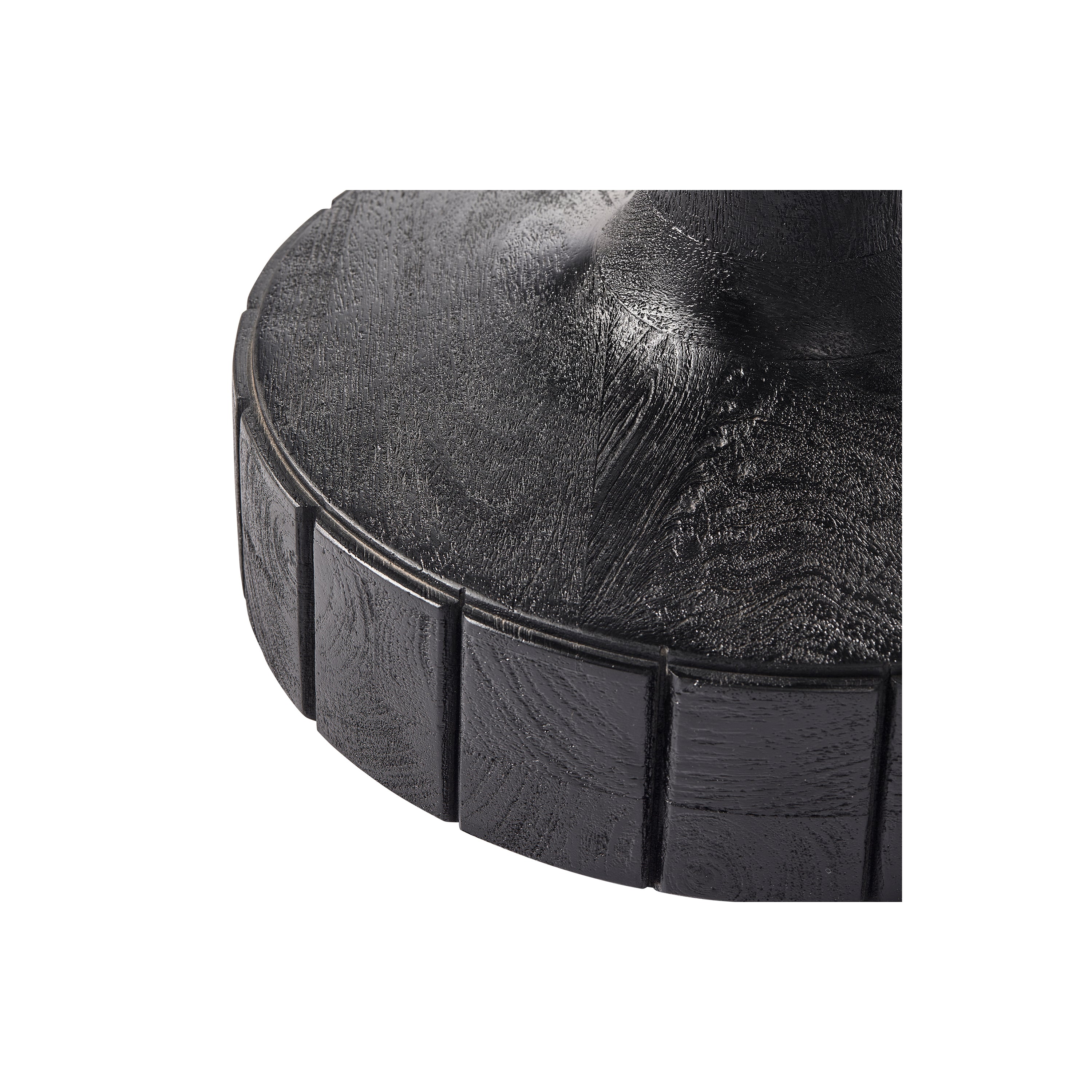 De Soya salontafel is een stijlvol exemplaar met een zwart onderstel. De bijzettafel komt uit de collectie van het Nederlandse interieurmerk WOOOD. Het opvallende houtsnijwerk in de poot zorgt voor een opvallende uitstraling. Het ronde, glazen tafelblad zorgt voor een luxe touch.
