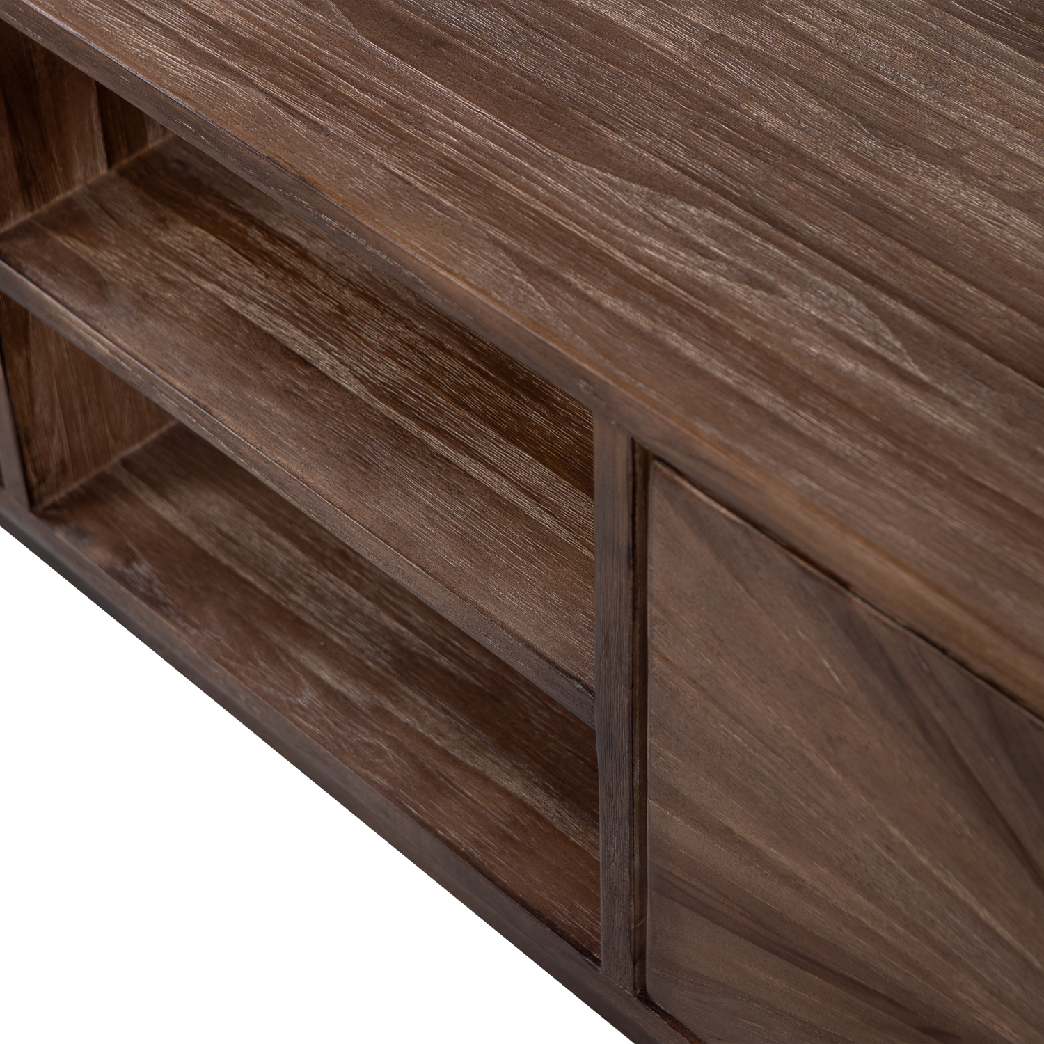 Op zoek naar een tv-meubel dat zowel stijlvol als praktisch is? Kies dan voor Sun! Het Sun tv-meubel komt uit de collectie van het Nederlandse interieurmerk WOOOD en is gemaakt van gerecycled teakhout. De verfijnde details op de deuren geven het meubel een unieke, ambachtelijke uitstraling. Achter de vier deuren schuilt ruime opbergruimte voor apparatuur of andere accessoires, terwijl het open vak perfect is om jouw favoriete pronkstukken te presenteren.