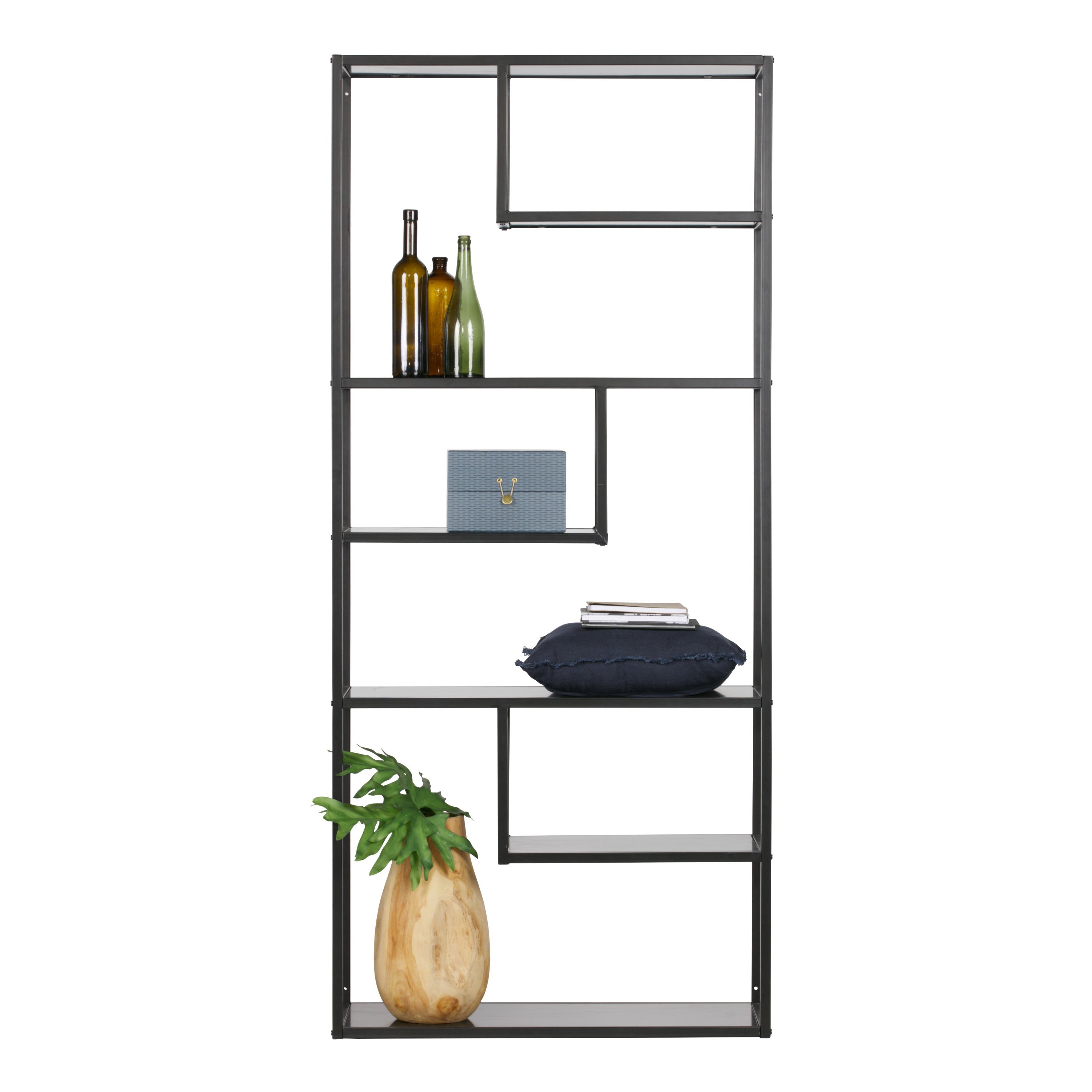 - Met een stalen frame en zwart gepoedercoate metalen planken