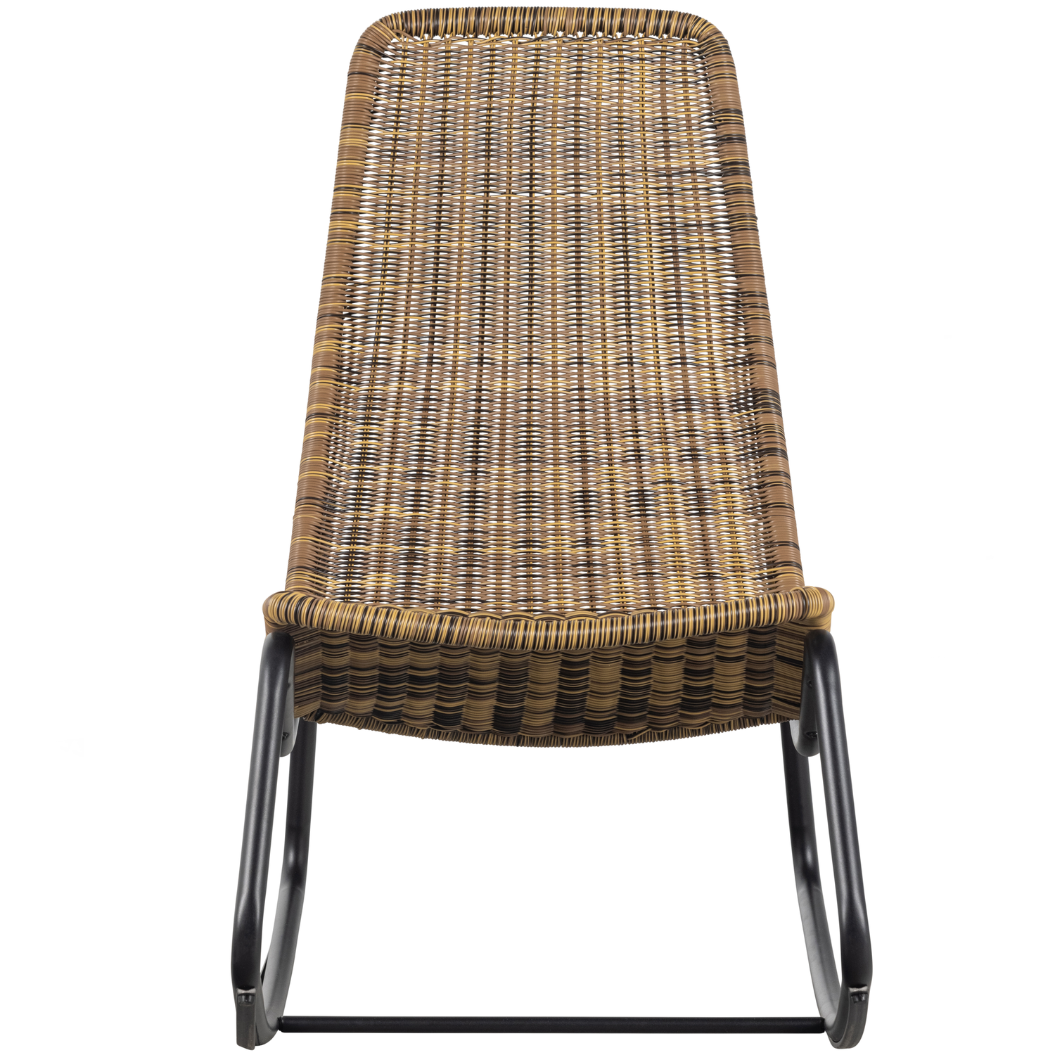 De Tom schommelstoel is een relaxte stoel voor binnen en buiten. Tom komt uit de collectie van het Nederlandse merk WOOOD en is gemaakt van gecoat rattan. Deze coating maakt de Tom schommelstoel geschikt voor alle weersomstandigheden. Het zwart metalen frame heeft een matte uitstraling en een verstevigende tussenlat.