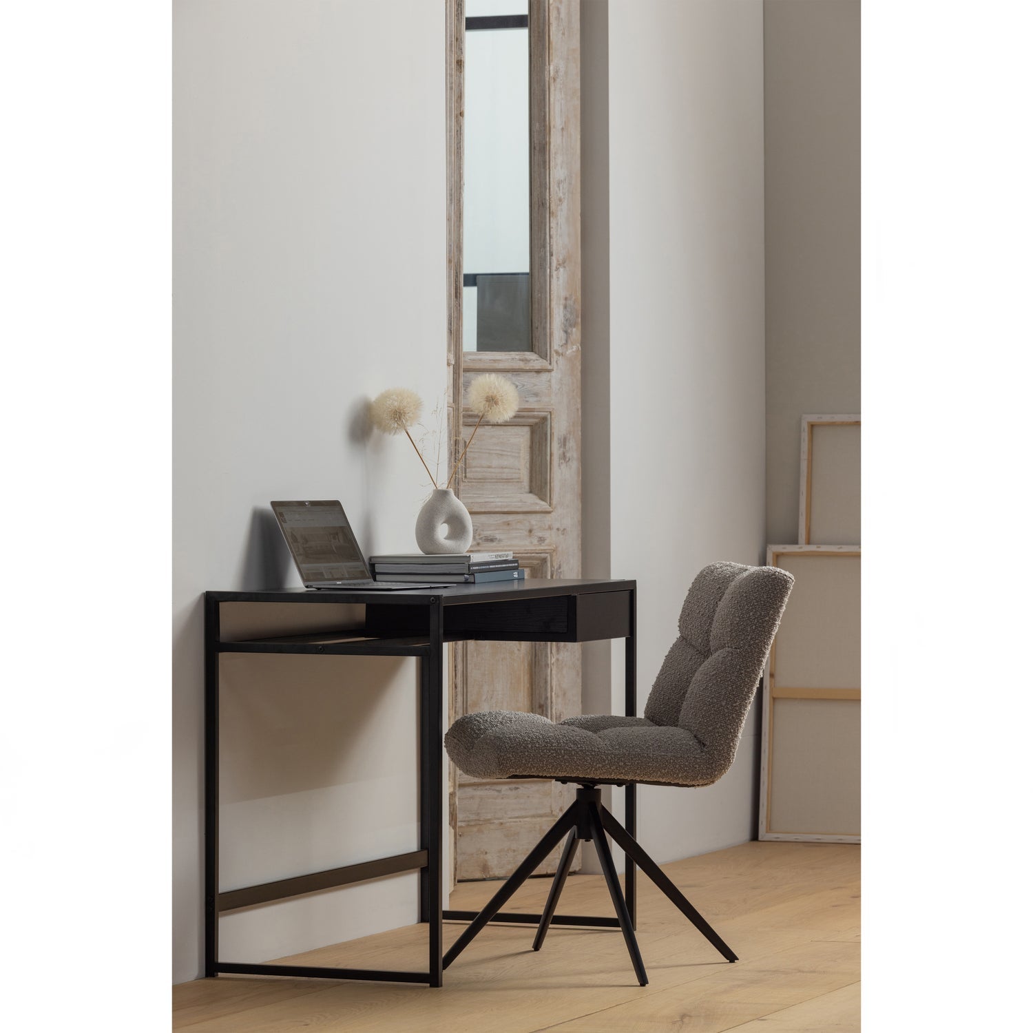 Vinny is bekleed met een superzachte bouclé stof, genaamd Cres (100% polyester) en is daardoor zeer eenvoudig in onderhoud. De stoel rust op een zwart metalen onderstel met vier poten en een soepel draaisysteem. De vulling van polyurethaanschuim biedt hoog zitcomfort – perfect voor eindeloos tafelen.
