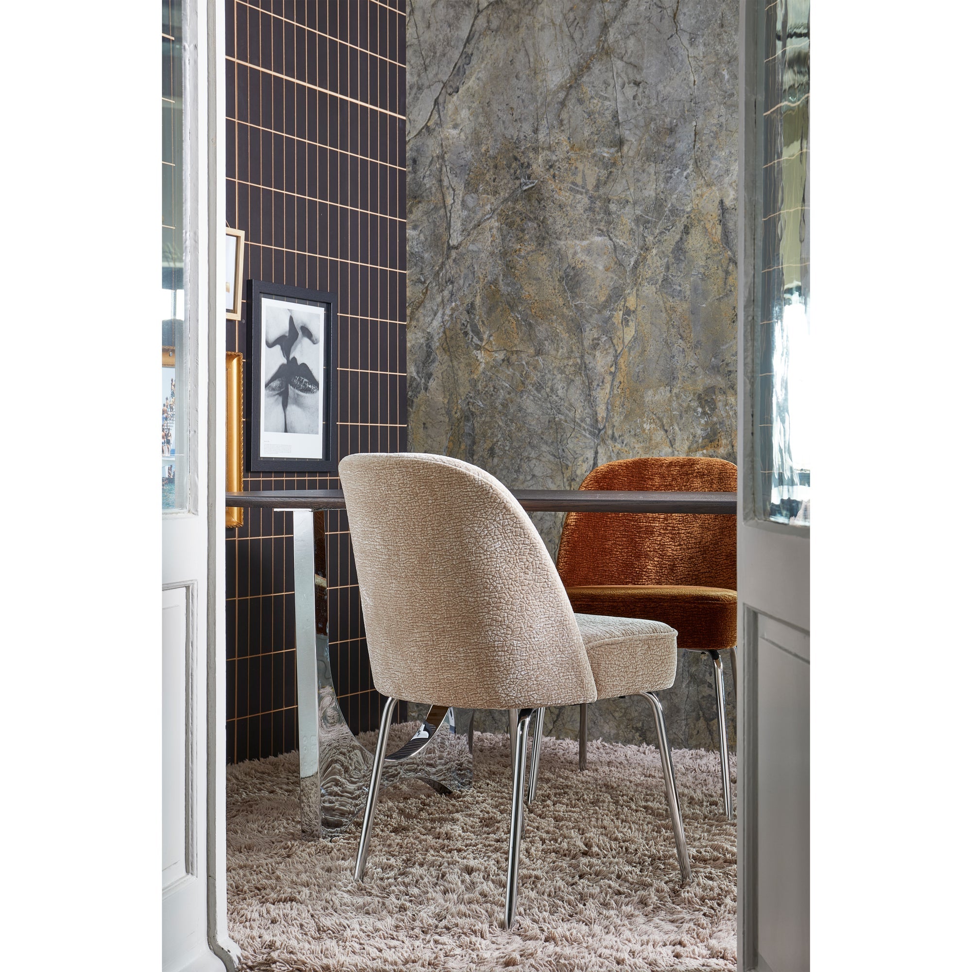 De Vogue eetkamerstoel komt uit de collectie van het Nederlandse merk WOOOD. De eetkamerstoel zit super comfortabel en de zachte stof en vriendelijke ronde vormen maken deze chique eetkamerstoel tot een sieraad voor het interieur van nu. Door het slanke ontwerp past deze stoel goed in meerdere woonstijlen.