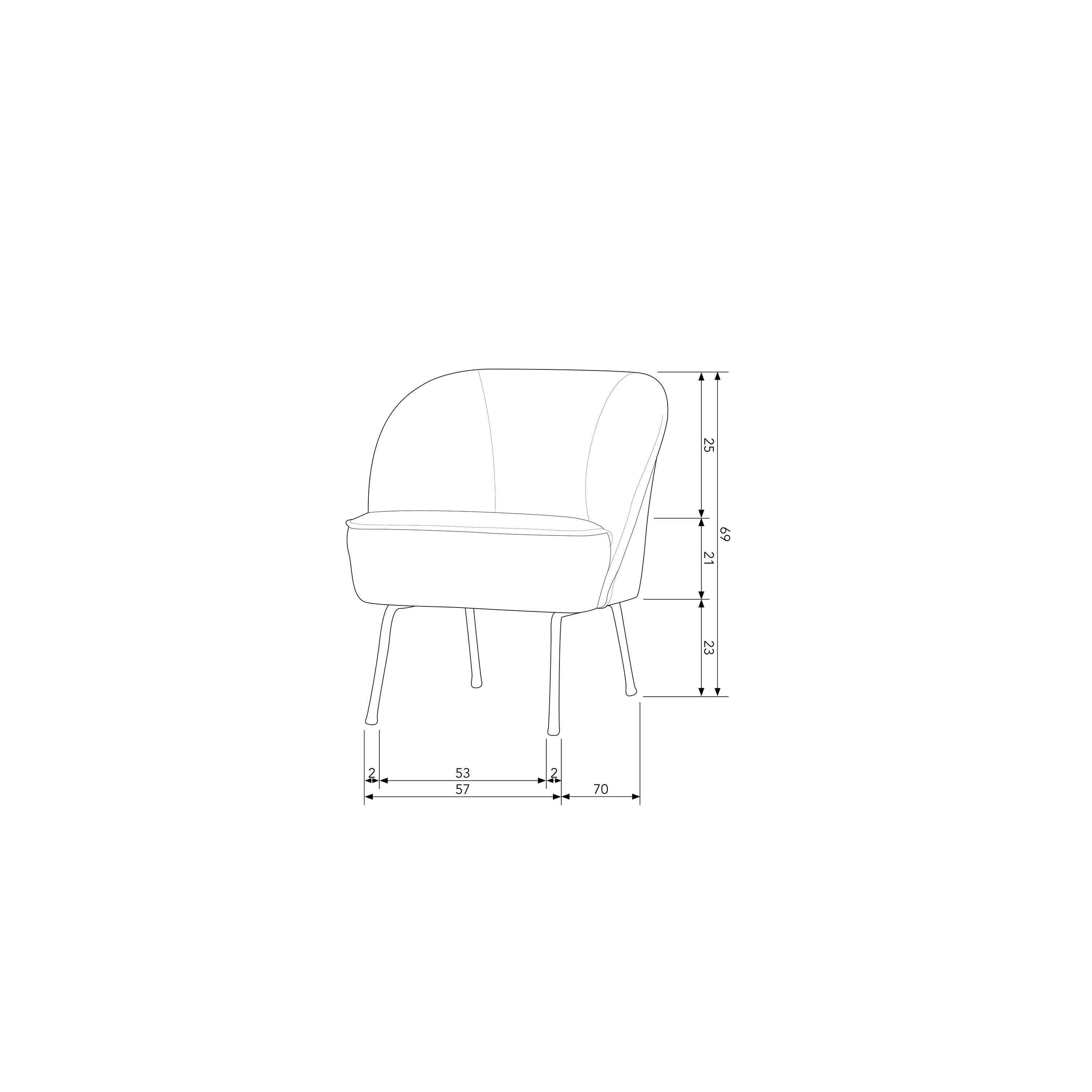 Wát een heerlijke stoel en ook nog eens lekker ruim met zijn afmetingen van H 69 x B 57 x D 70 cm. De strakke bekleding steekt mooi af tegen de zwart gelakte metalen poten en de zitting zit bovendien super comfortabel.