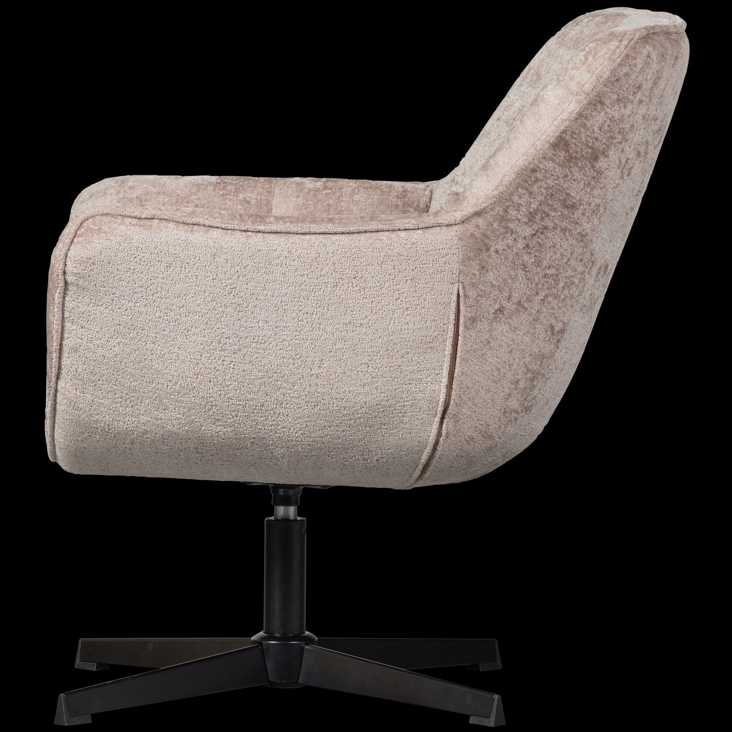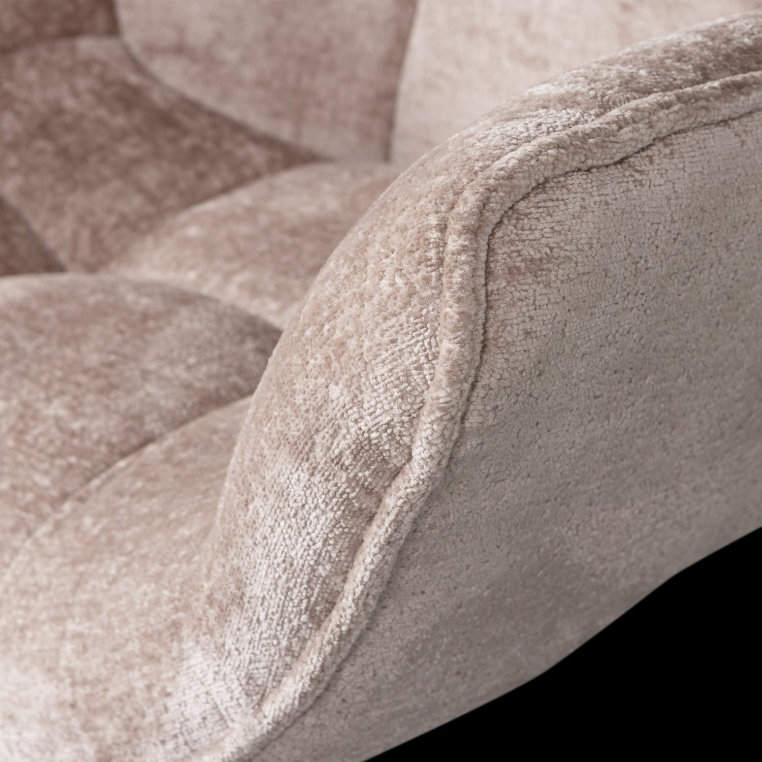 De Wibo draaifauteuil is bekleed met een chenille stof. Onze Angel chenille heeft een opvallende structuur, wat zorgt voor een luxe uitstraling en bijzondere glans. De stof is gemaakt van 100% polyester, wat het onderhoud zeer gemakkelijk maakt. De Angel voelt zacht aan en straalt warmte uit. De Martindale van deze chenille stof is niet getest.