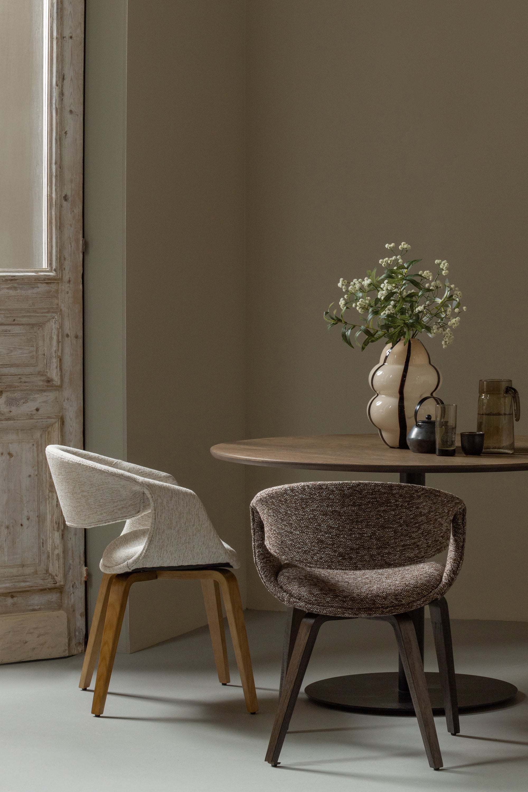 De Yossi eetkamerstoel komt uit de collectie van het Nederlandse merk WOOOD en heeft een stevig houten onderstel en een comfortabele zit. De stoel is in verschillende uitvoeringen verkrijgbaar, zodat je de perfecte match voor jouw interieur kunt vinden. De Yossi is bekleed met een geweven stof van 100% polyester, wat zorgt voor een stijlvolle uitstraling. Een bijzonder detail is de afwerking rondom de armleuning. Deze elegante en comfortabele eetkamerstoel is perfect om urenlang te tafelen.