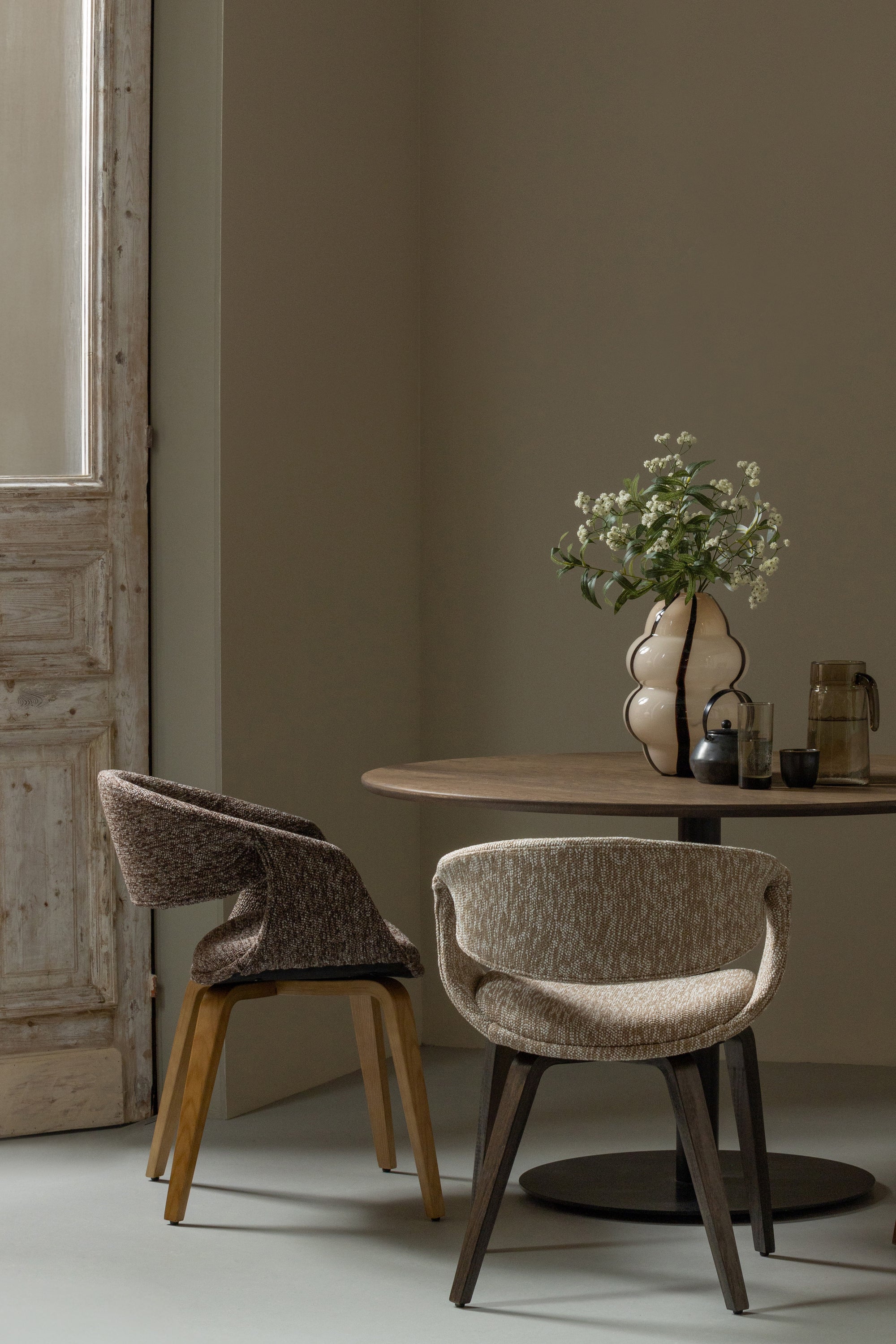 De Yossi eetkamerstoel komt uit de collectie van het Nederlandse merk WOOOD en heeft een stevig houten onderstel en een comfortabele zit. De stoel is in verschillende uitvoeringen verkrijgbaar, zodat je de perfecte match voor jouw interieur kunt vinden. De Yossi is bekleed met een geweven stof van 100% polyester, wat zorgt voor een stijlvolle uitstraling. Een bijzonder detail is de afwerking rondom de armleuning. Deze elegante en comfortabele eetkamerstoel is perfect om urenlang te tafelen.