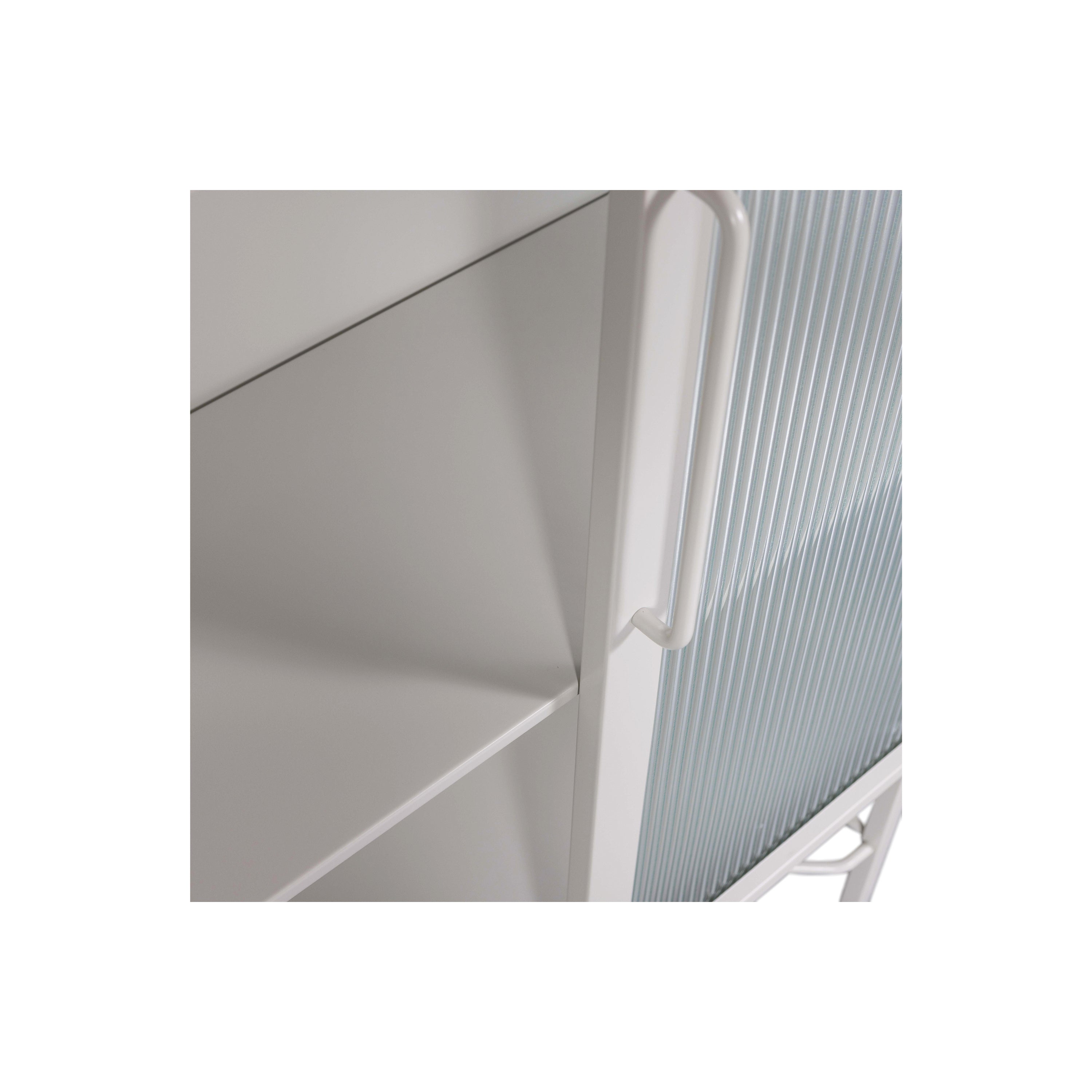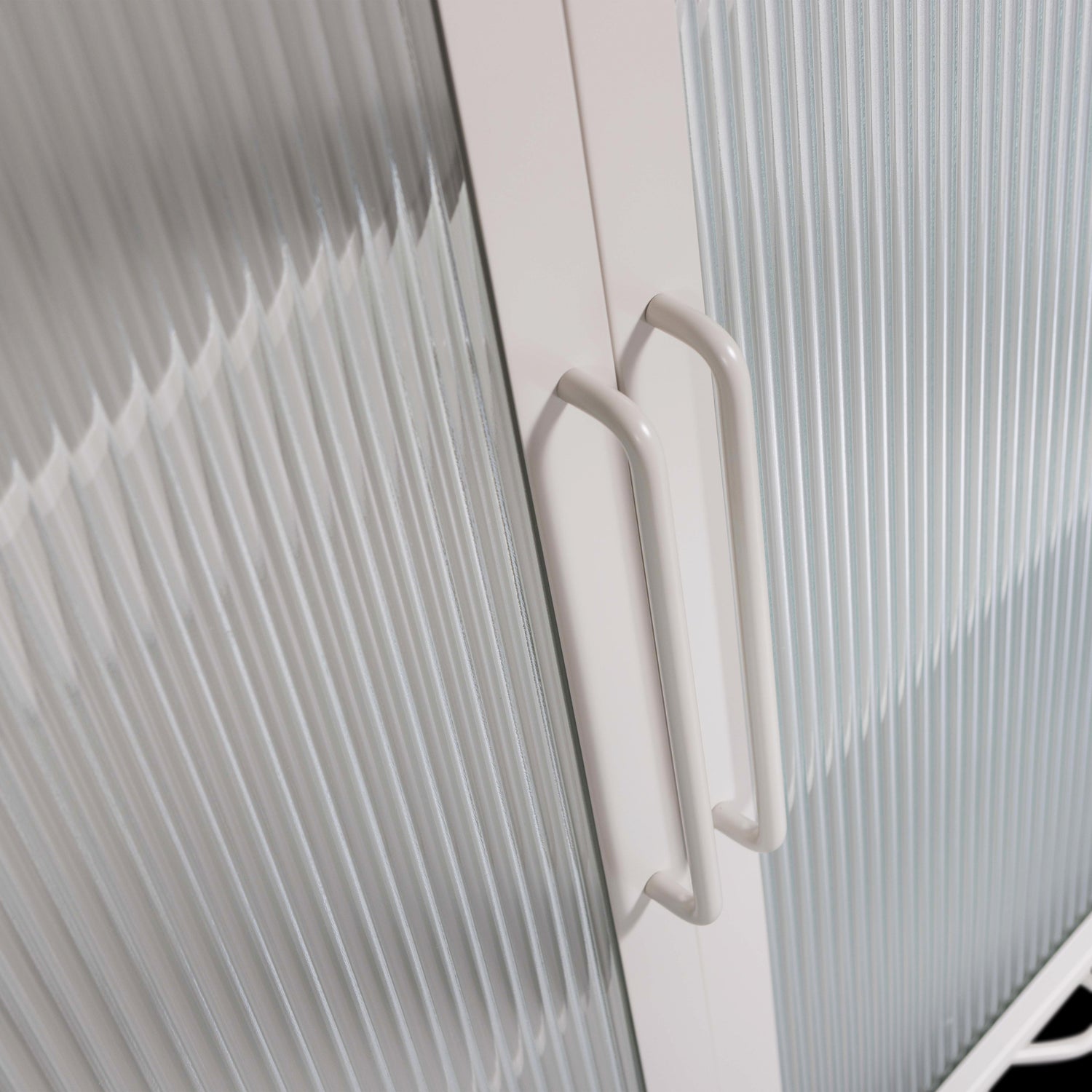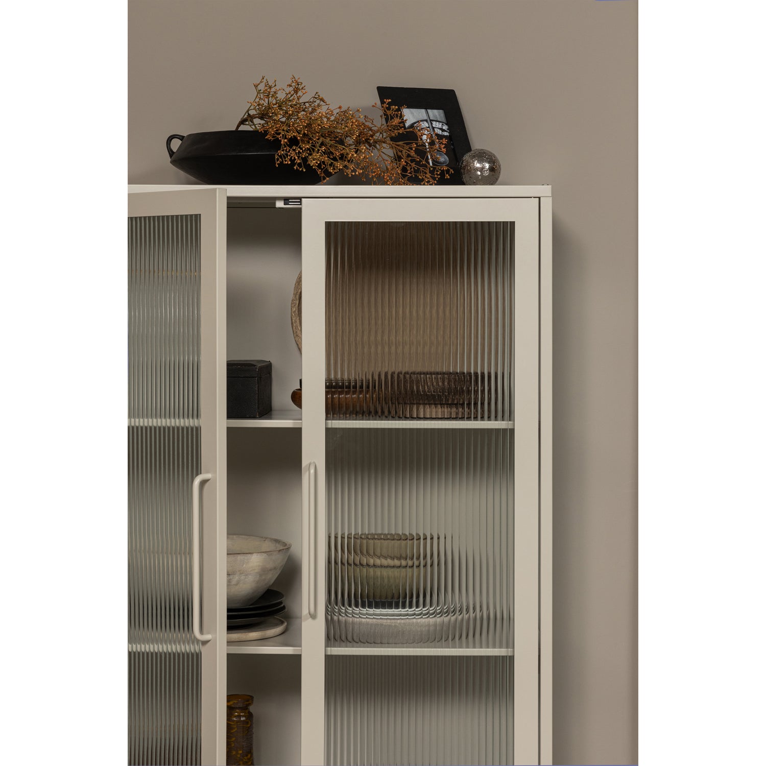 Vitrinekast Zion is een Nederlands ontwerp uit de collectie van WOOOD. Kast Zion is gemaakt van staal dat is afgewerkt met een matte poedercoating. De deuren van deze kast zijn uitgevoerd met safety glass met een ribstructuur voor een retro uitstraling.