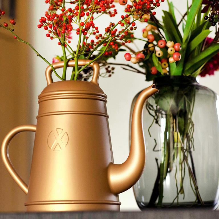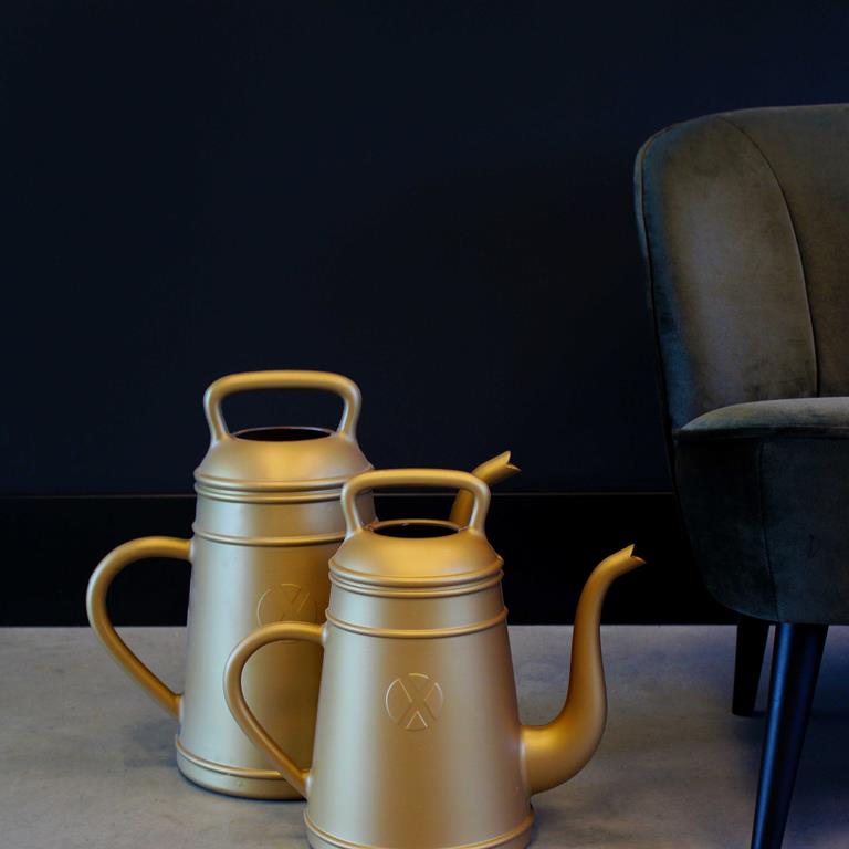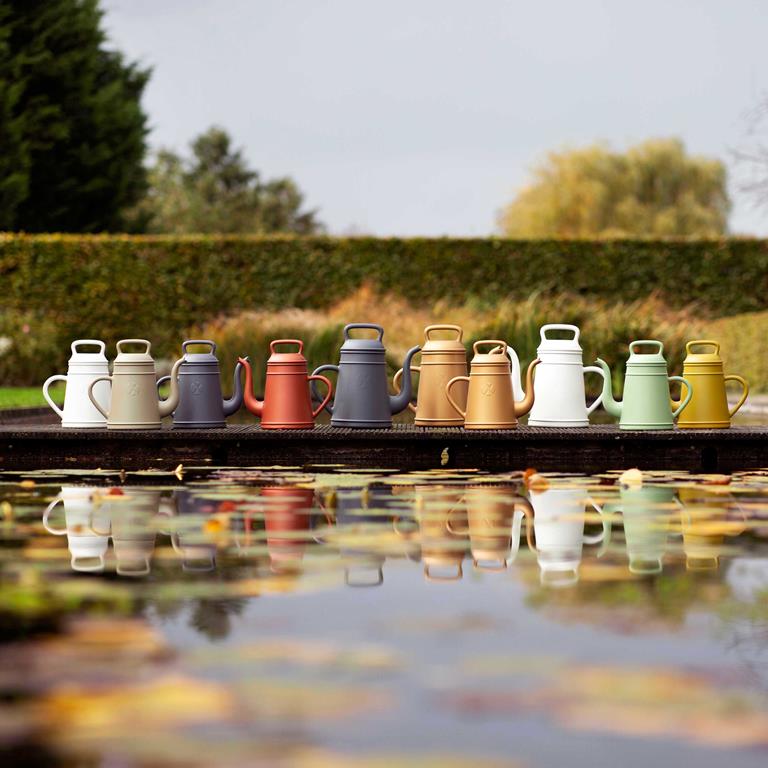 Lungo; de naam van deze giga gieter is afgeleid van "cafe lungo"; een espresso met veel water. Een hilarisch beeld als de tuinman de planten water geeft met deze veel te grote koffiepot. Op de schenktuit van de Lungo gieter past een standaard sproeikop (deze wordt niet meegeleverd).