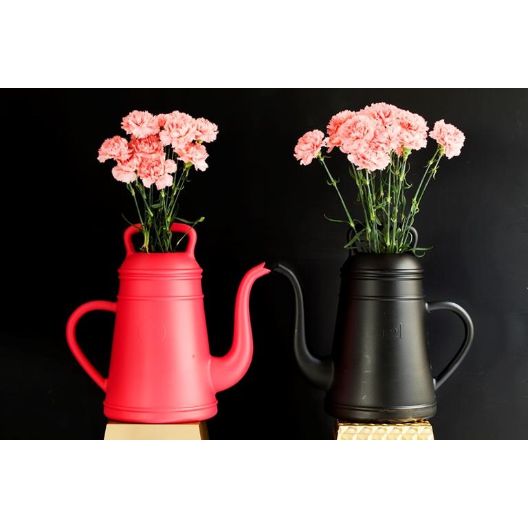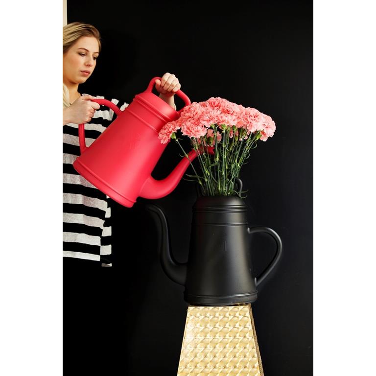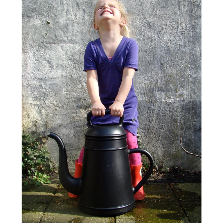 Lungo; de naam van deze giga gieter is afgeleid van "cafe lungo"; een espresso met veel water. Een hilarisch beeld als de tuinman de planten water geeft met deze veel te grote koffiepot. Op de schenktuit van de Lungo gieter past een standaard sproeikop (deze wordt niet meegeleverd).