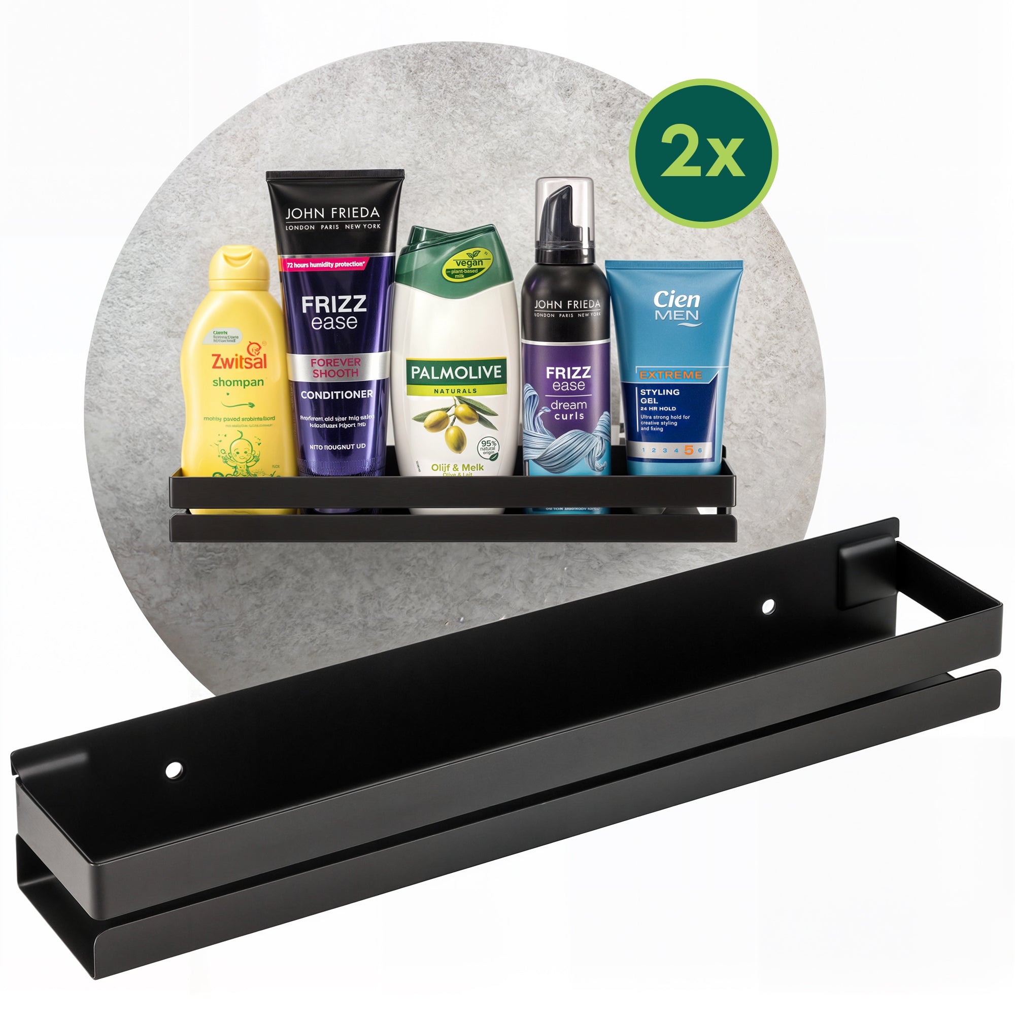 Heb je genoeg van rondslingerende shampooflessen? Met het stijlvolle dubbele doucherek in matzwart heb je voortaan al je douchespullen netjes op één plek!